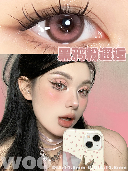 Woolilens 黑鸦粉邂逅 半年抛 2片 14.5mm 参考着色13.8mm 基弧8.6 含水38% 新锐国货