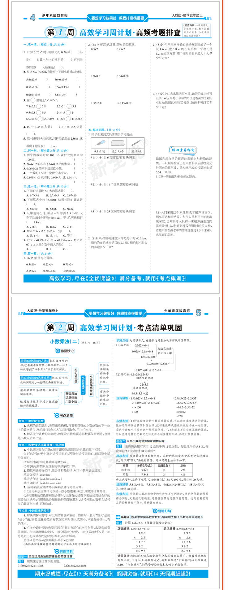 2025秋 上册 人教版 六年级 数学 《15天满分备考》