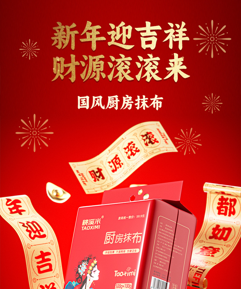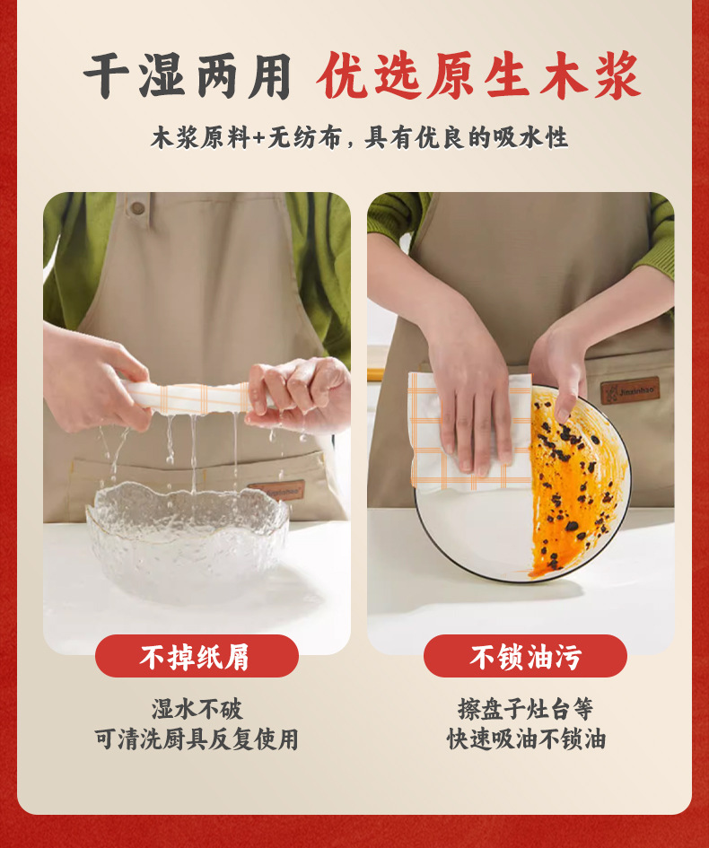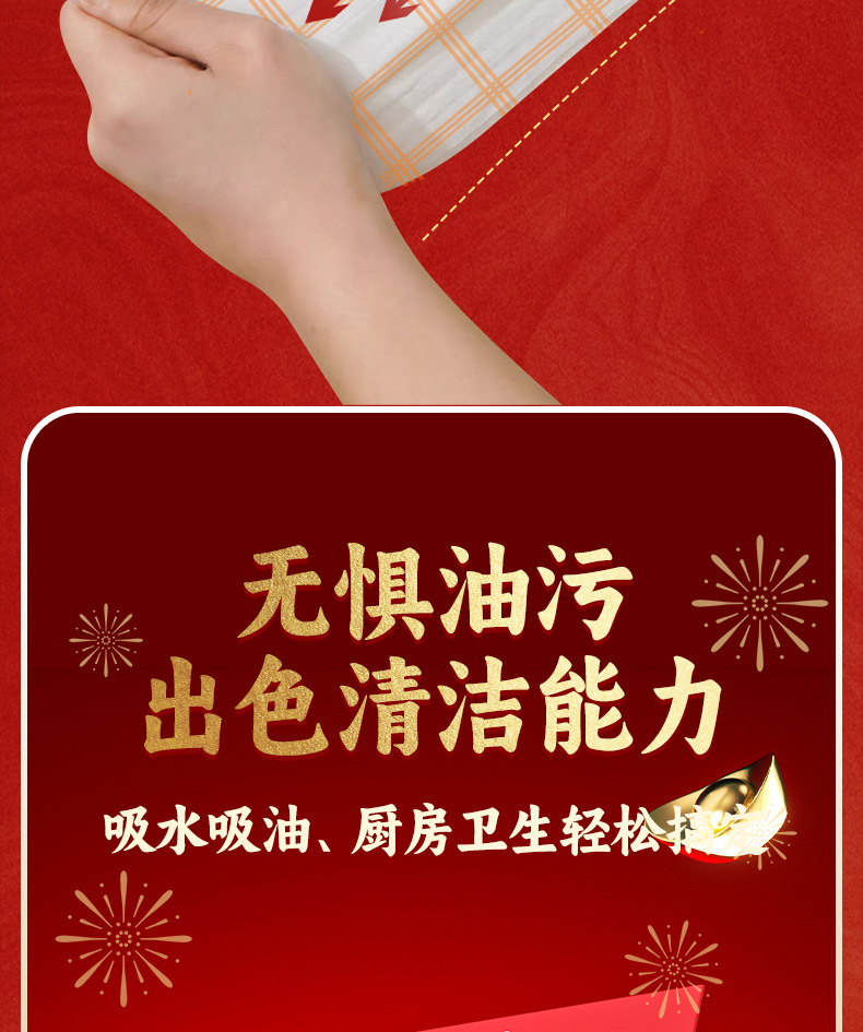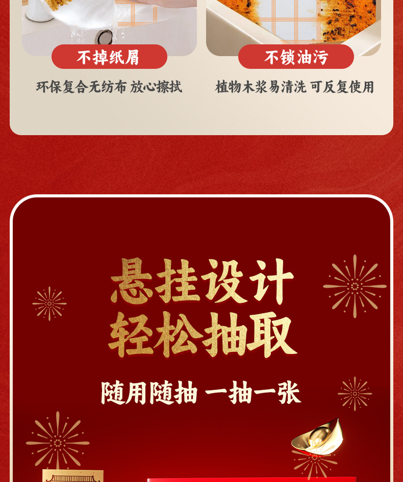 【新包装吸油吸水厨房用纸】新年迎吉祥国潮 清洁底部抽取式一次性懒人抹布