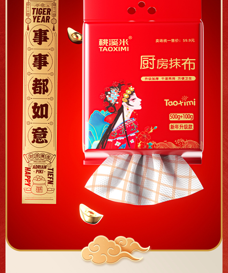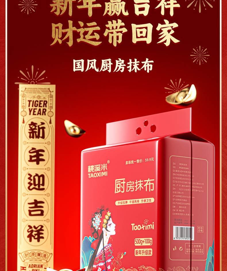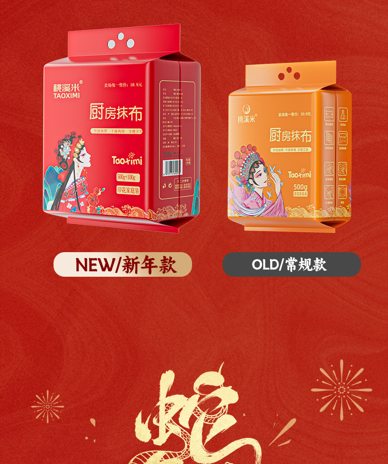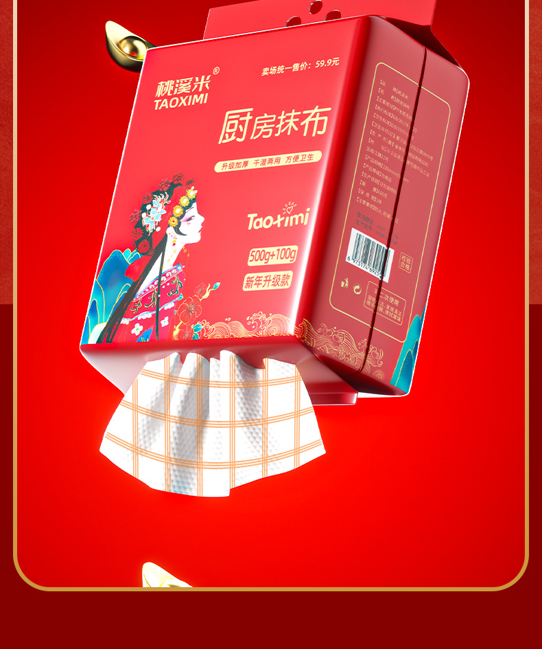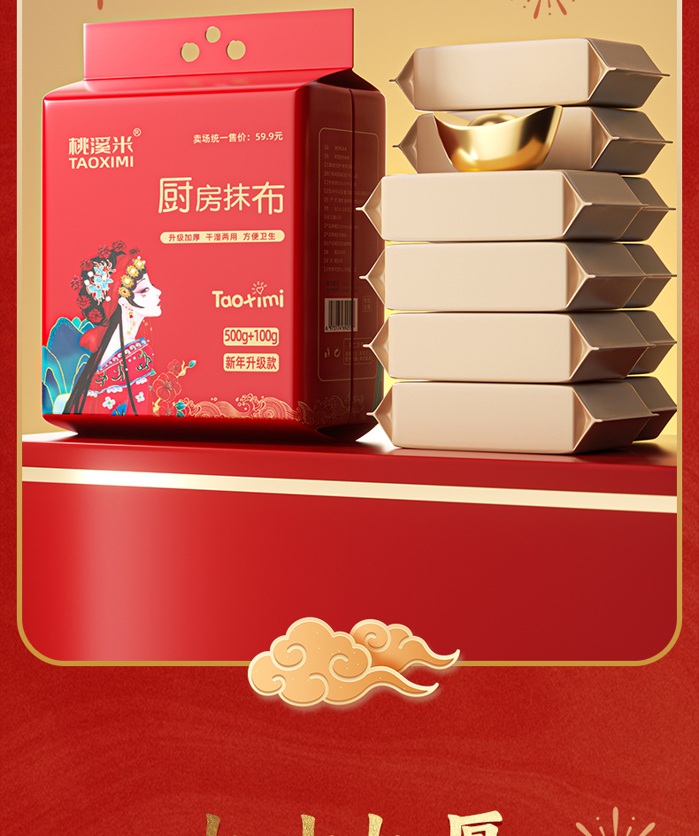 【新包装吸油吸水厨房用纸】新年迎吉祥国潮 清洁底部抽取式一次性懒人抹布