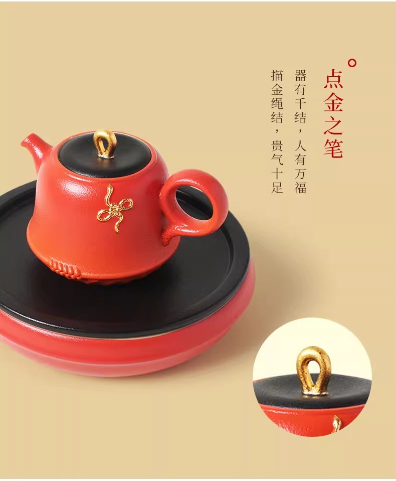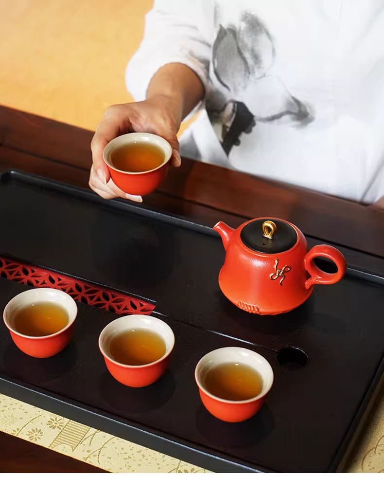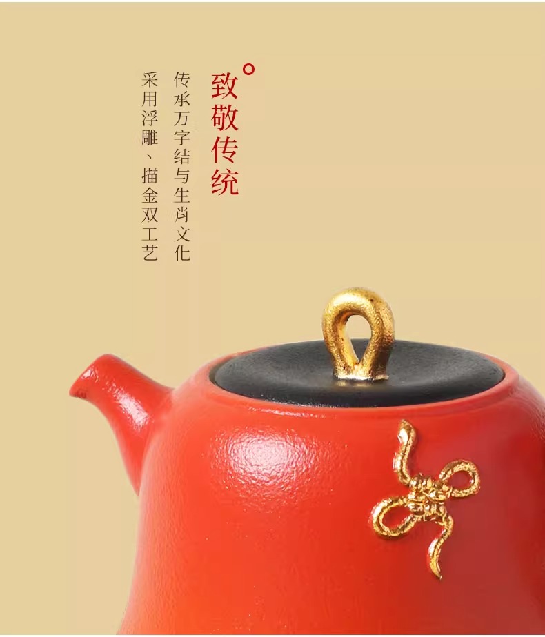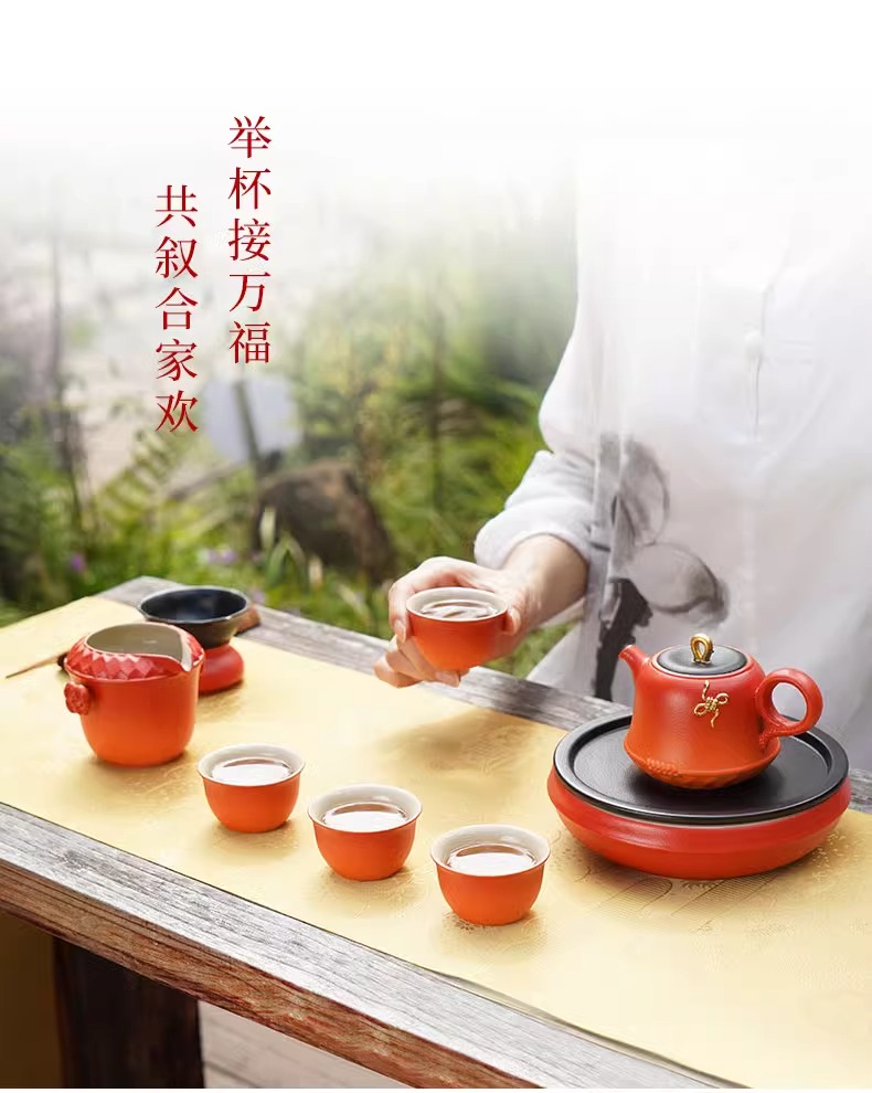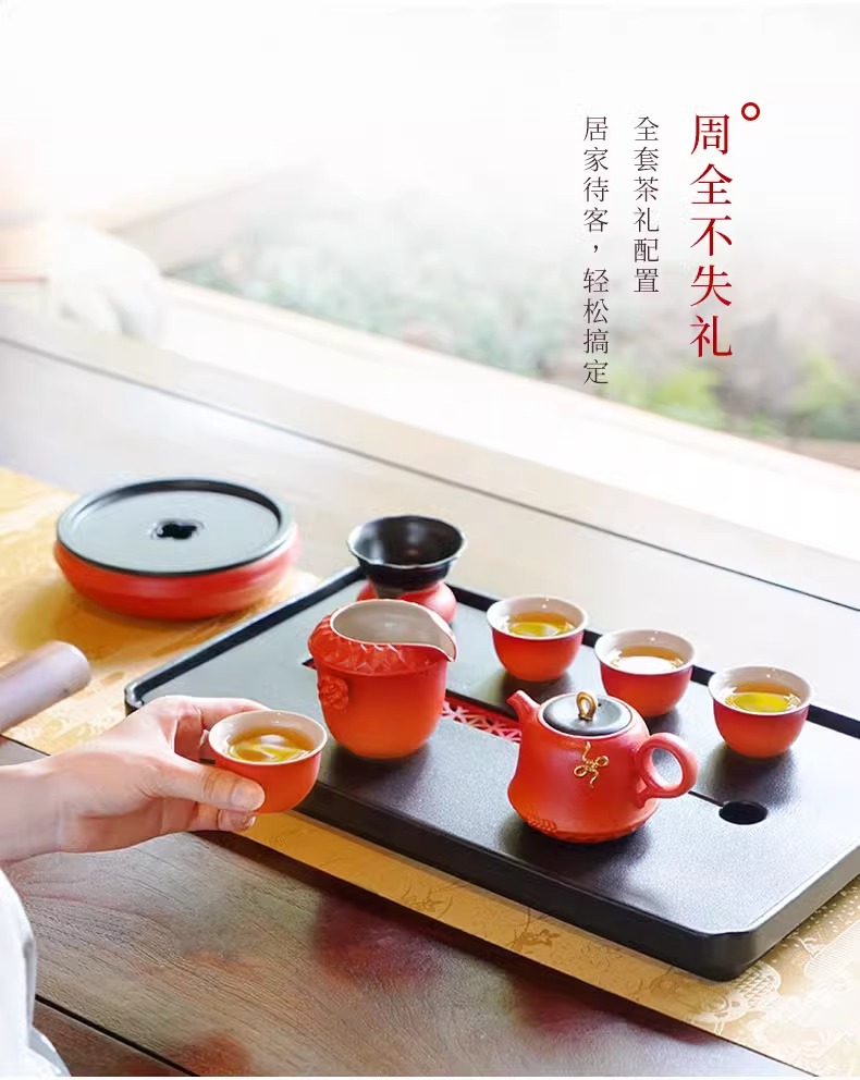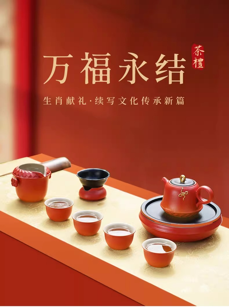 陆宝陶瓷功夫茶具套装2025新年送礼茶具礼盒装万福永结茶礼曙光红