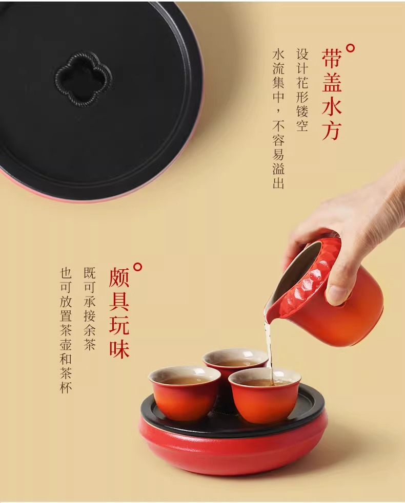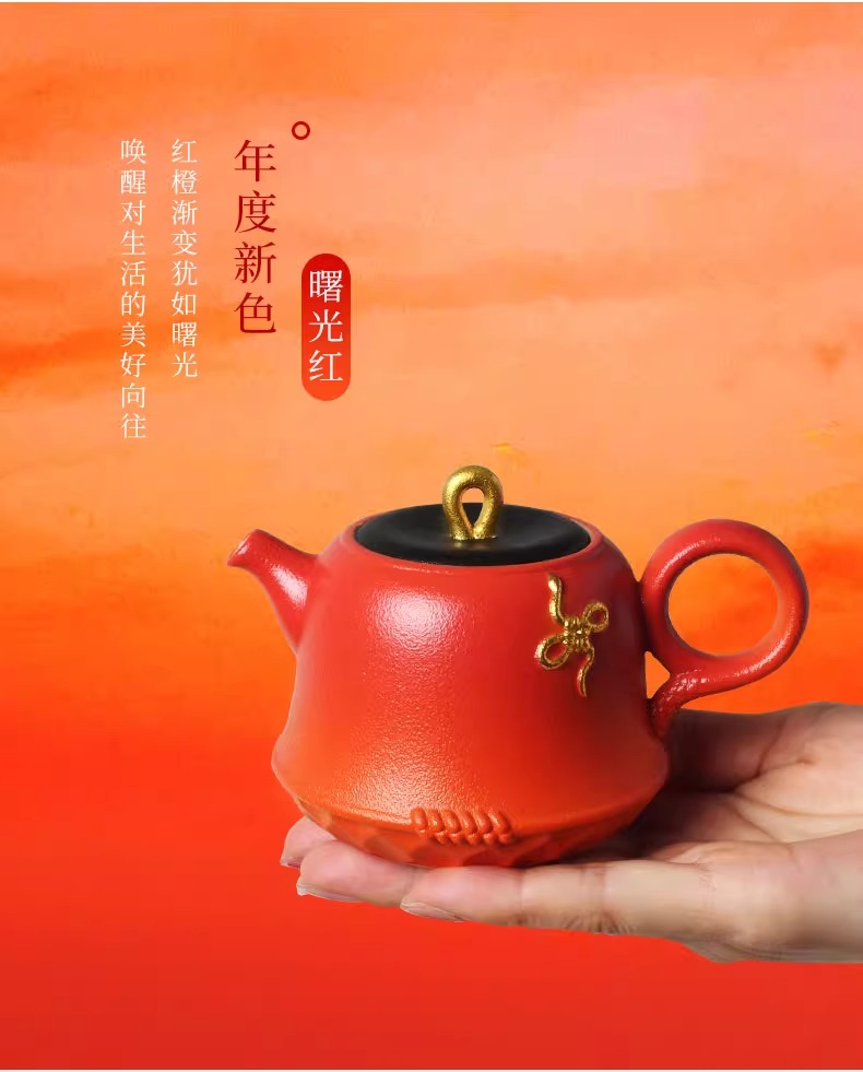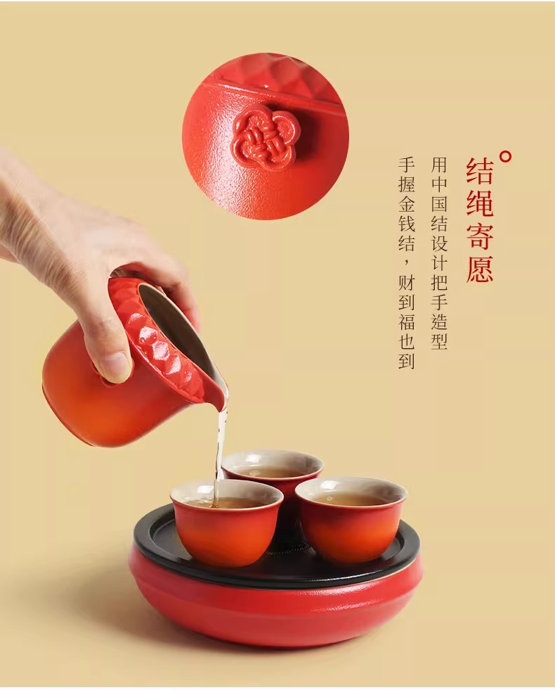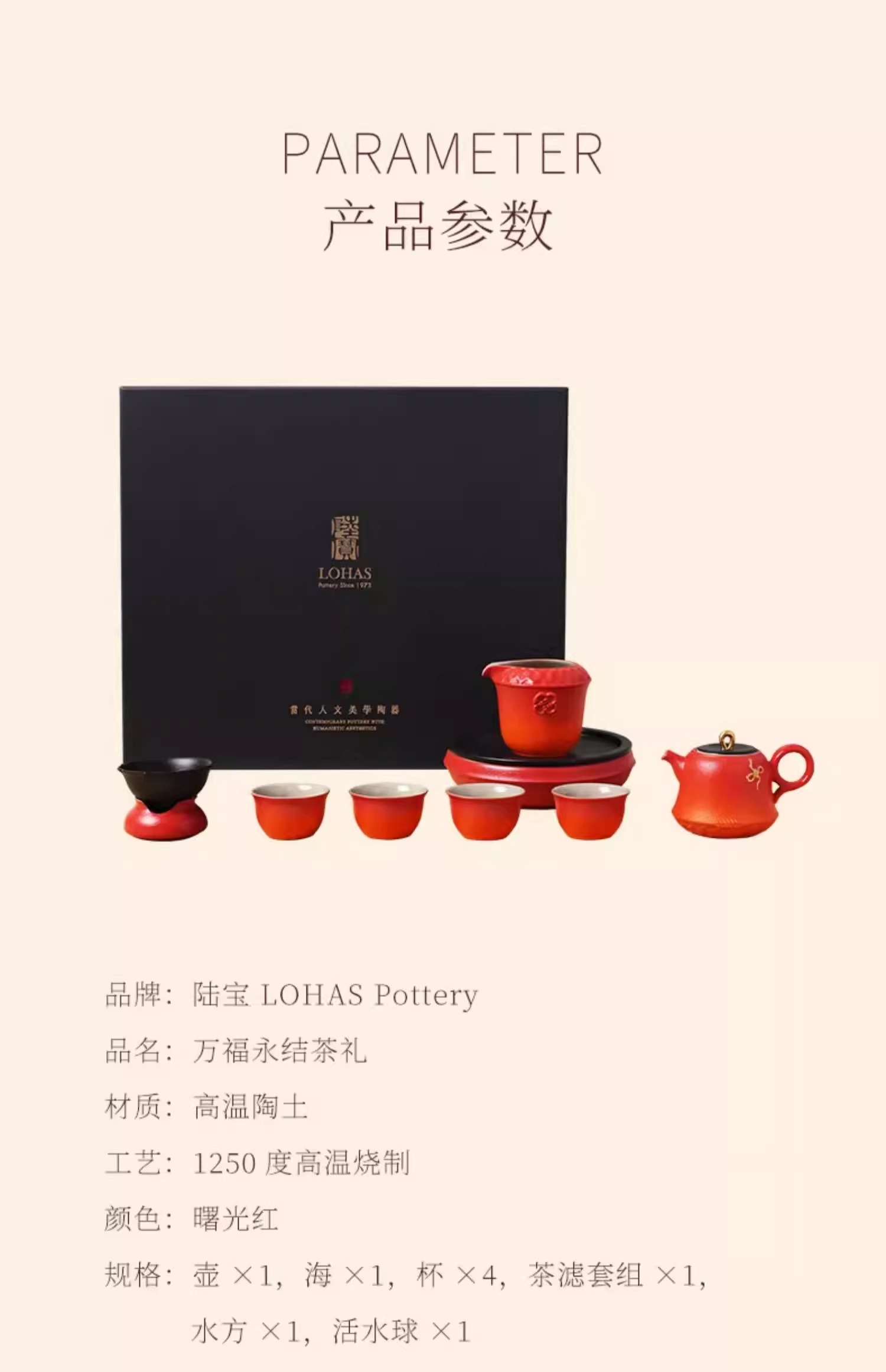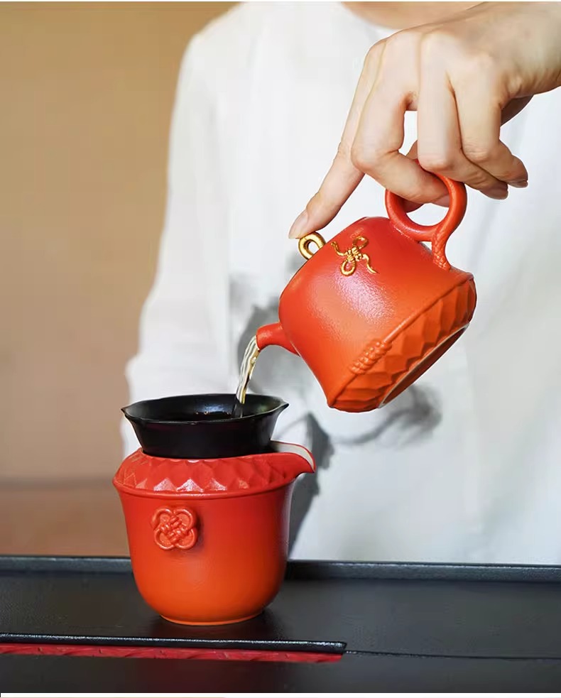 陆宝陶瓷功夫茶具套装2025新年送礼茶具礼盒装万福永结茶礼曙光红