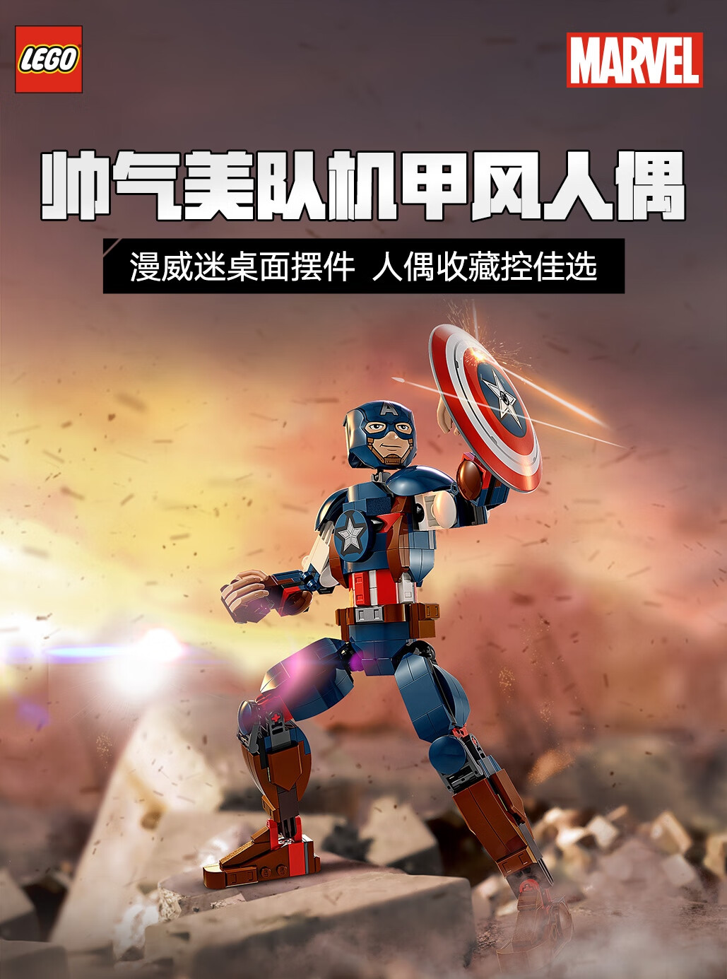乐高积木L76258乐高超级英雄系列美国队长拼搭人偶