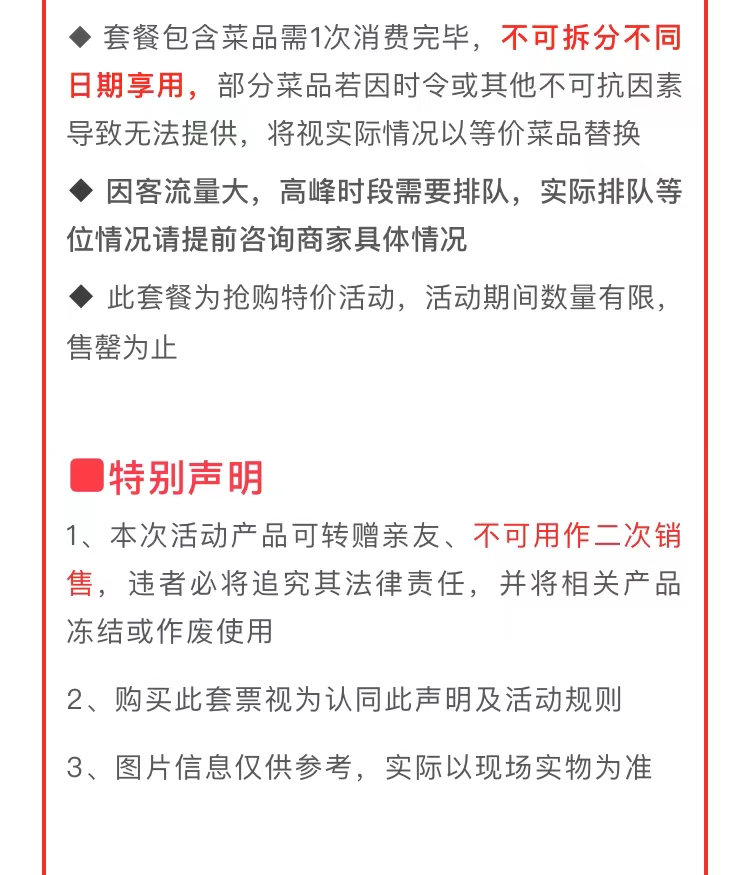 ◆ 售后规则:本产品为限时限量特惠产品,请在有效期内使用,逾期未使用申请退款需支付30%手续费,有效期内未预约未使用申请退款需支付30%手续费,敬请谅解!