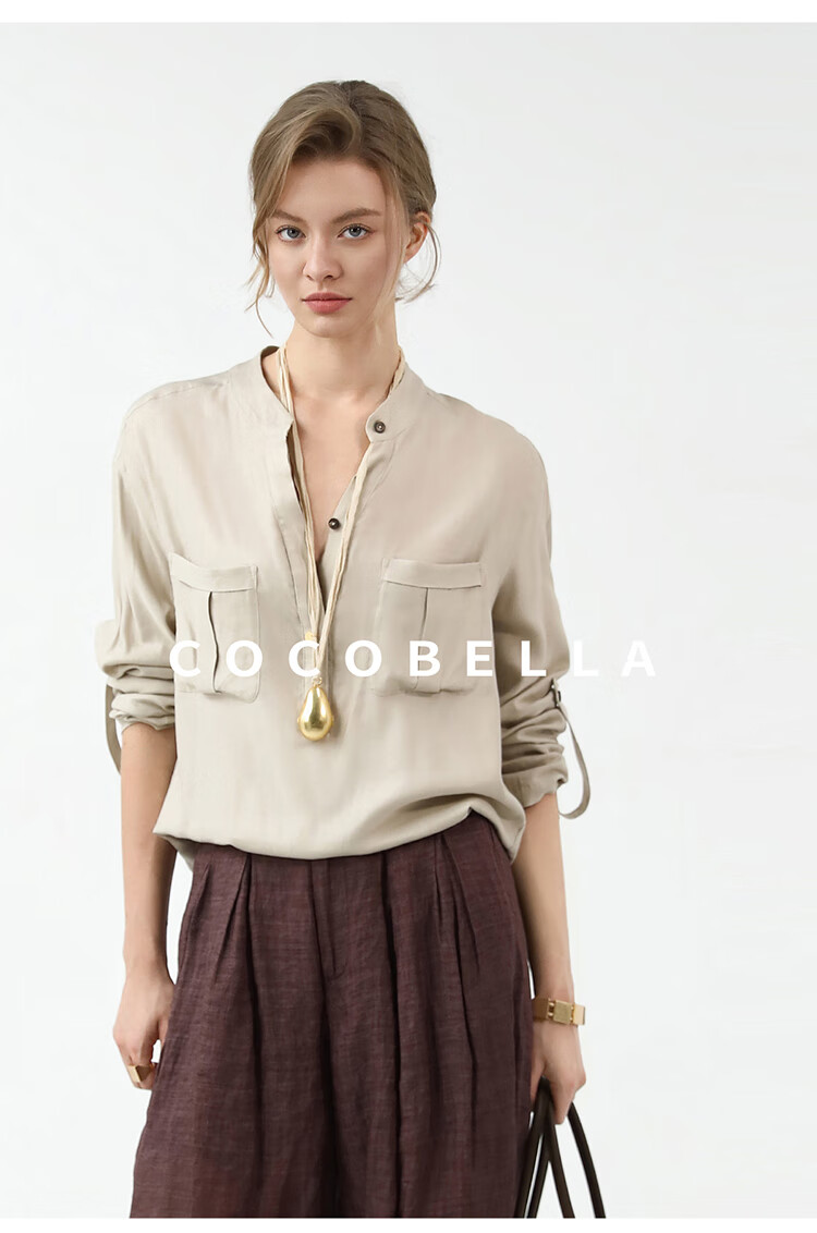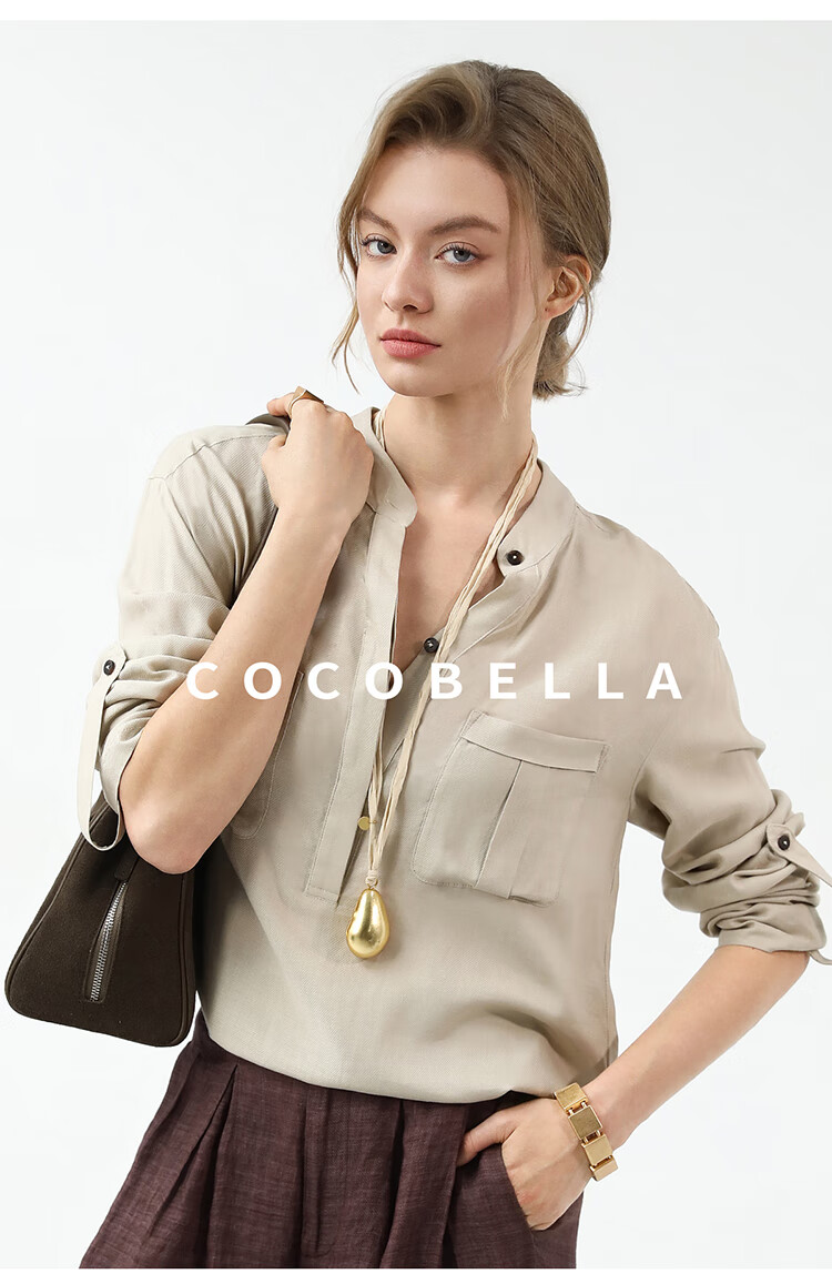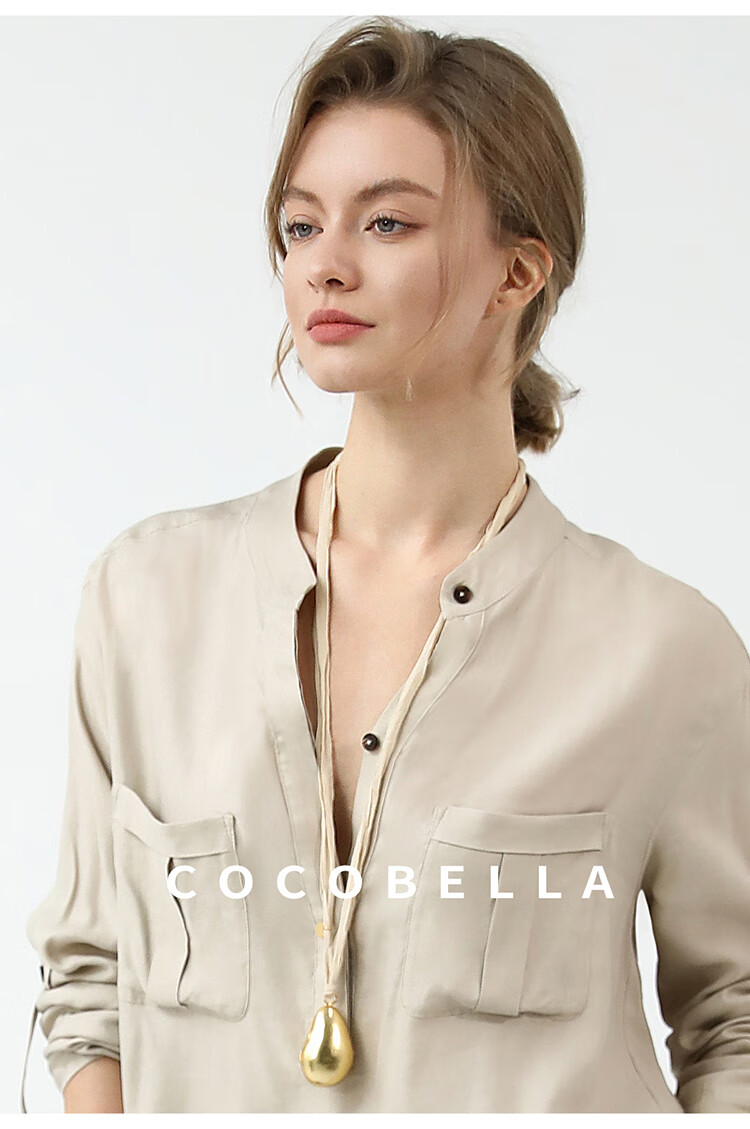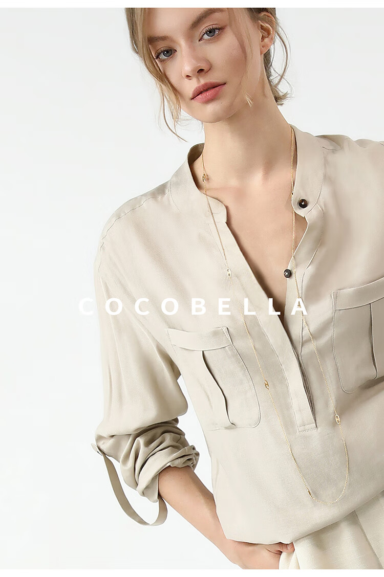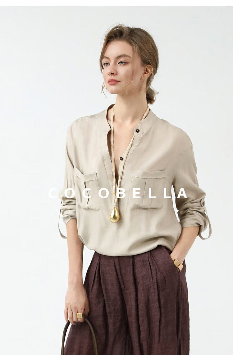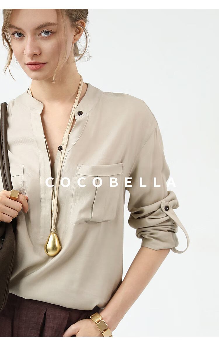 COCOBELLA雅痞风亨利领人丝衬衫女秋气质休闲通勤长袖衬衣SR7076