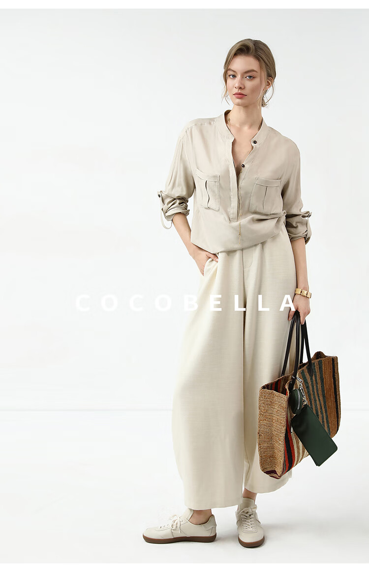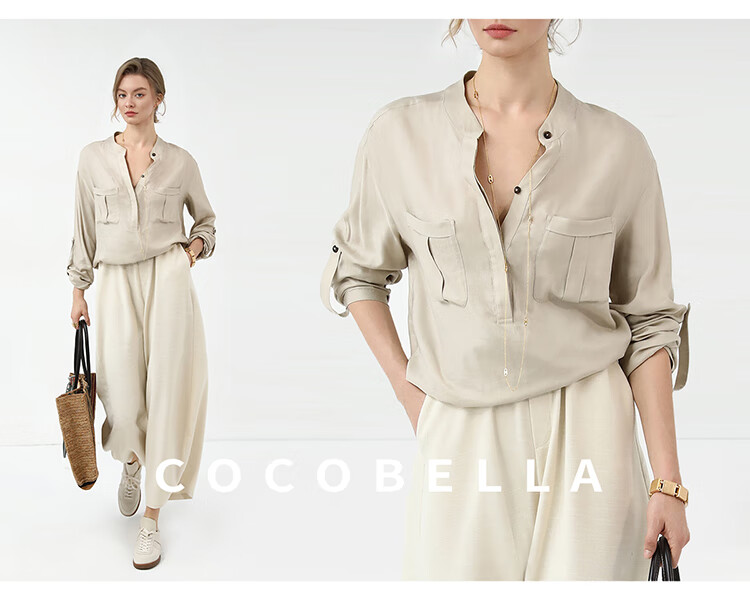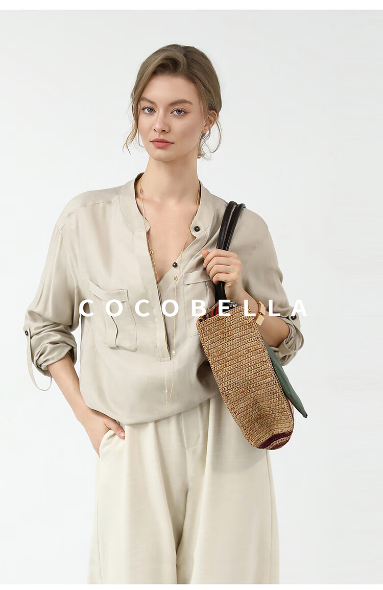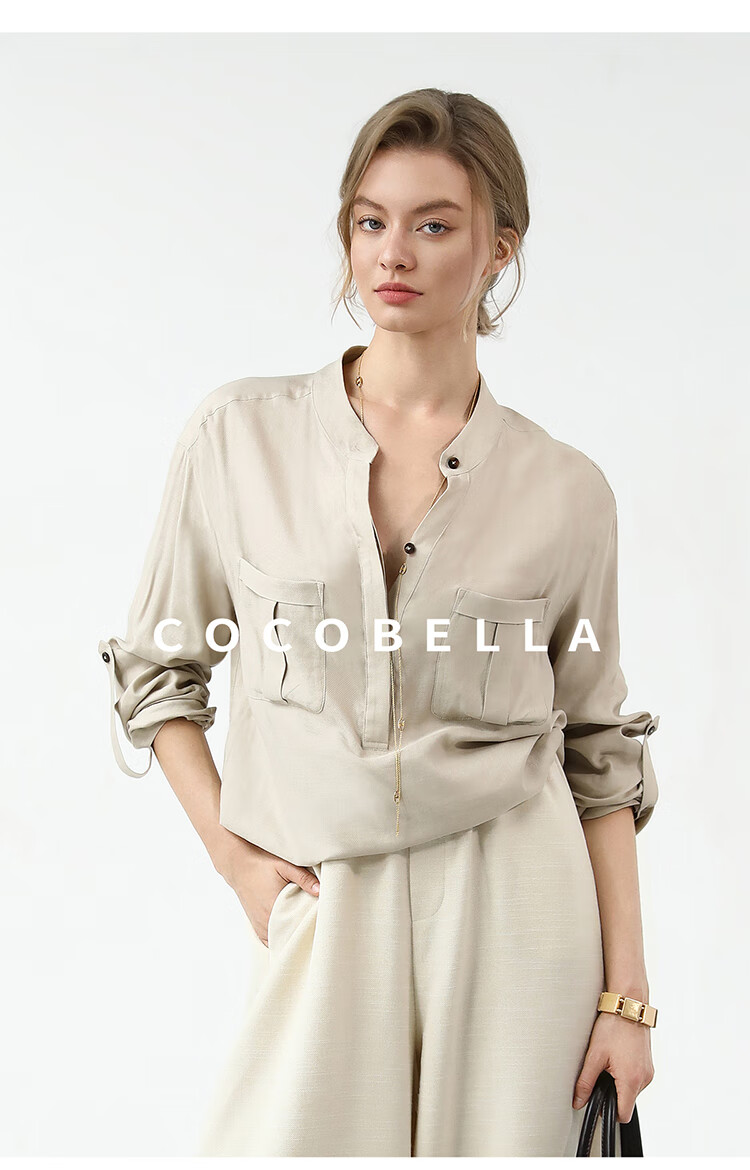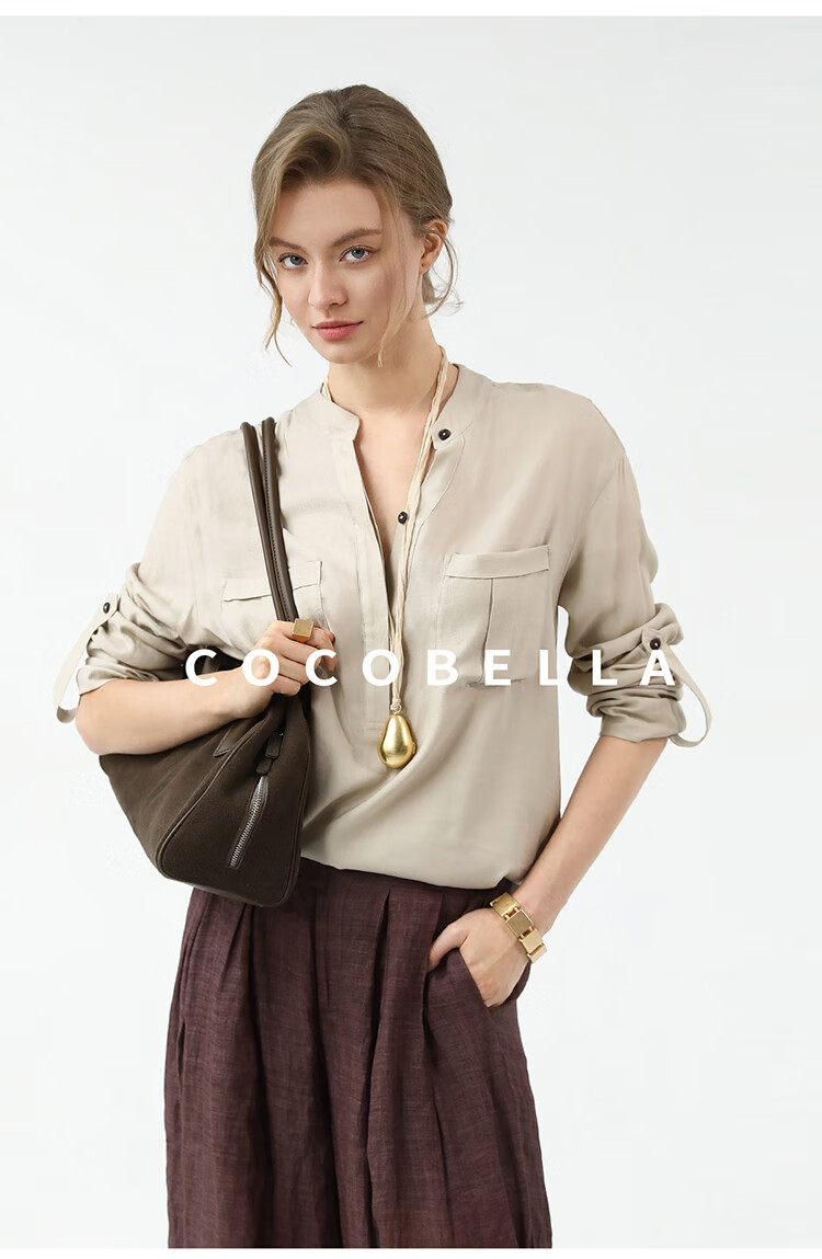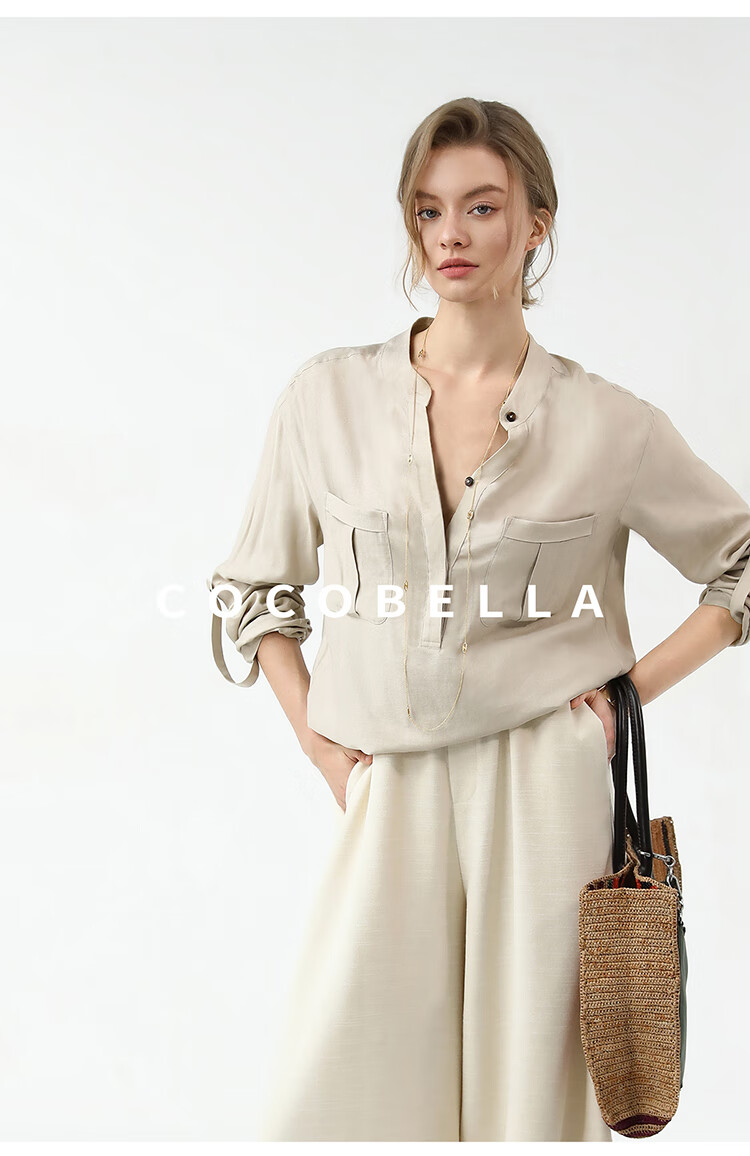 COCOBELLA雅痞风亨利领人丝衬衫女秋气质休闲通勤长袖衬衣SR7076