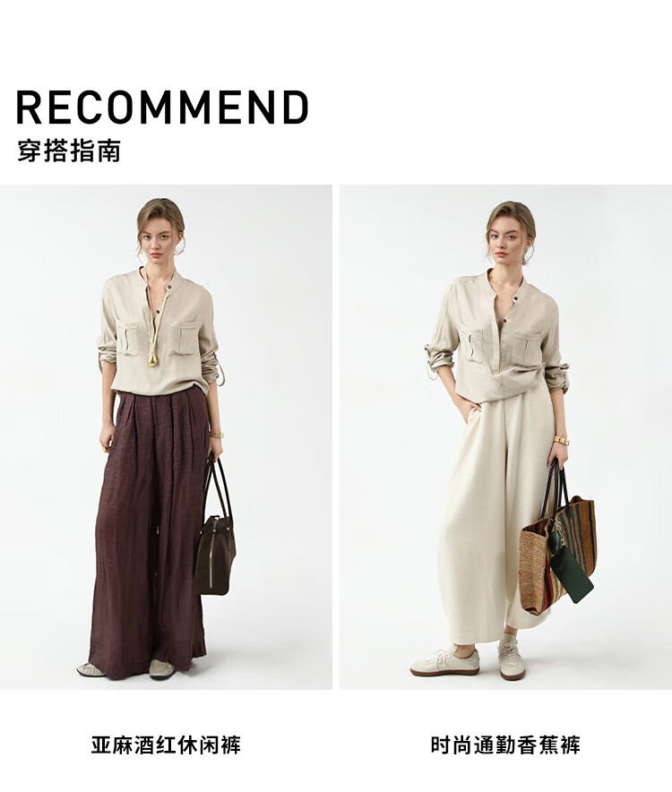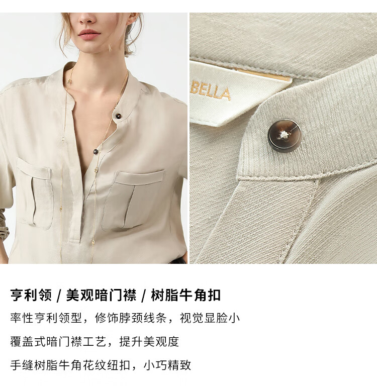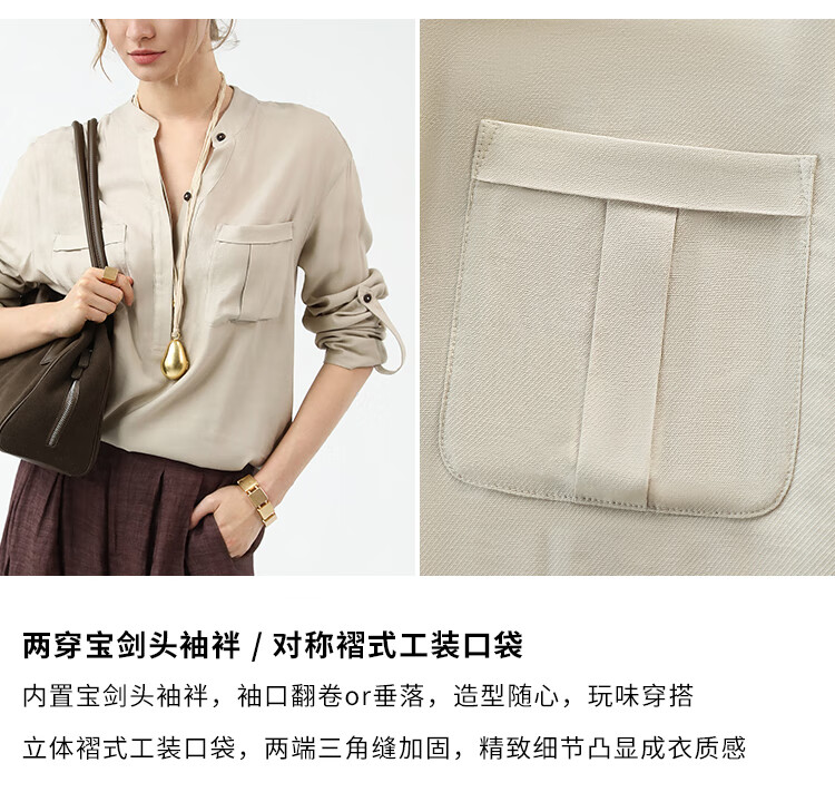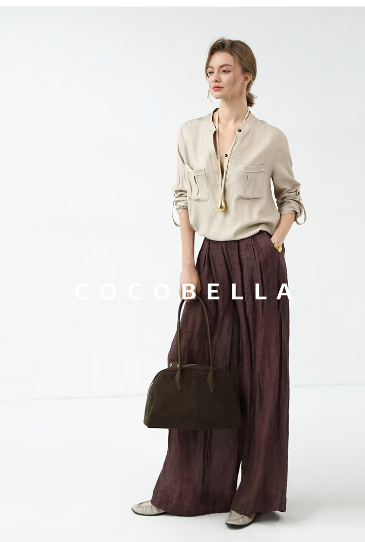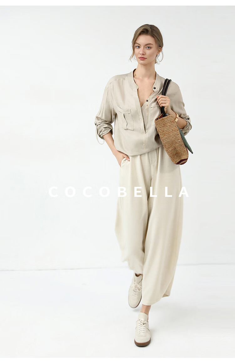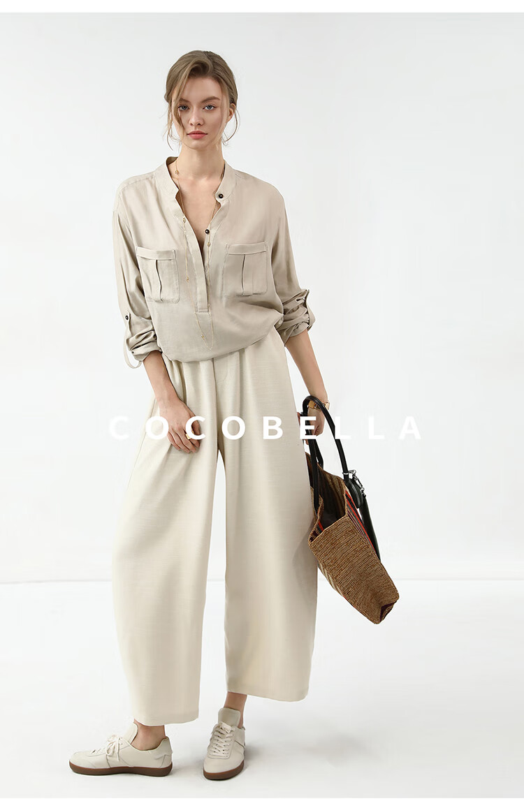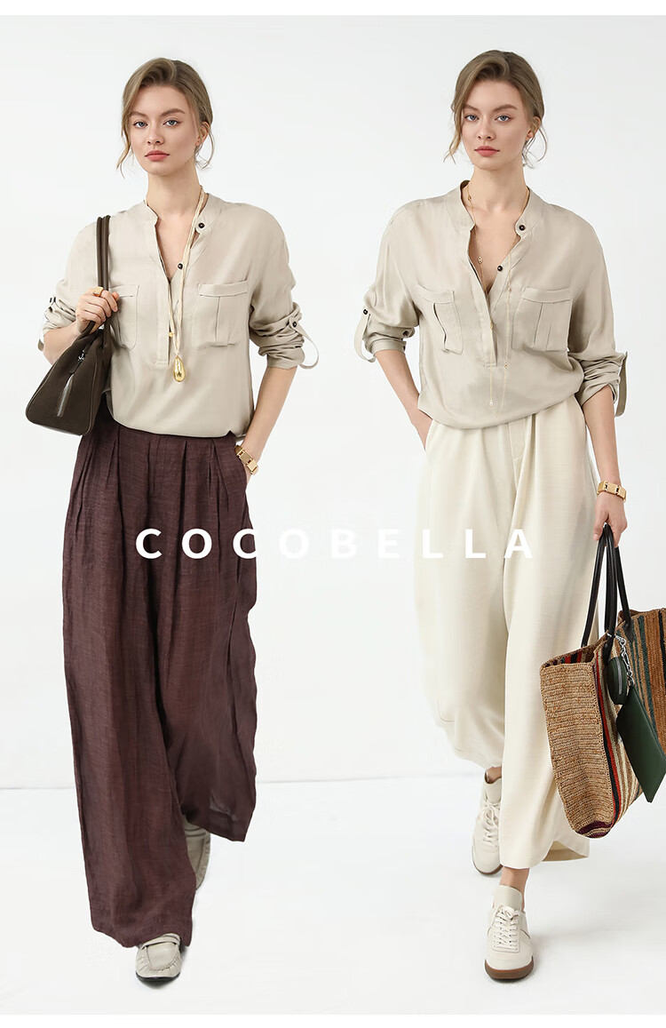 COCOBELLA雅痞风亨利领人丝衬衫女秋气质休闲通勤长袖衬衣SR7076