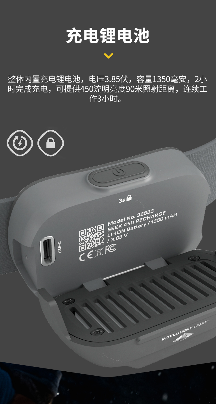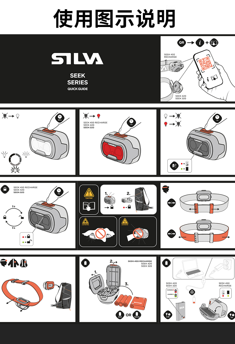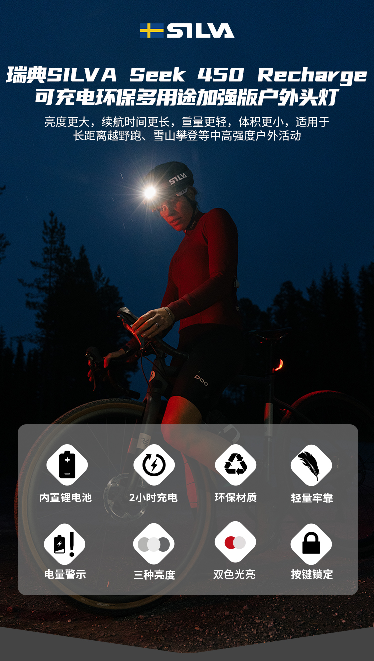 瑞典SILVA Seek 450 Recharge可充电环保多用途加强版户外头灯越野跑步运动登山防水头灯