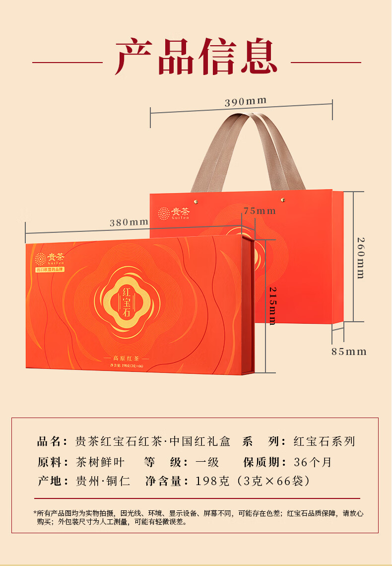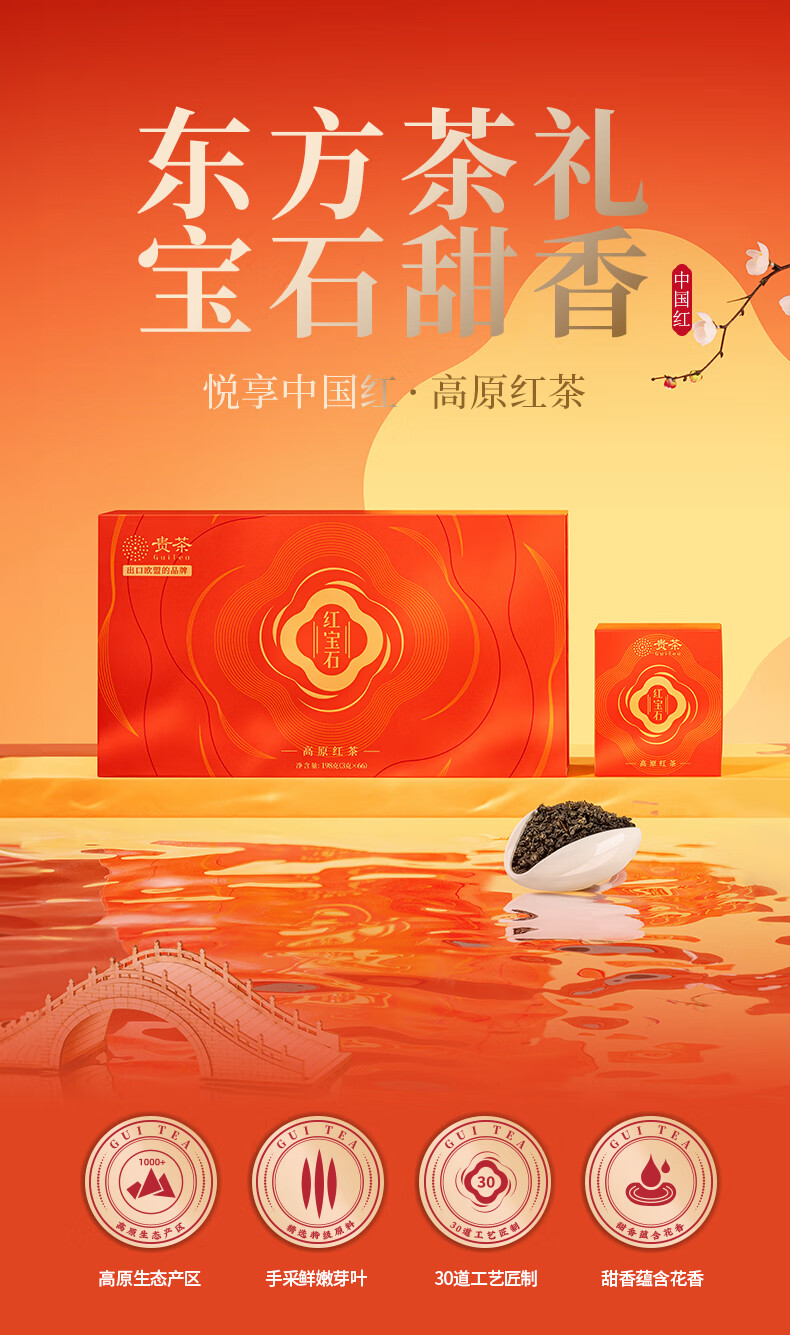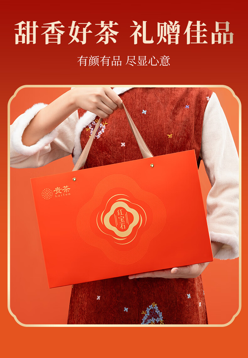 贵茶叶 红宝石红茶礼盒198g 贵州高原红茶送礼送长辈端午父亲节礼盒 礼盒装198g【中国红礼盒】