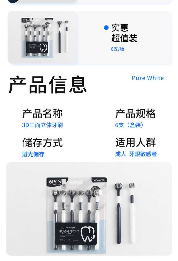 【品名】【超值12支】chocoikes 渍齿净护龈三面牙刷 多角度清洁 6支/盒