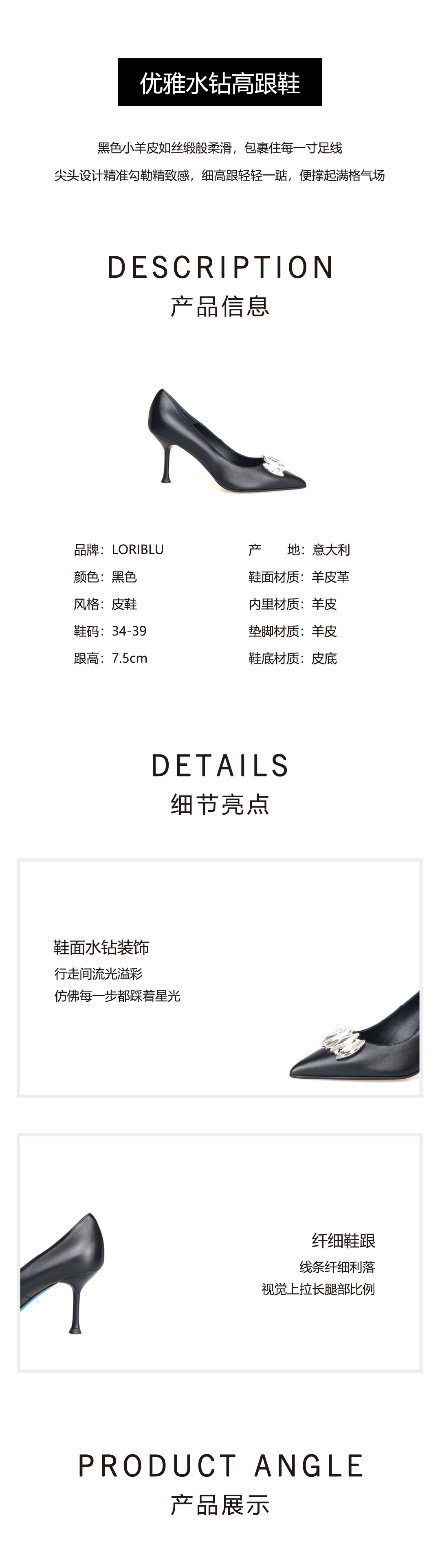豪麟名鞋LORIBLU女鞋皮鞋羊皮革6AXSS396黑色