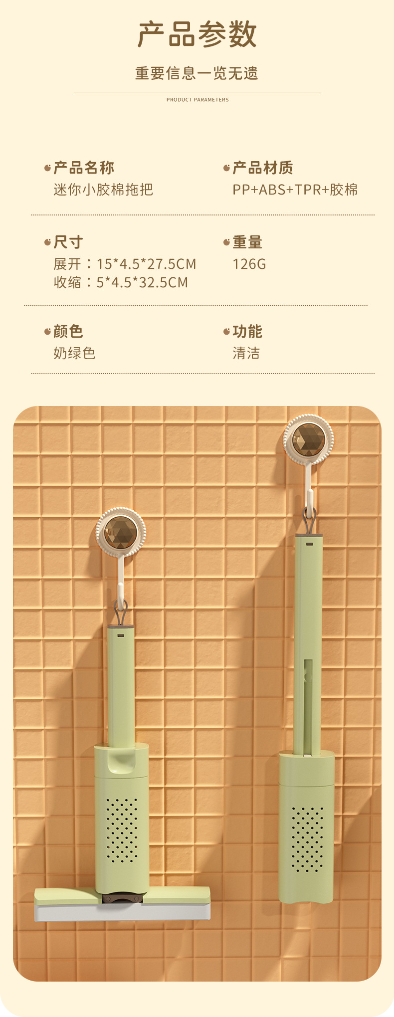 「颜值奶绿色!迷你便携」迷你小拖把家用手持免手洗海绵吸水厨房浴室卫生间洗手台桌面清洁工具
