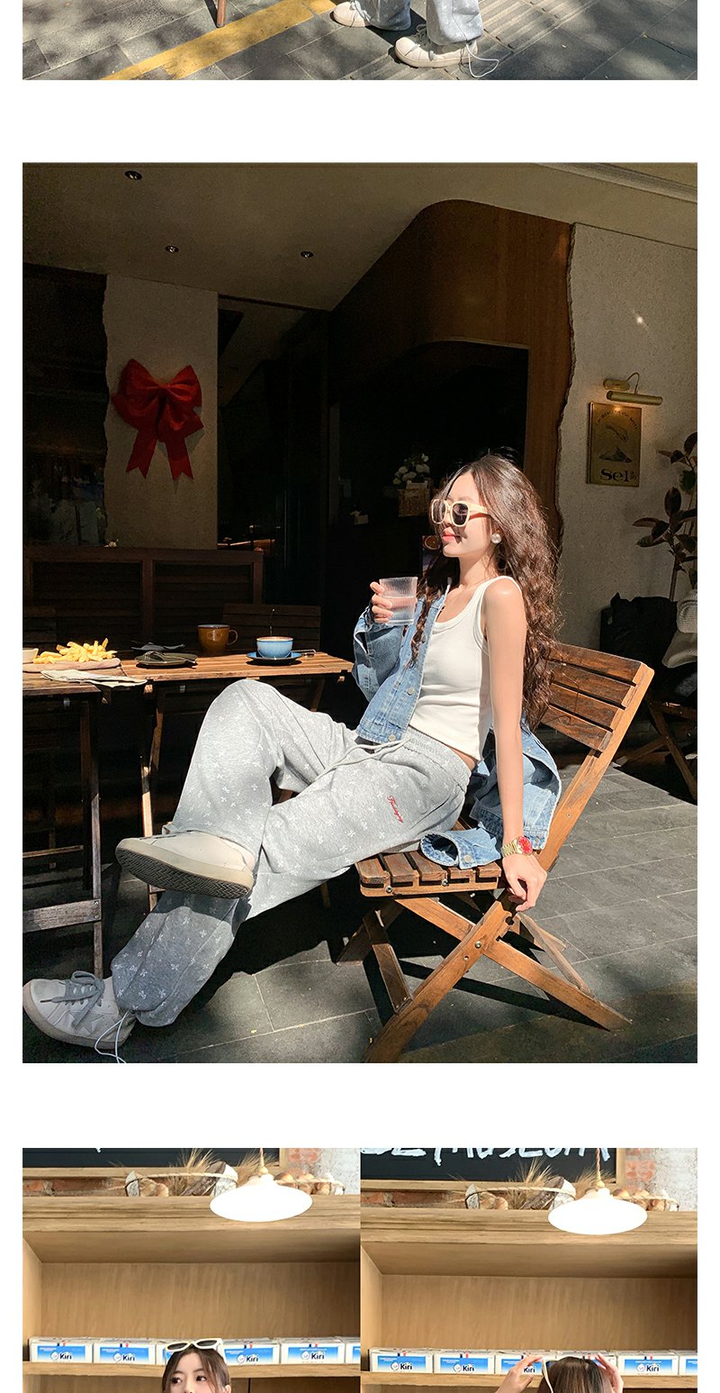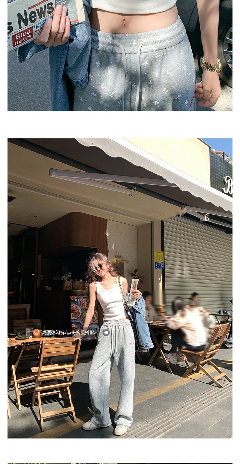 灰色蝴蝶结波点休闲裤: