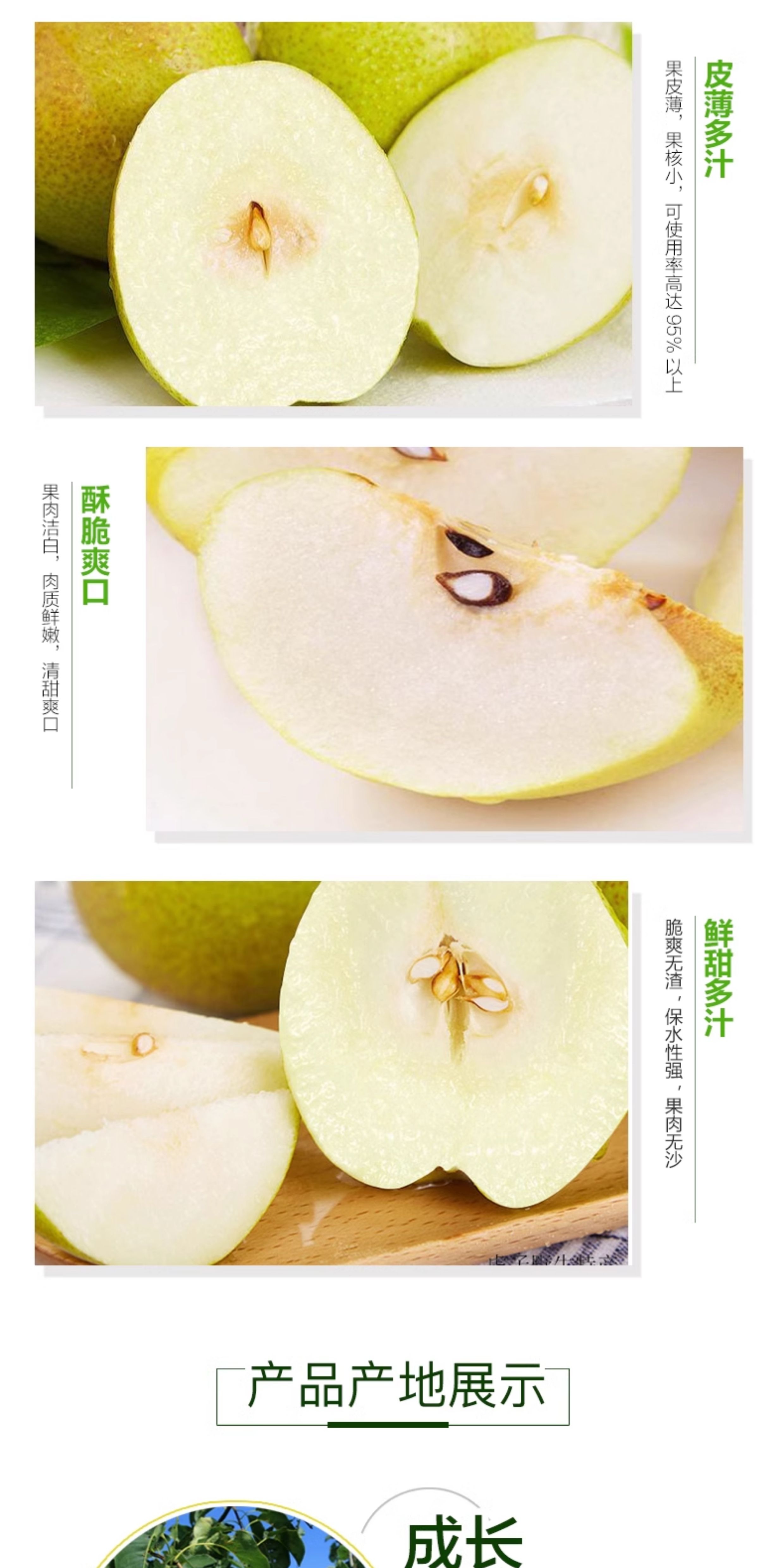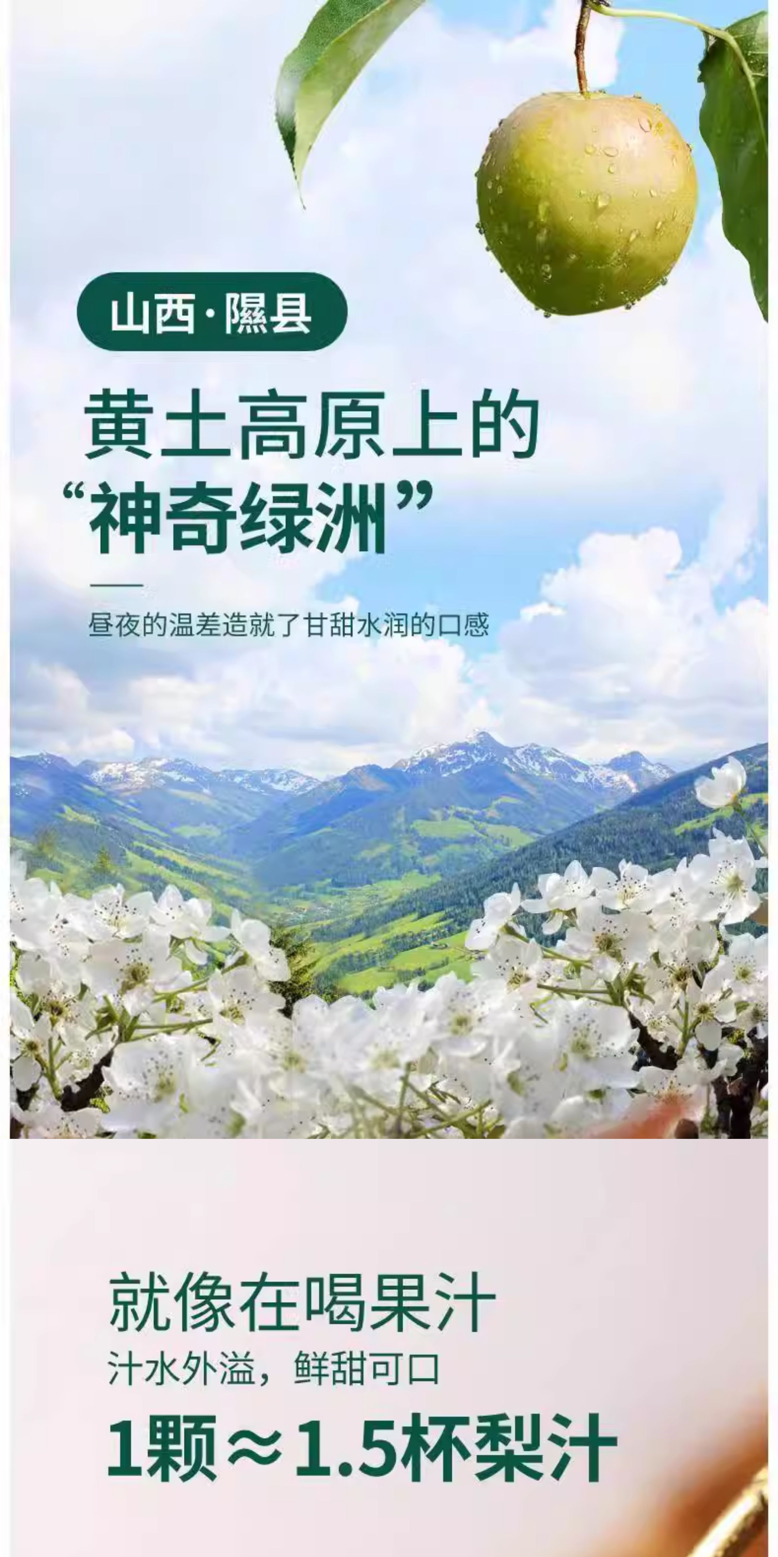 品名:隰县玉露香梨规格1:4.5斤中果彩箱 注:中果果径70-79mm,8-12枚 规格2:5斤特大果彩箱 注:特大果果径90-100mm,5-6枚 规格3:7斤大果彩箱 注:果径80-90mm,9-12枚 规格4:9枚精品大果礼盒 注:精品大果85-90mm,净重6斤 规格5:12枚精品大果礼盒 注:精品大果85-90mm,净重8.5斤 包装方式:网套+彩箱/礼盒 快递:顺丰 运费模板:新疆、西藏、海南、云南、青海,港澳台不发货,其他区域包邮 发货时效:48-72h 发货地/产地:山西运城/山西临汾隰县 保质期:收到去除包装冷藏保存5-7天,收到后尽量 保持低温或冷藏哦 生产日期:现摘现发 销售售卖期:9月-来年3月 周六周天、节假日除外,早上十点之前的订单是48小时发货 ,到货时间约为2-5天,请您耐心等待 |