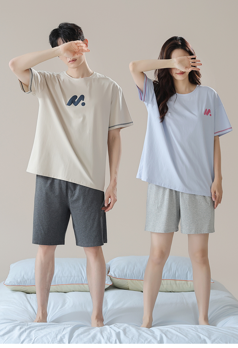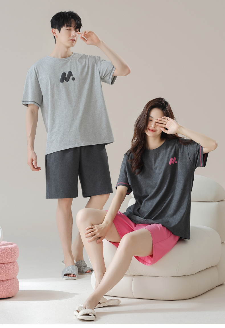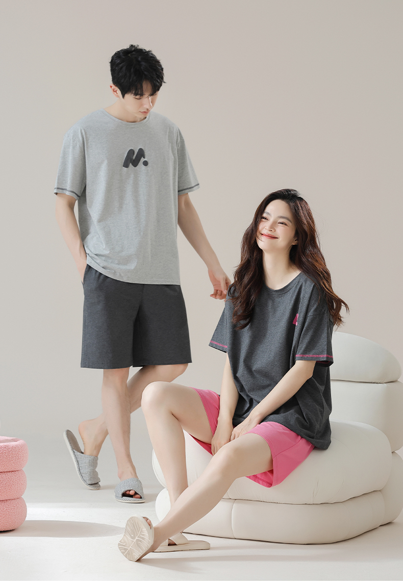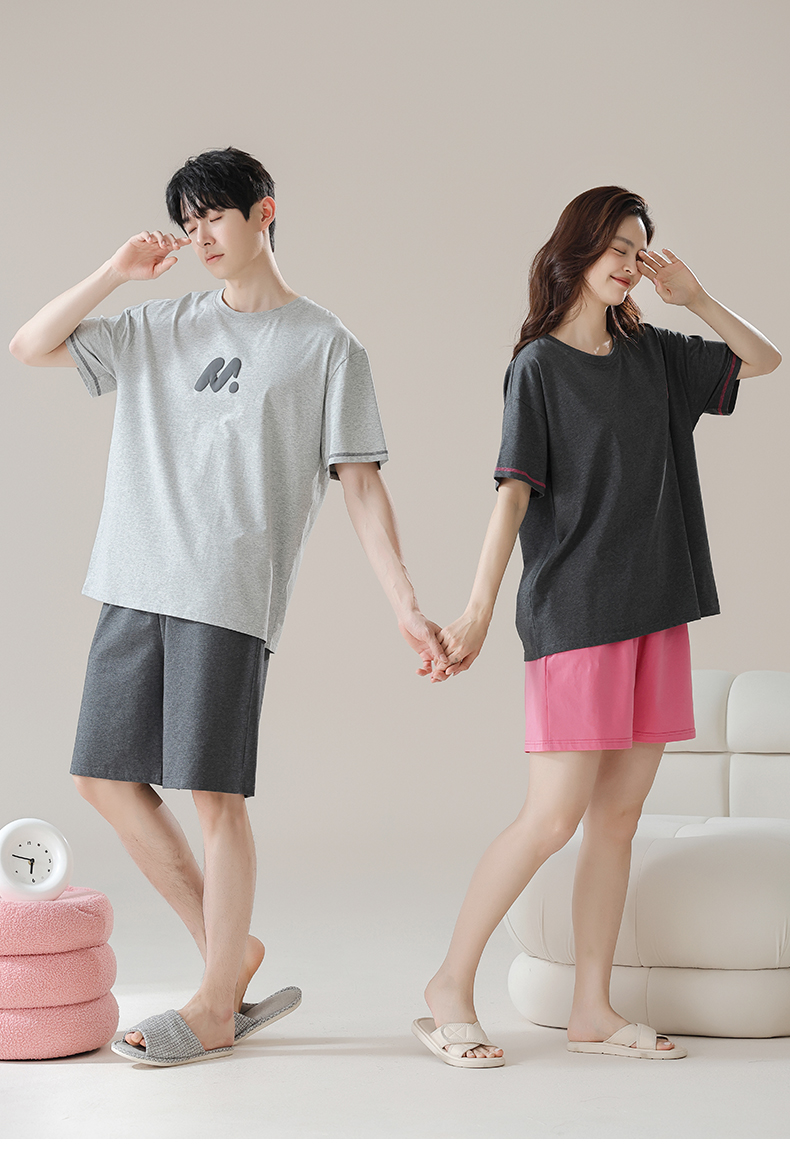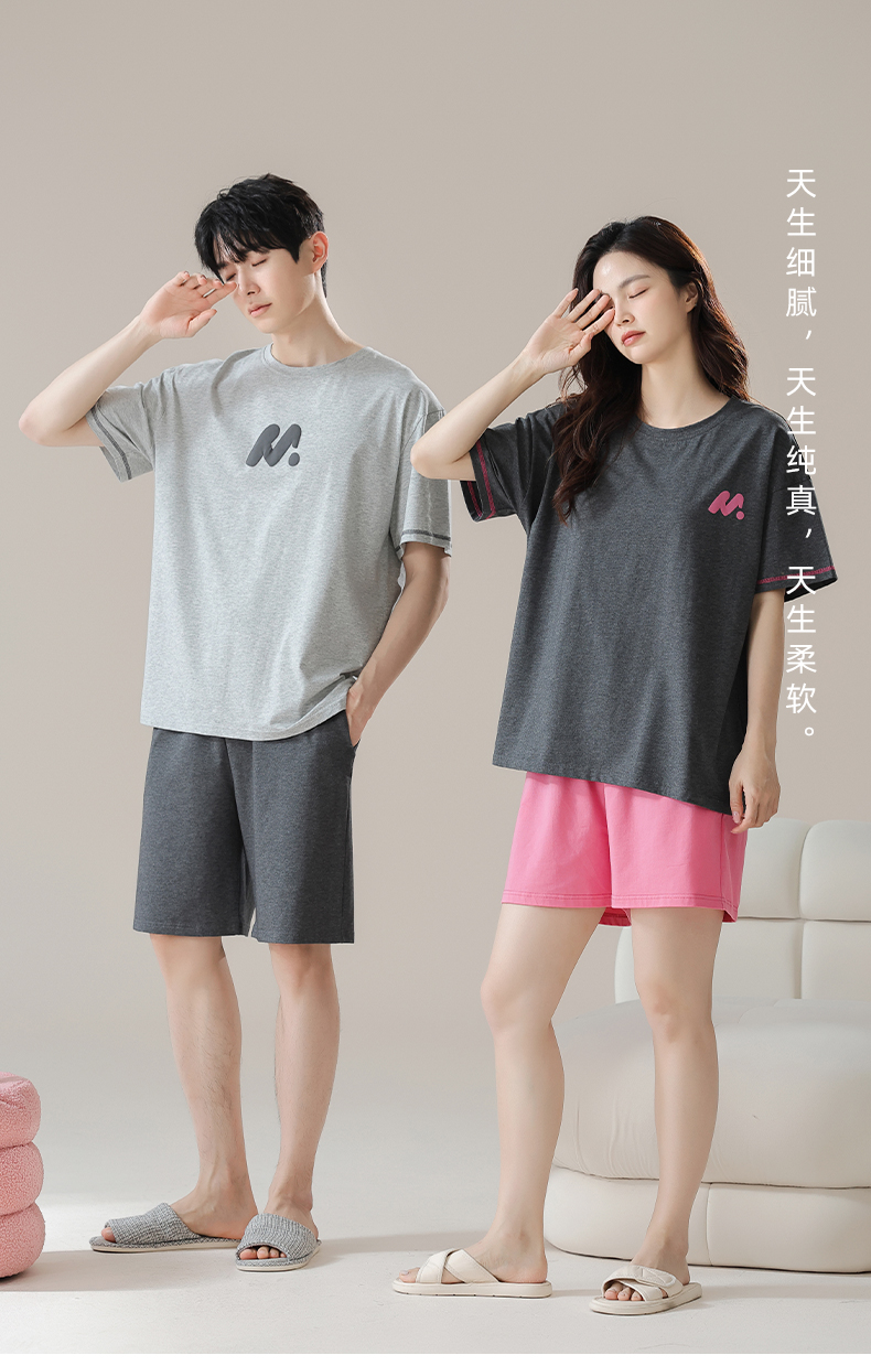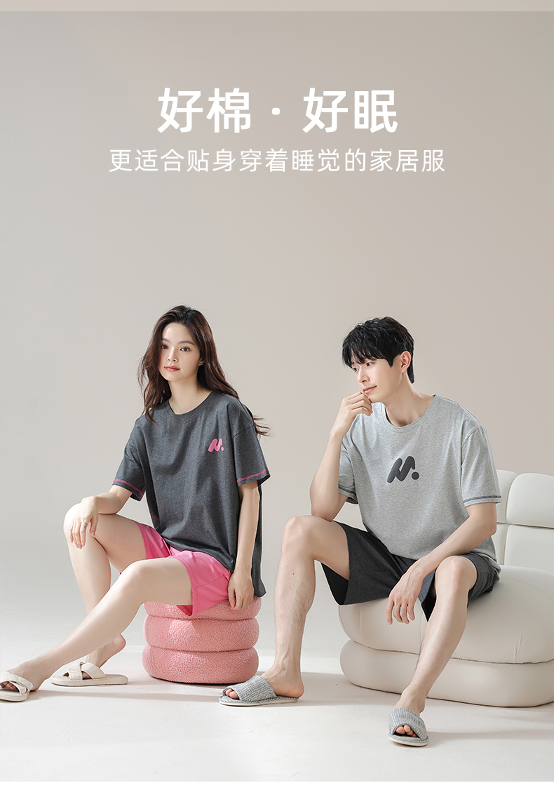 【抗菌新疆棉】自然醒灰色空间夏季纯棉短袖情侣睡衣纯色短裤大码家居服男凉爽7A抗菌新疆棉套装JLM