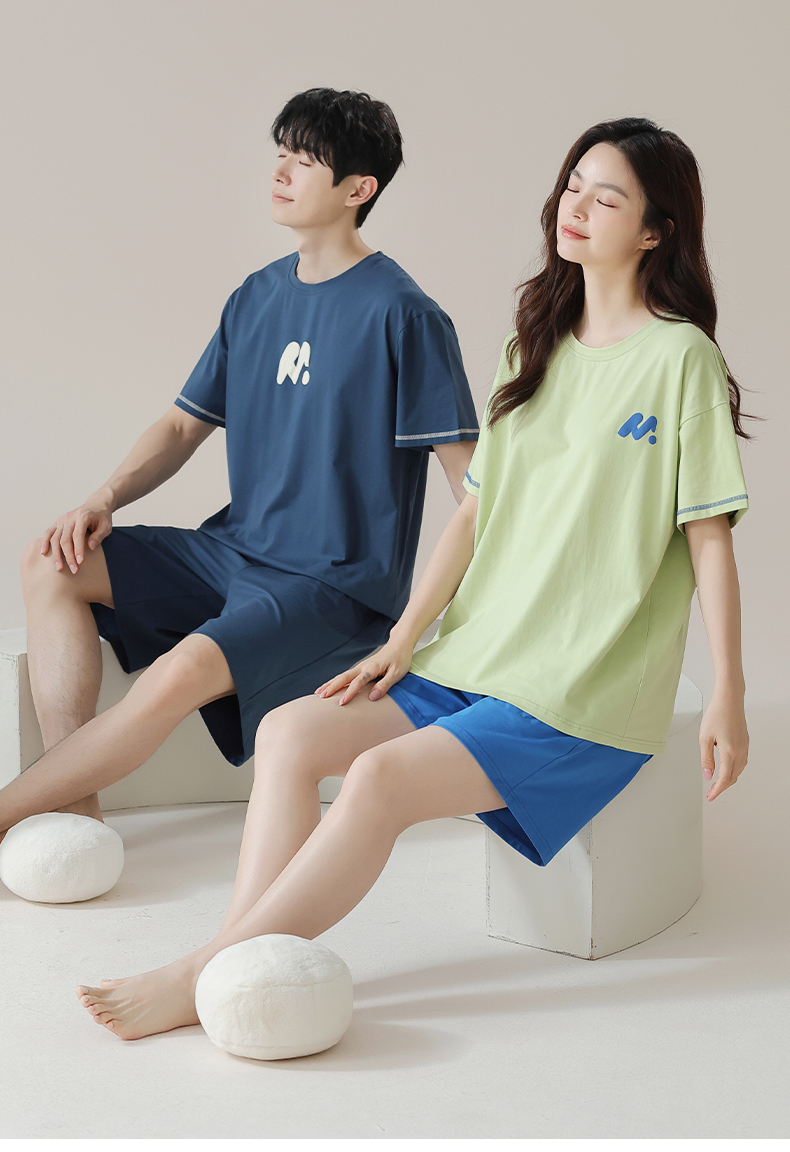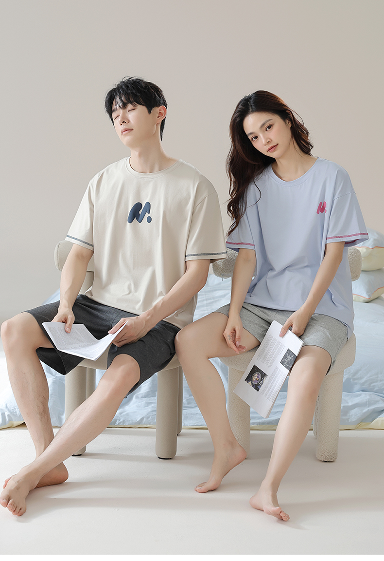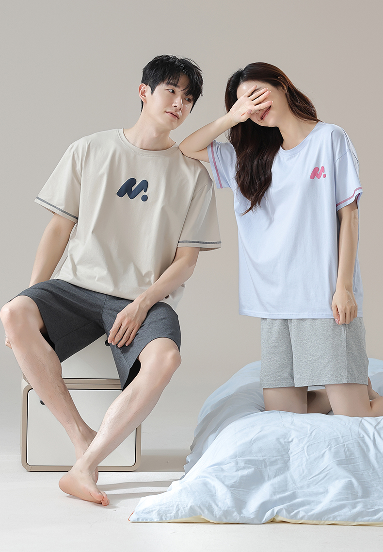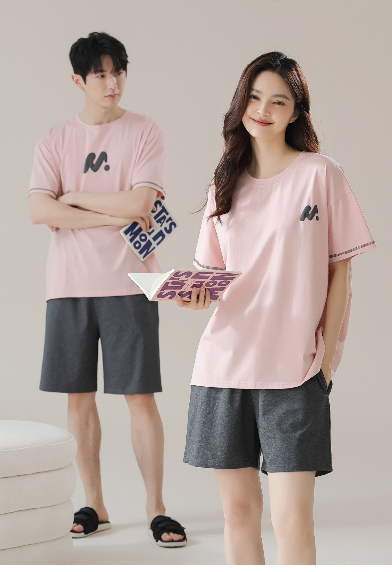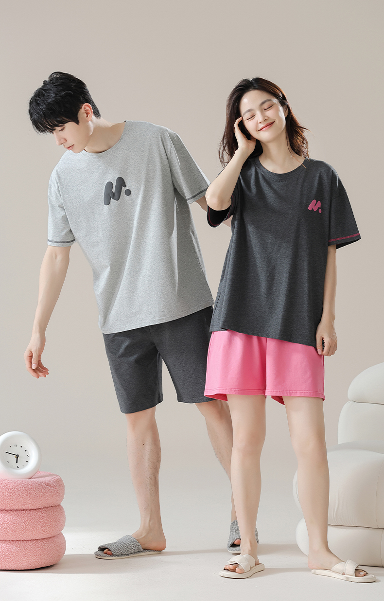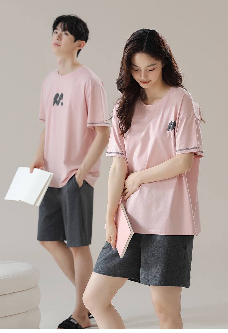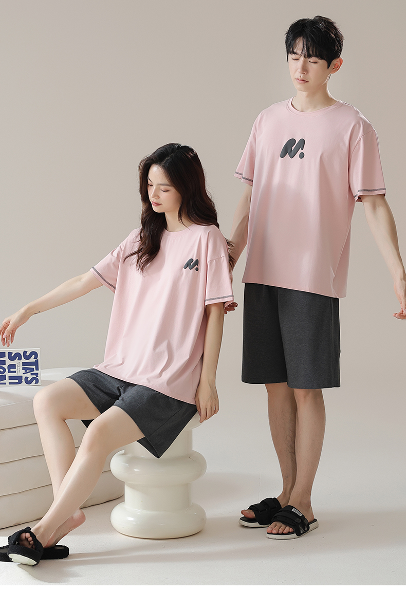 【抗菌新疆棉】自然醒灰色空间夏季纯棉短袖情侣睡衣纯色短裤大码家居服男凉爽7A抗菌新疆棉套装JLM