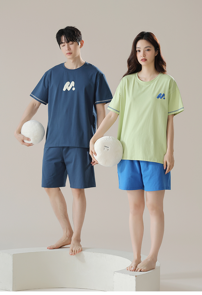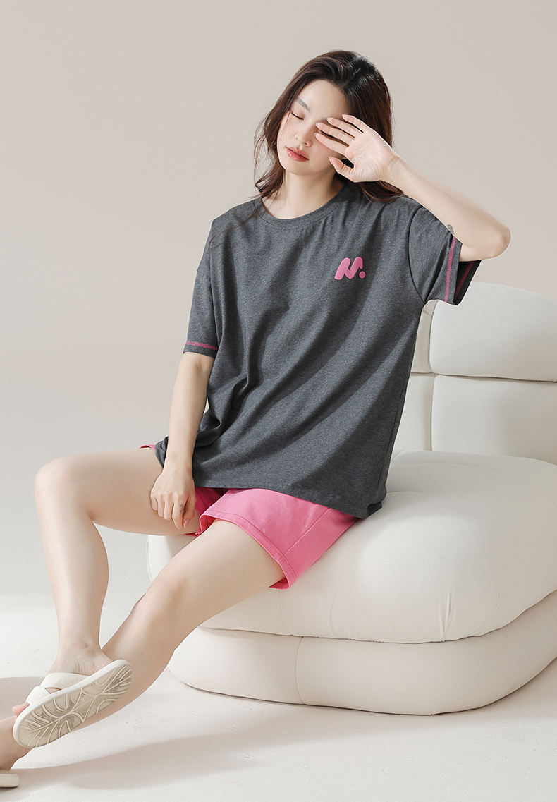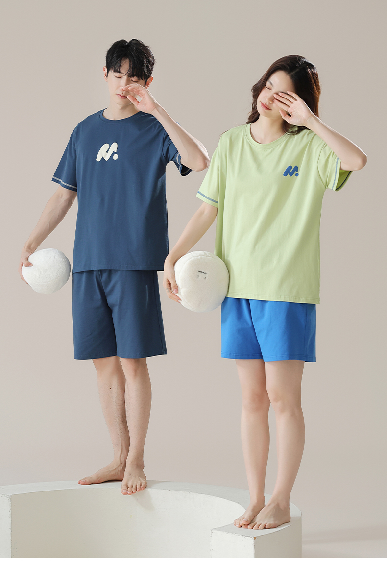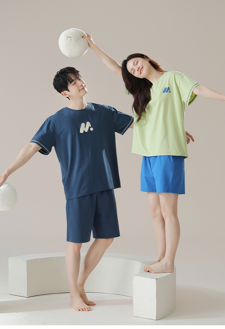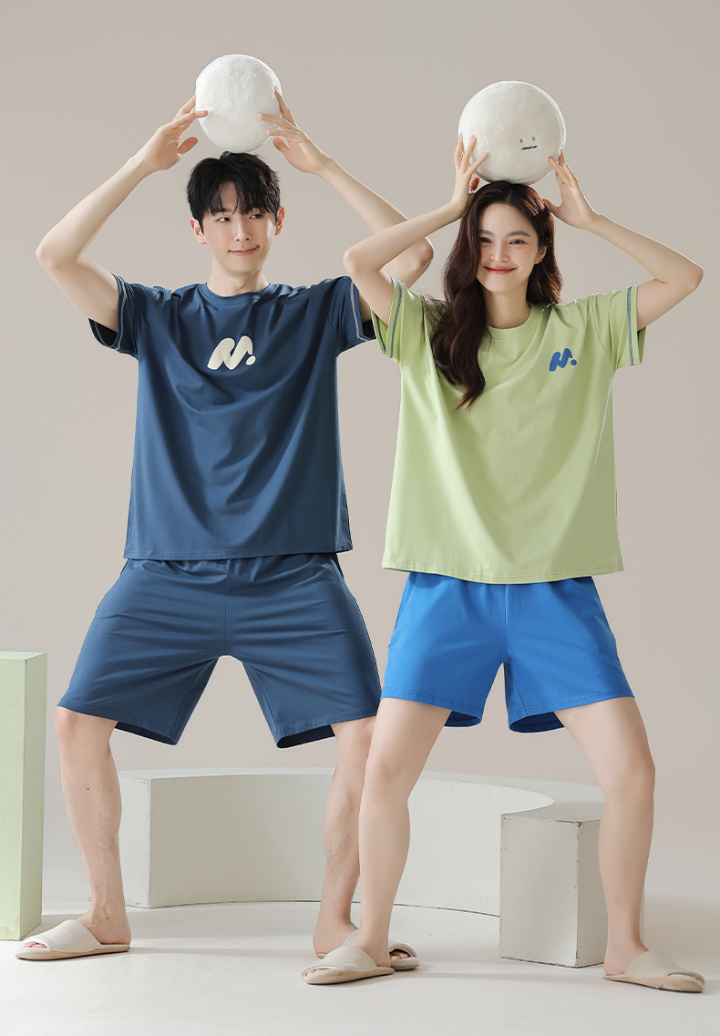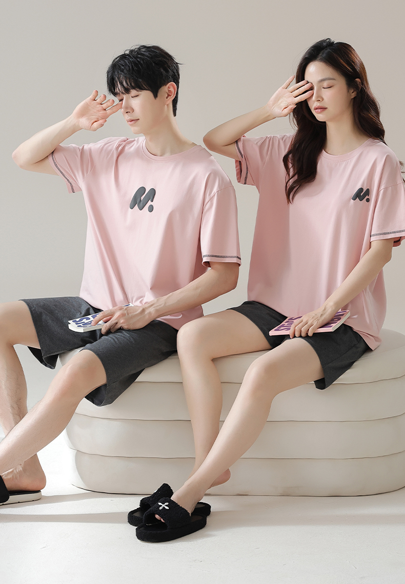 【抗菌新疆棉】自然醒灰色空间夏季纯棉短袖情侣睡衣纯色短裤大码家居服男凉爽7A抗菌新疆棉套装JLM
