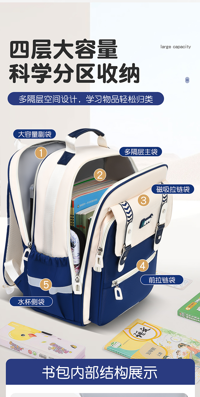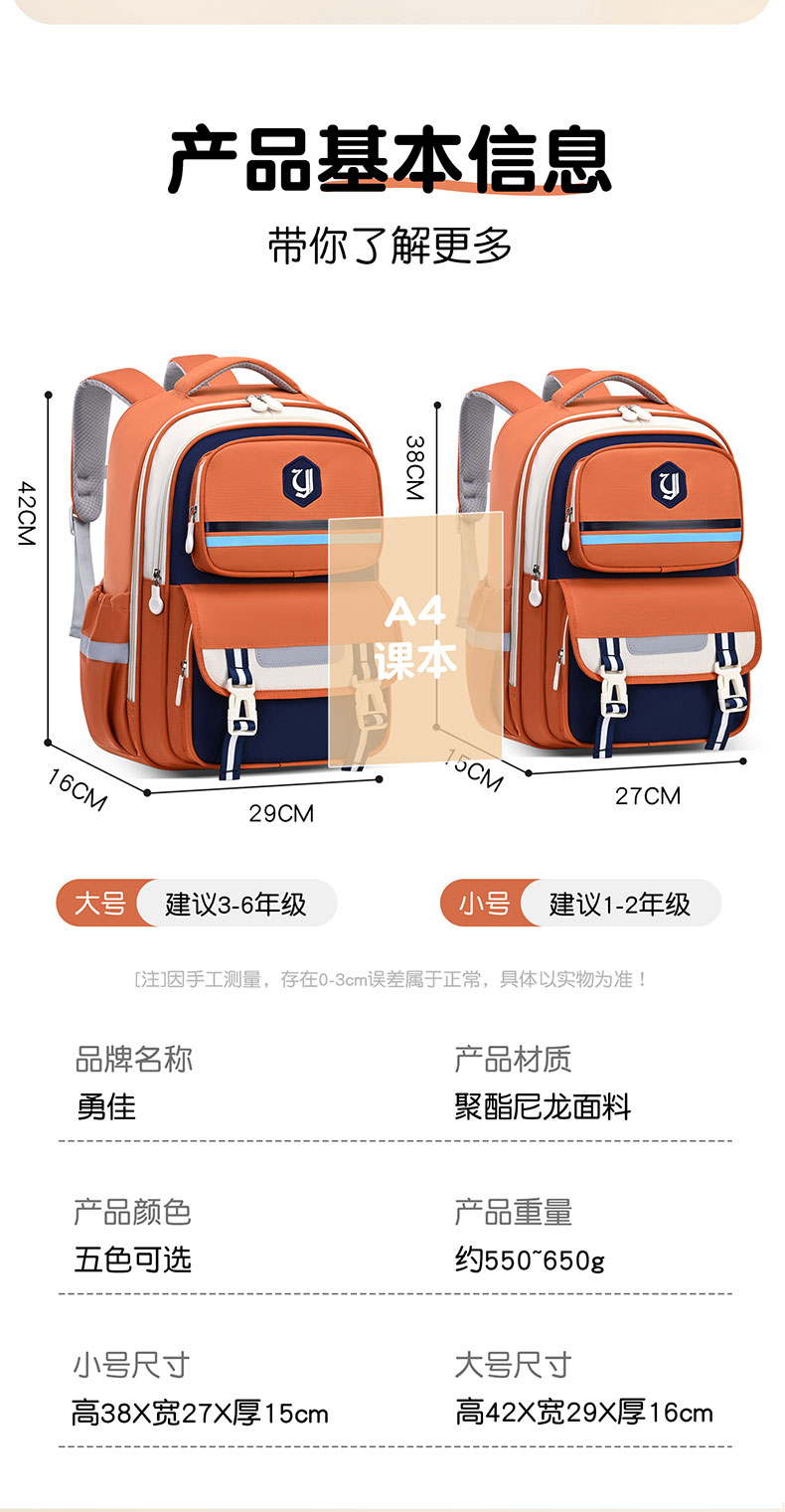 开学季【勇佳 小学生书包合集】 人体工学护脊设计 科学分区隔层