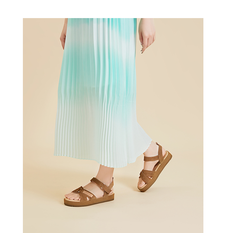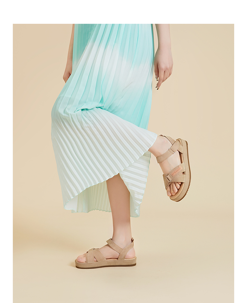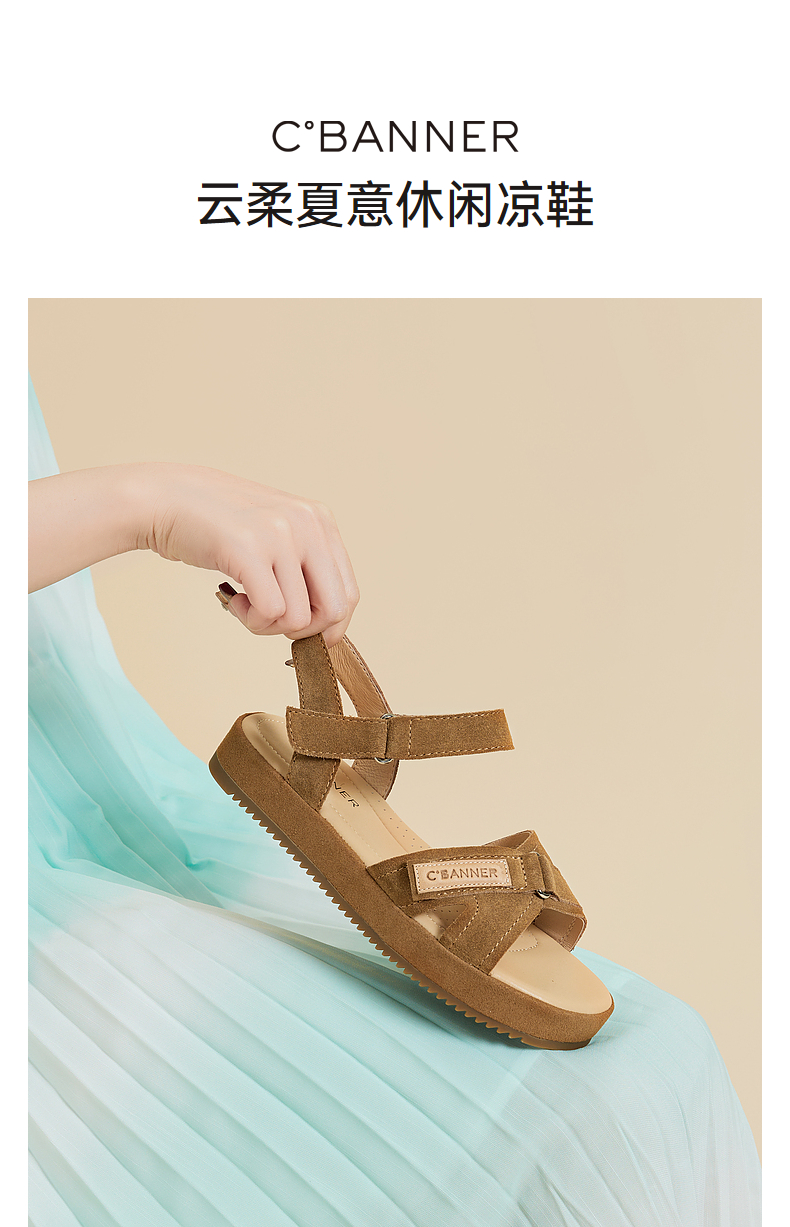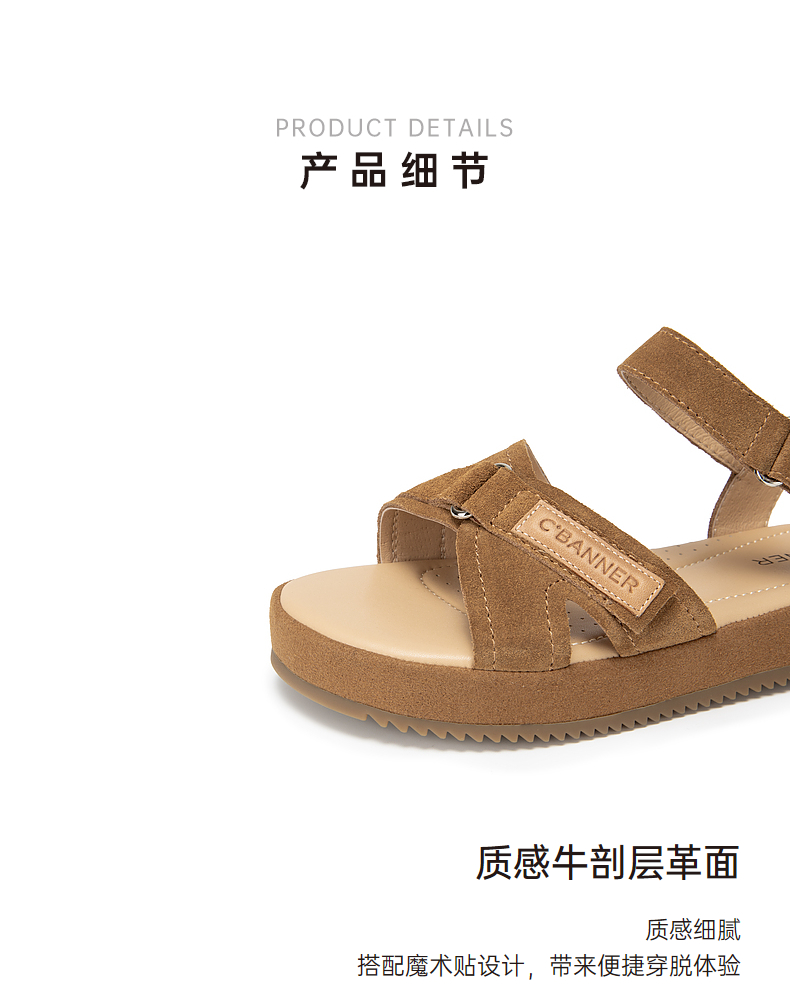 千百度平底休闲凉鞋女夏季魔术贴度假海滩凉鞋A24322613