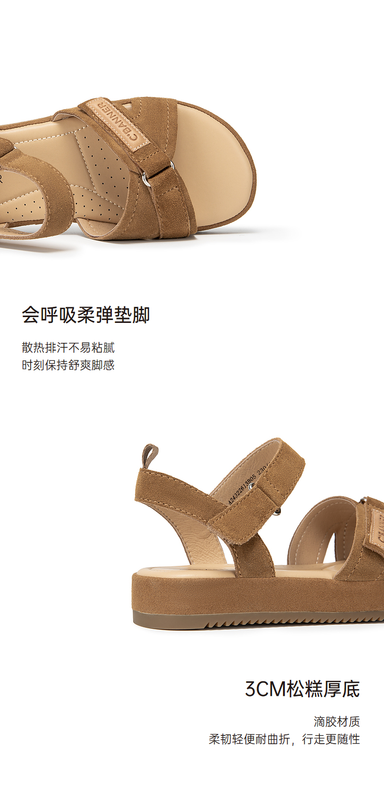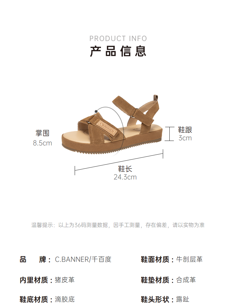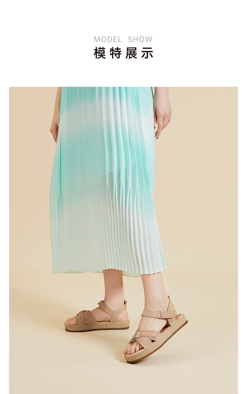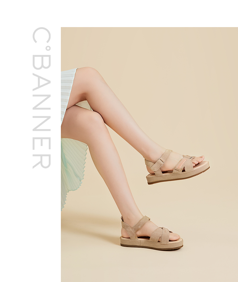 千百度平底休闲凉鞋女夏季魔术贴度假海滩凉鞋A24322613