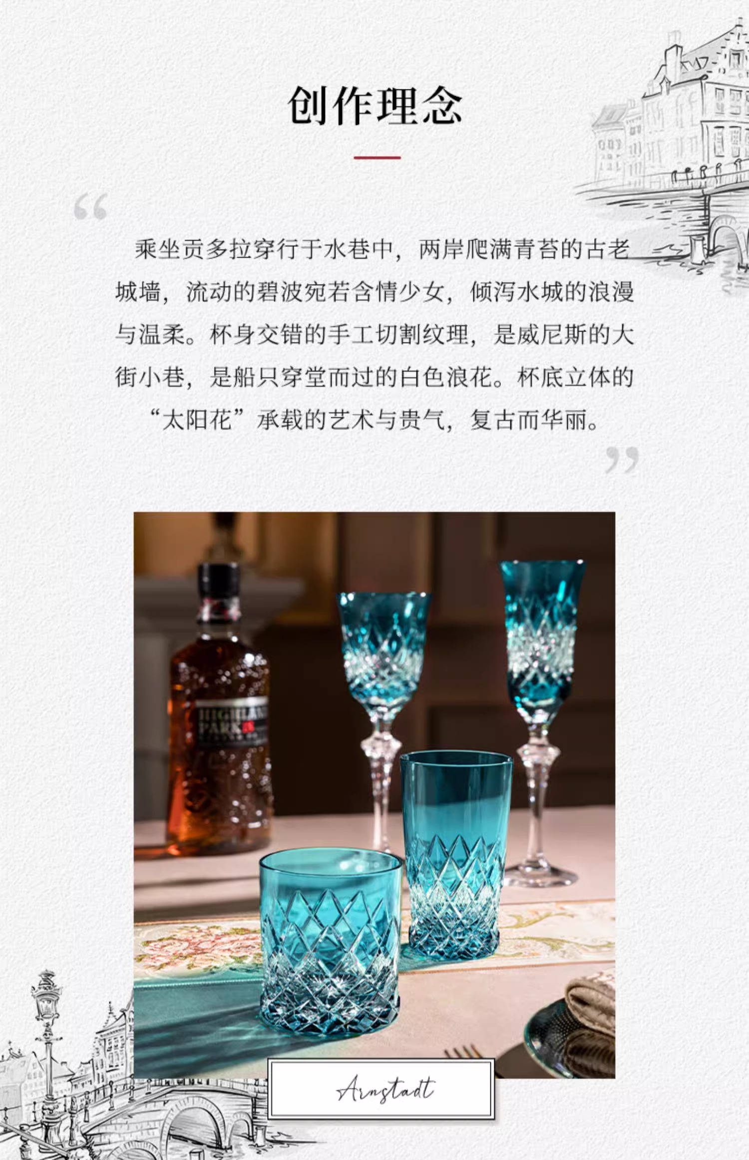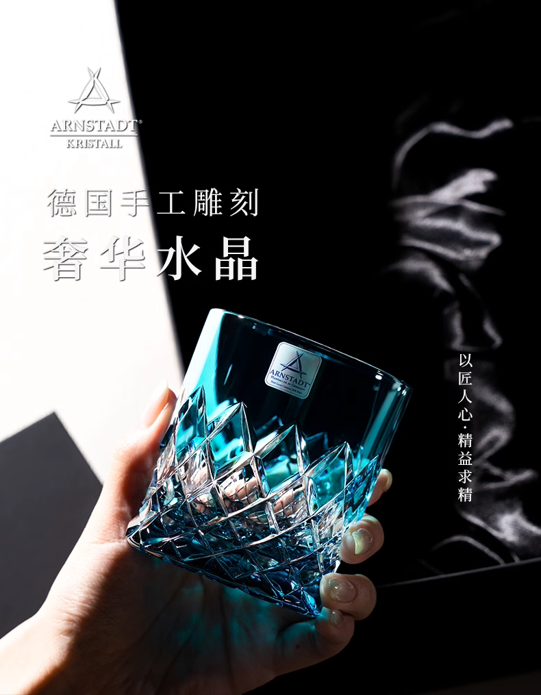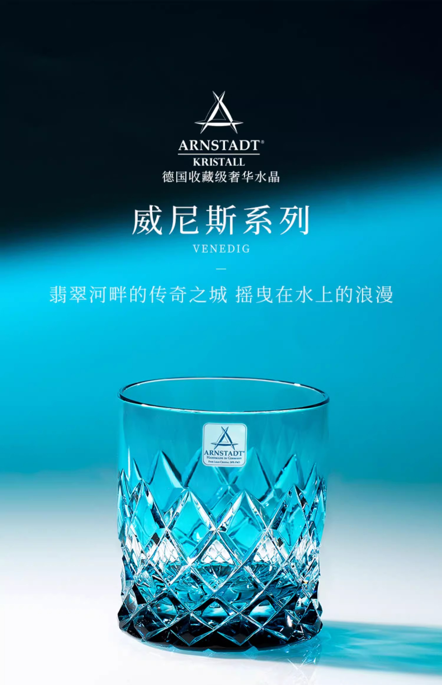 德国进口Arnstadt手工威士忌酒杯水晶杯洋酒杯子奢华轻奢高档礼物安斯特宝蓝威尼斯威士忌单只礼盒300ml(仅样品,无货退款