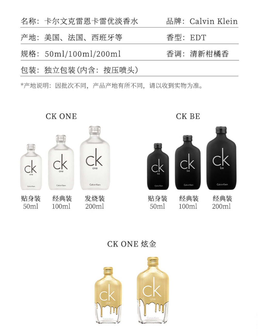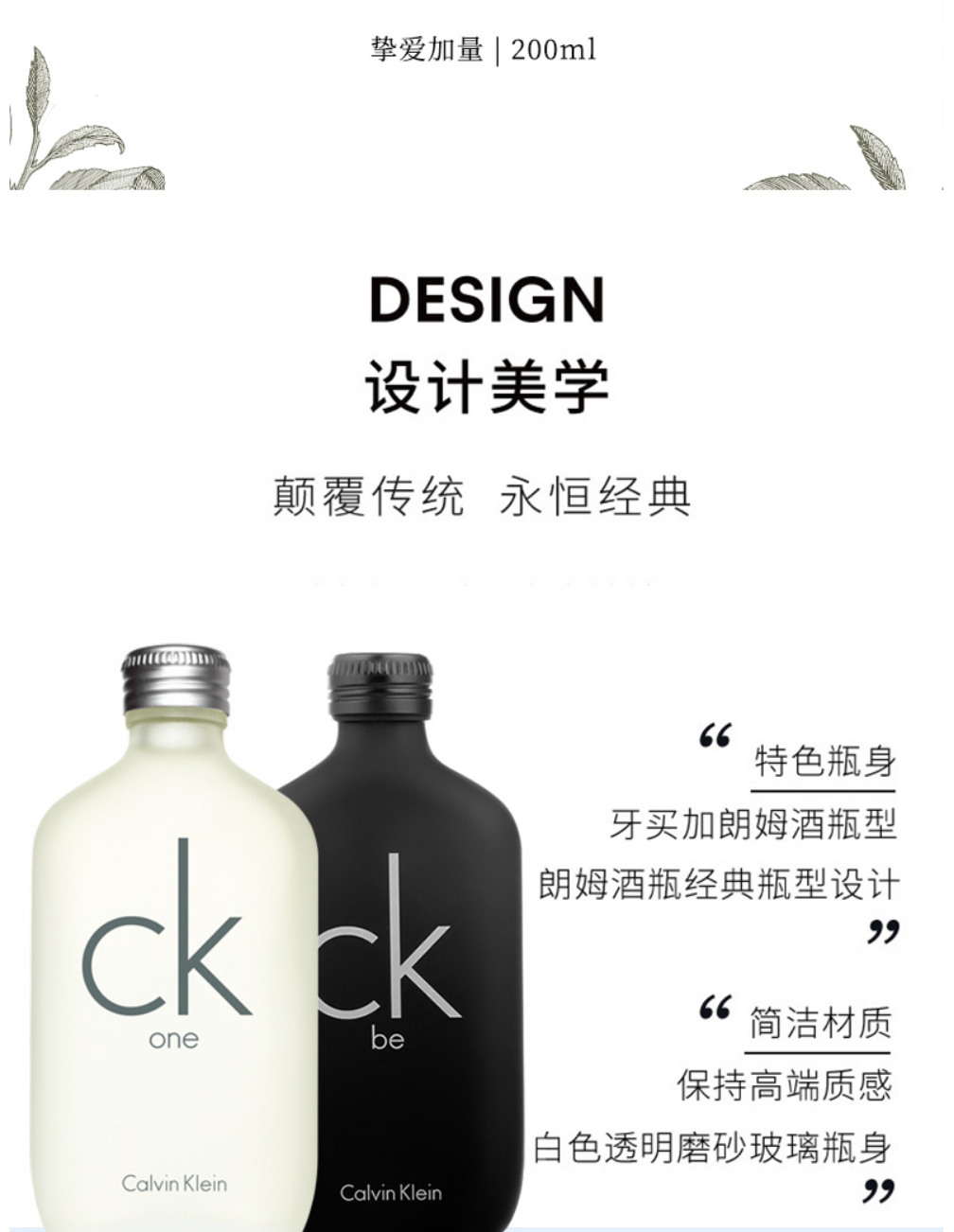 卡尔文克雷恩(Calvin Klein)ck卡雷比中性淡香水100ml