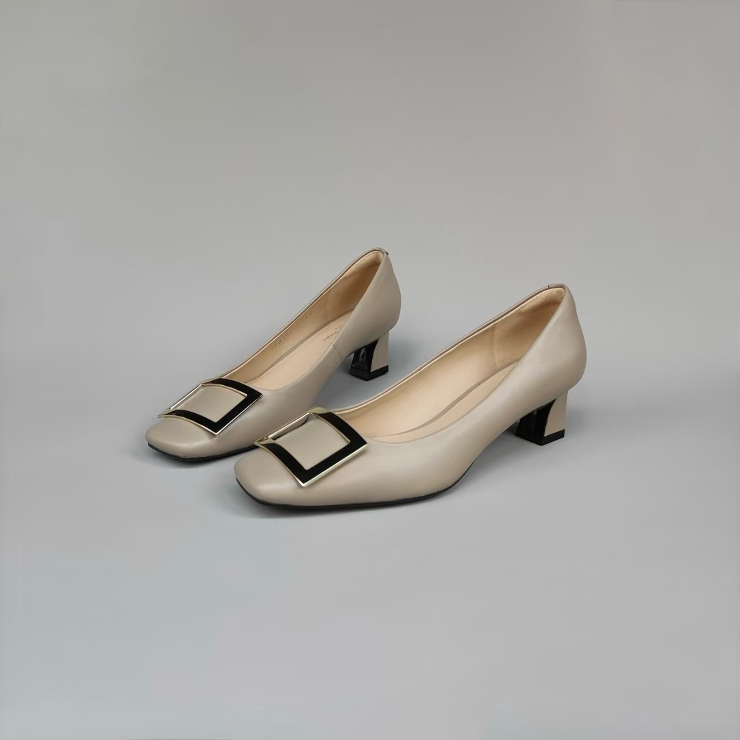 (老板自留)火桐hooton 跟高4.6cm 小羊皮浅口中跟单鞋XZ79625