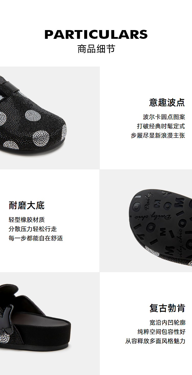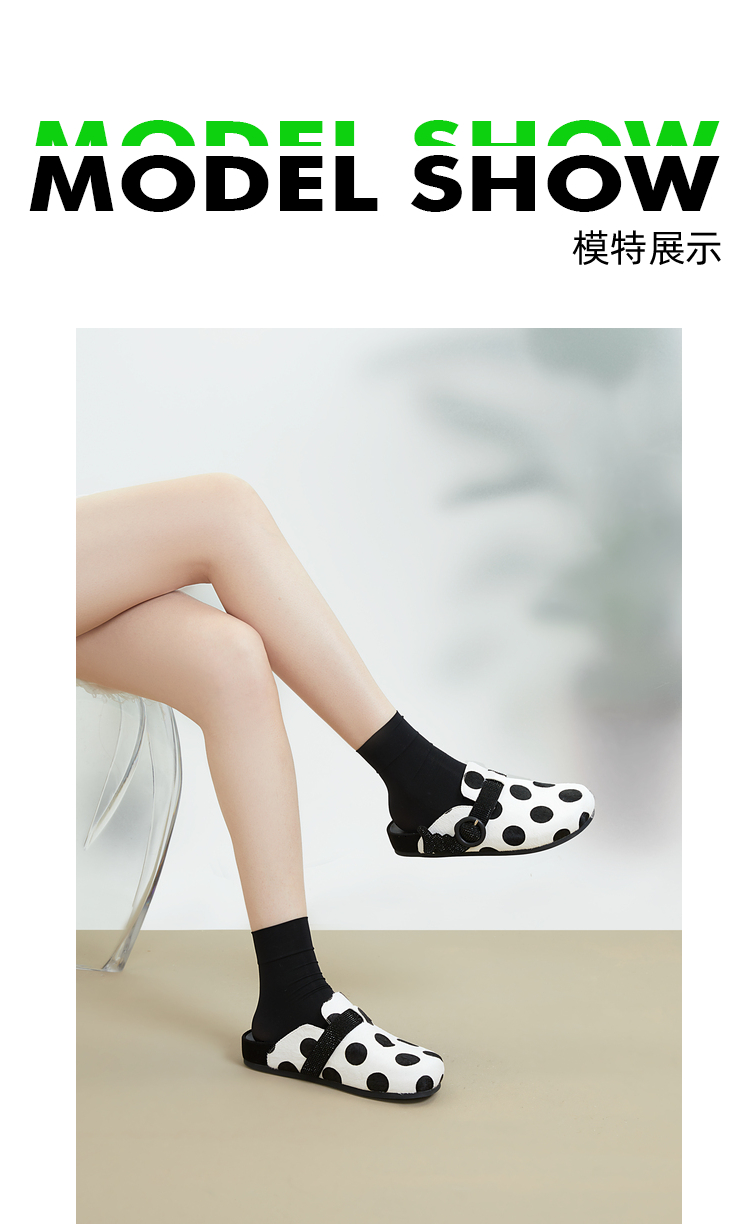 MIO米奥夏季复古风舒适平跟包头拖时尚百搭波点勃肯拖鞋女鞋 M232226819