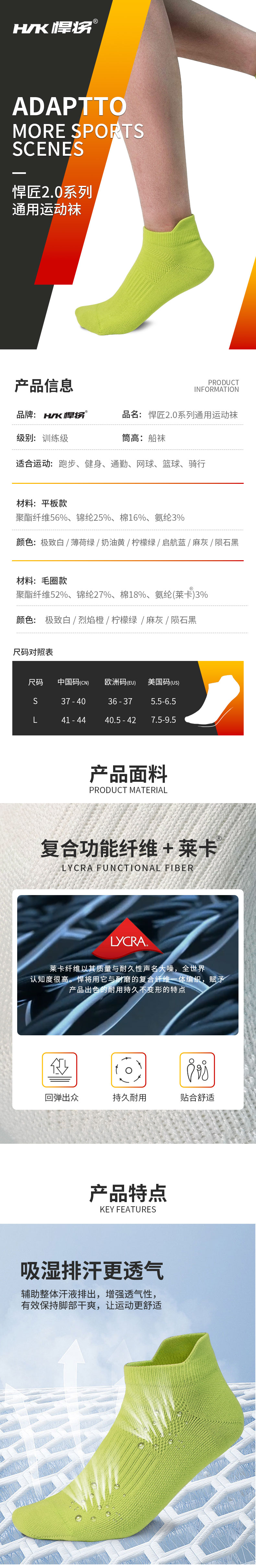 HNK/悍将2.0系列夏季跑步通勤健身上班上学训练通用运动船袜透气