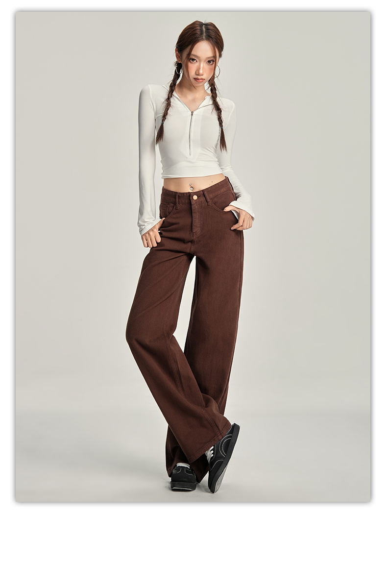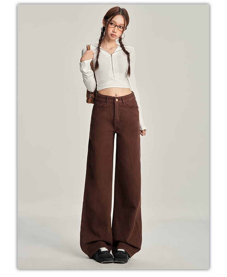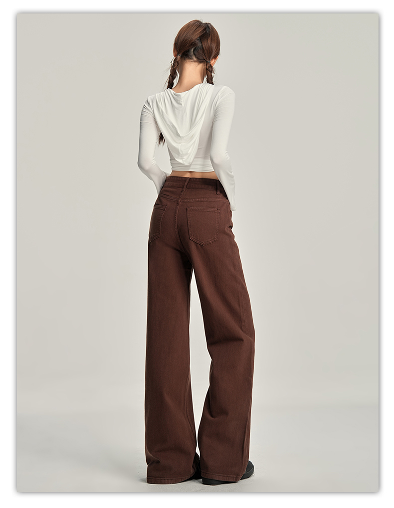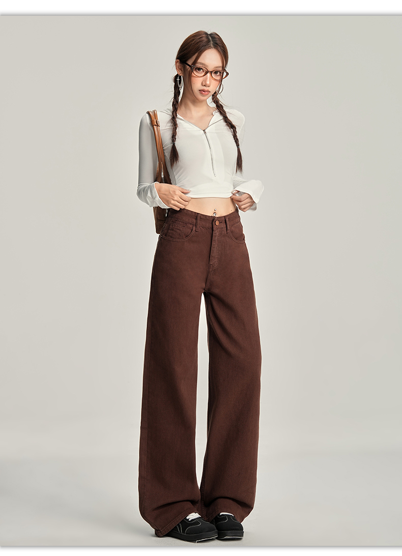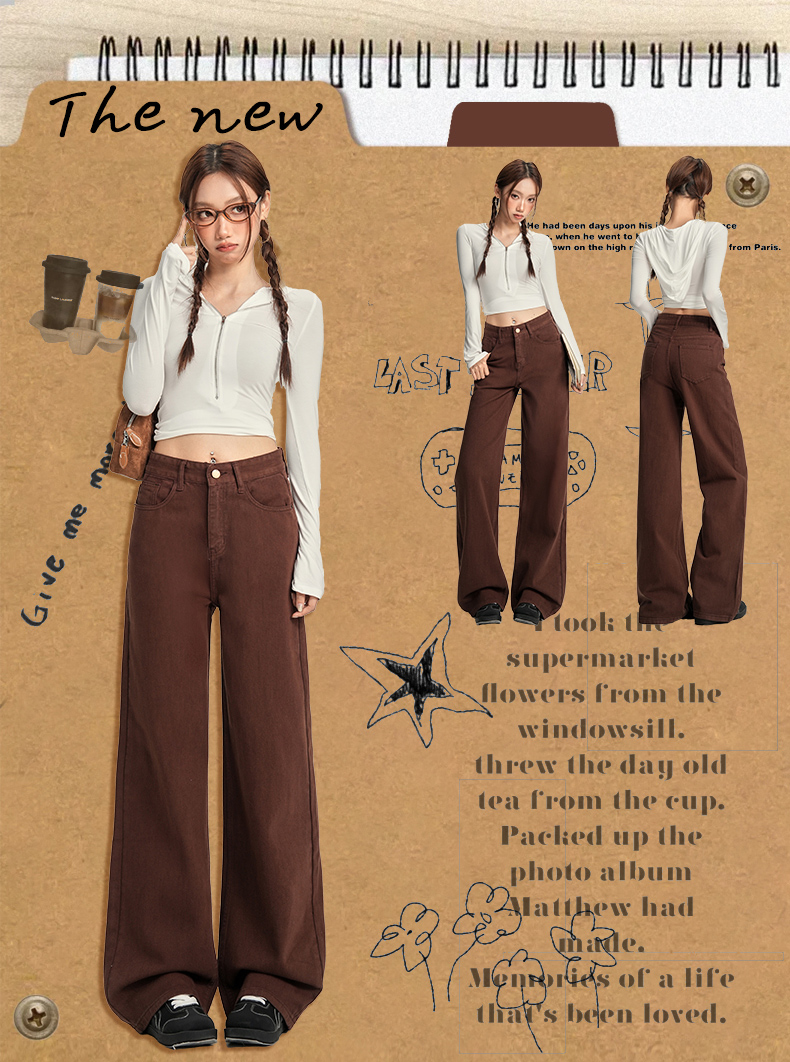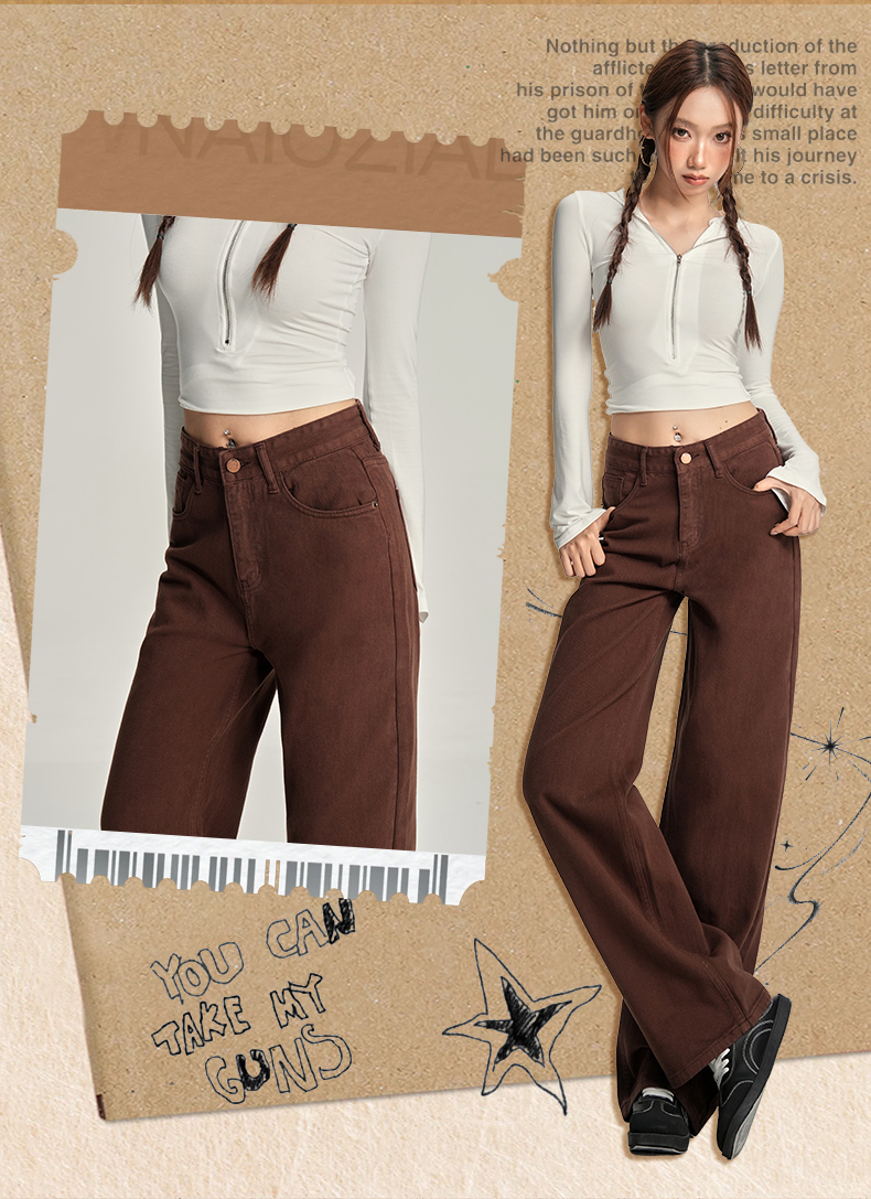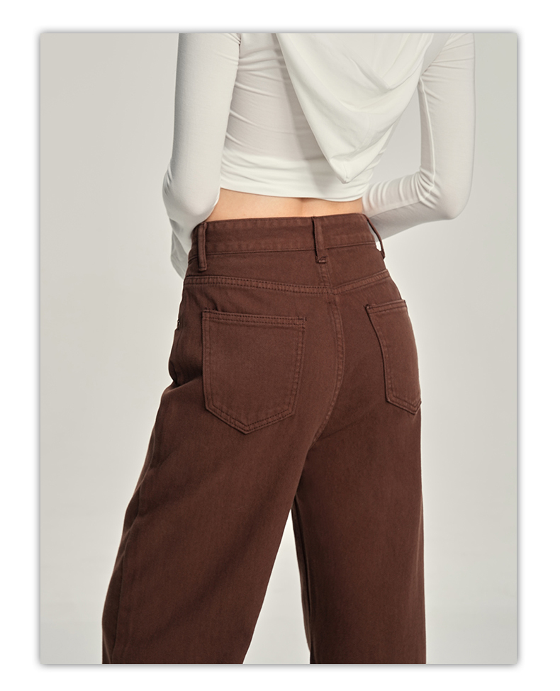 【加绒加厚】罗蒙秋冬款咖色加绒女士阔腿牛仔裤美拉德风百搭长裤