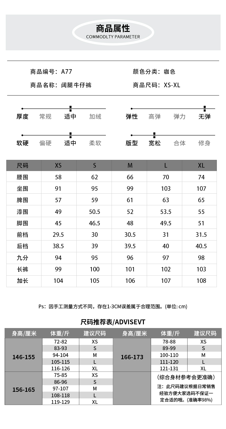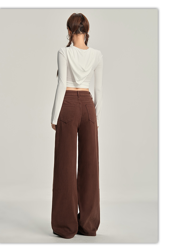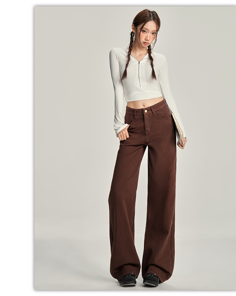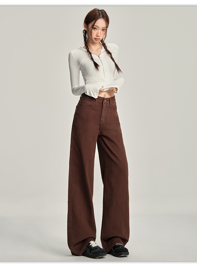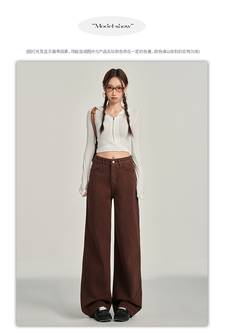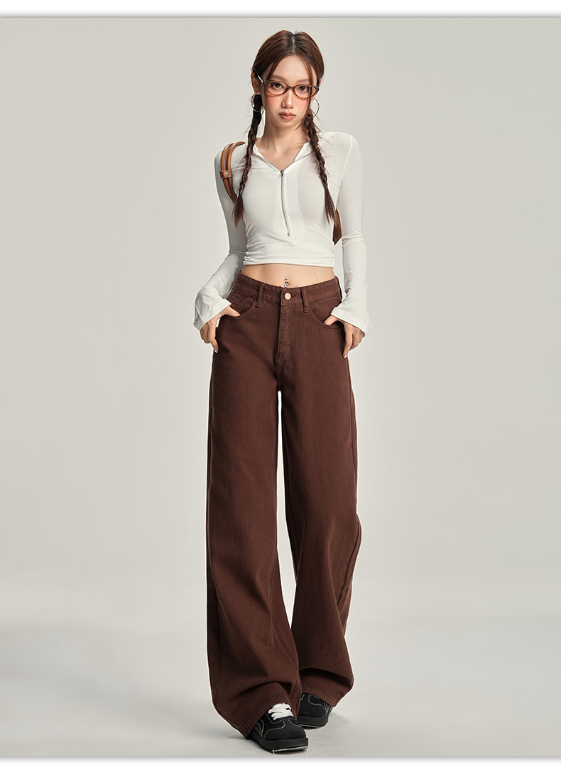 【加绒加厚】罗蒙秋冬款咖色加绒女士阔腿牛仔裤美拉德风百搭长裤