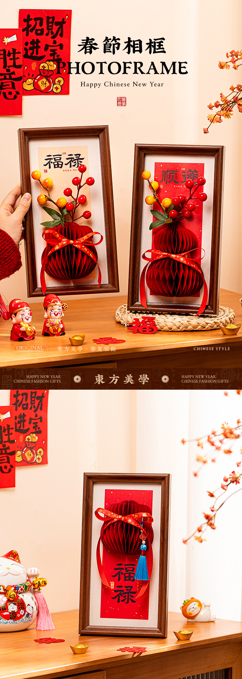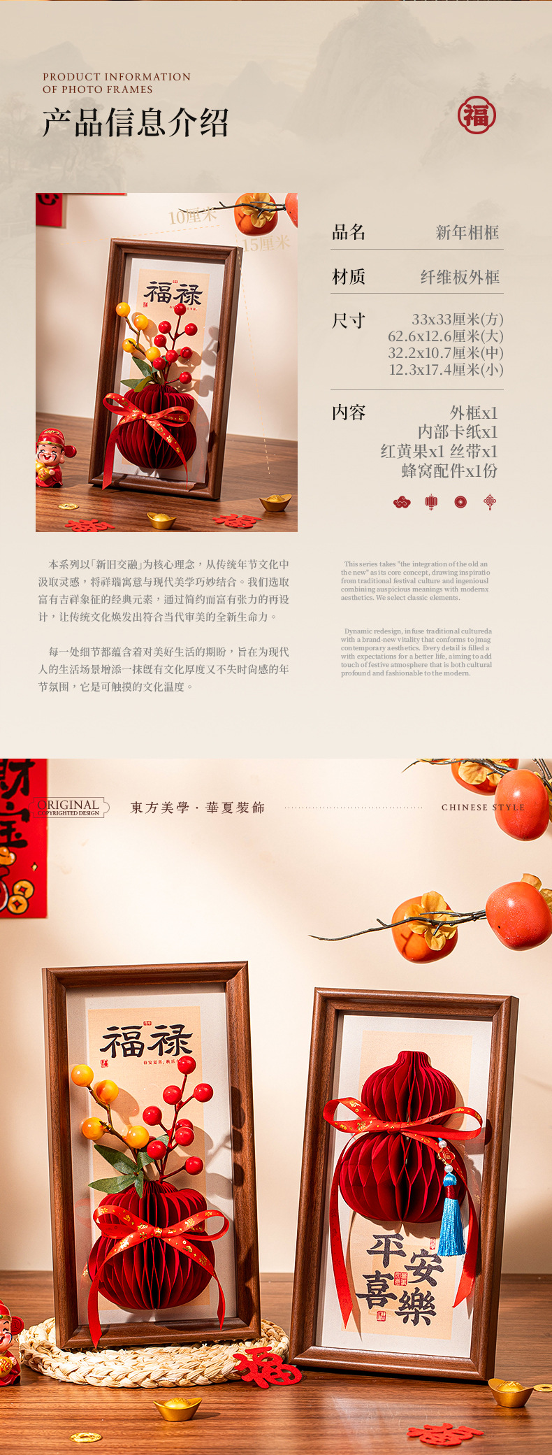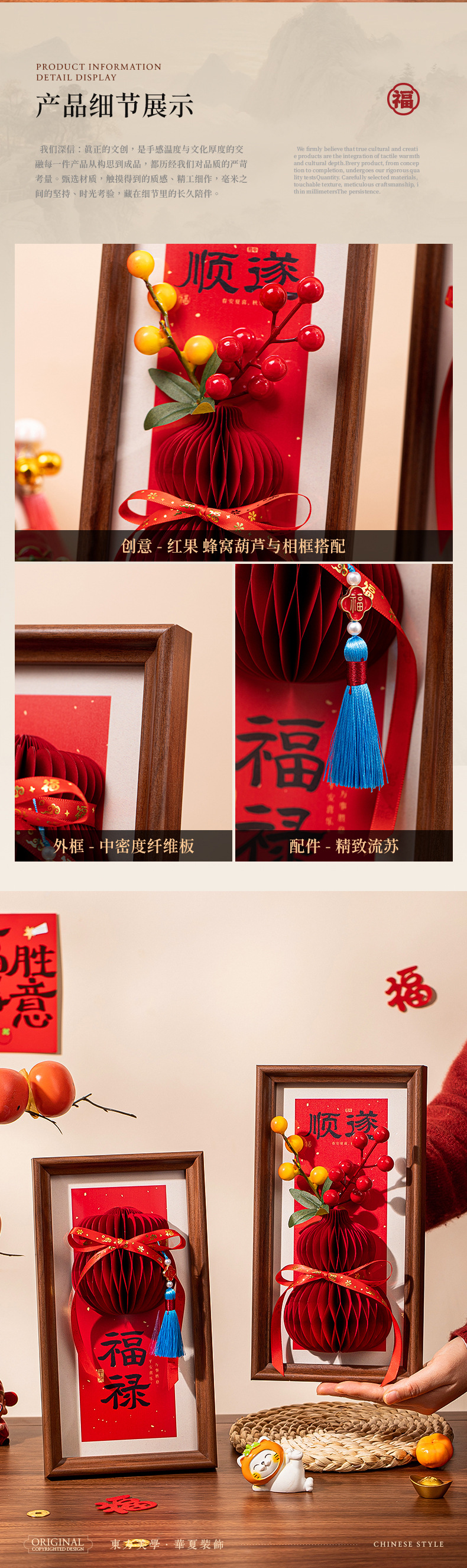 【马年!东方美新年摆件】装饰相框 2026新年春节过年装扮客厅蜂窝摆件 室内玄关场景布置