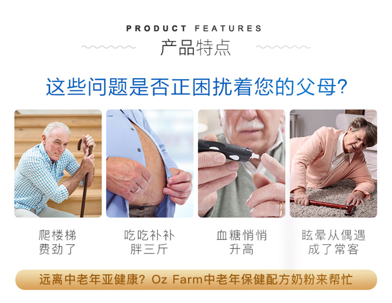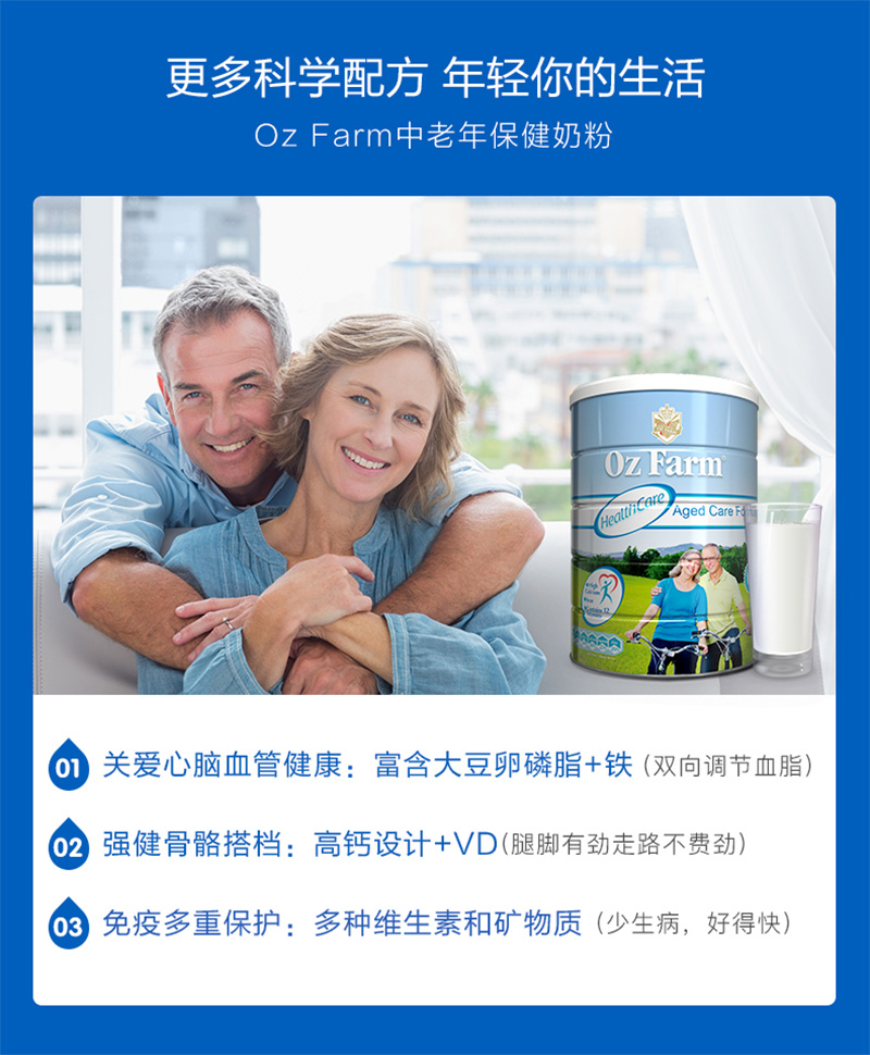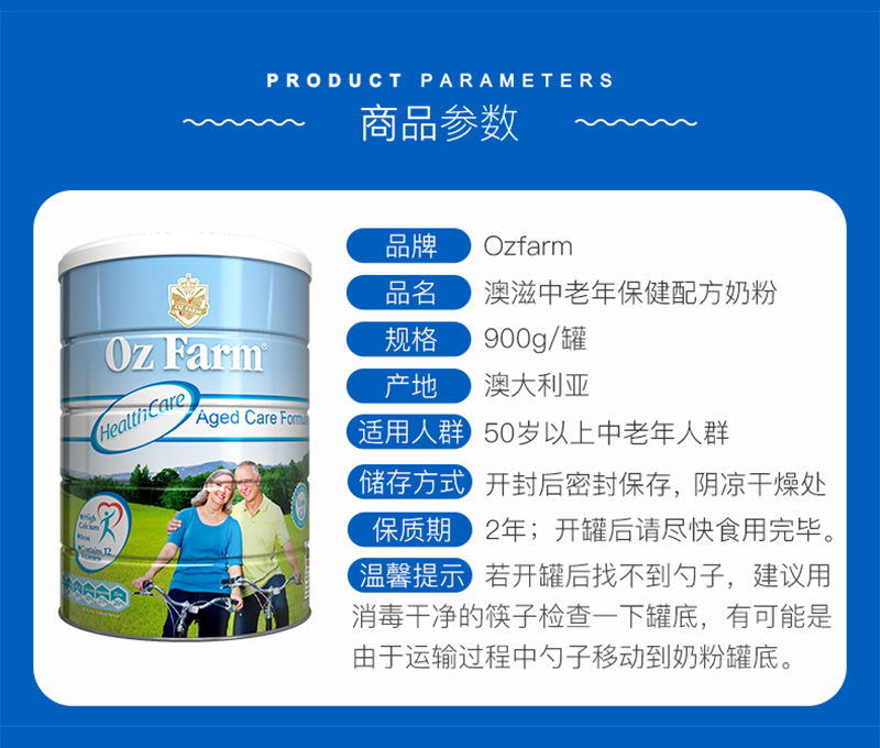 澳美滋OzFarm 中老年高钙低糖低脂保健配方奶粉900g