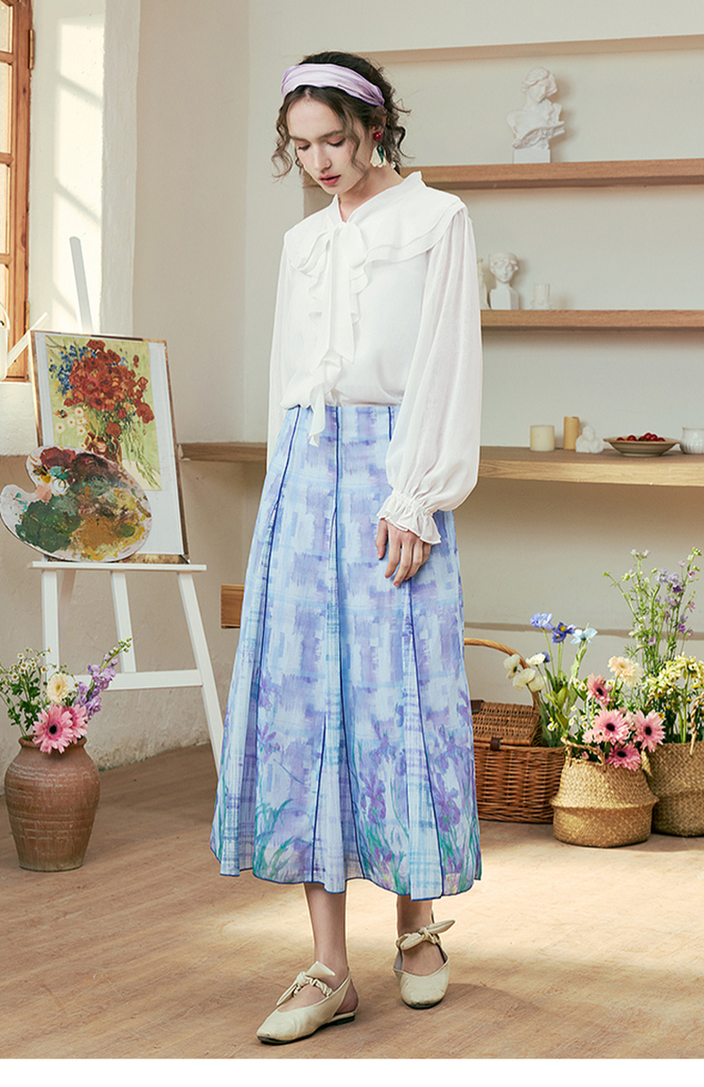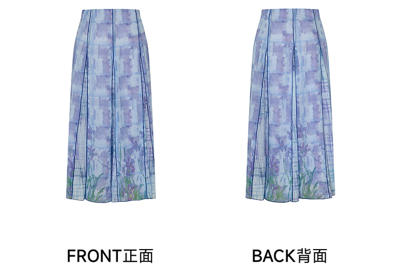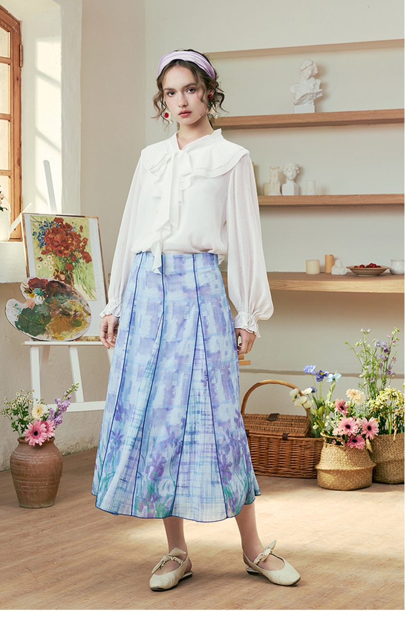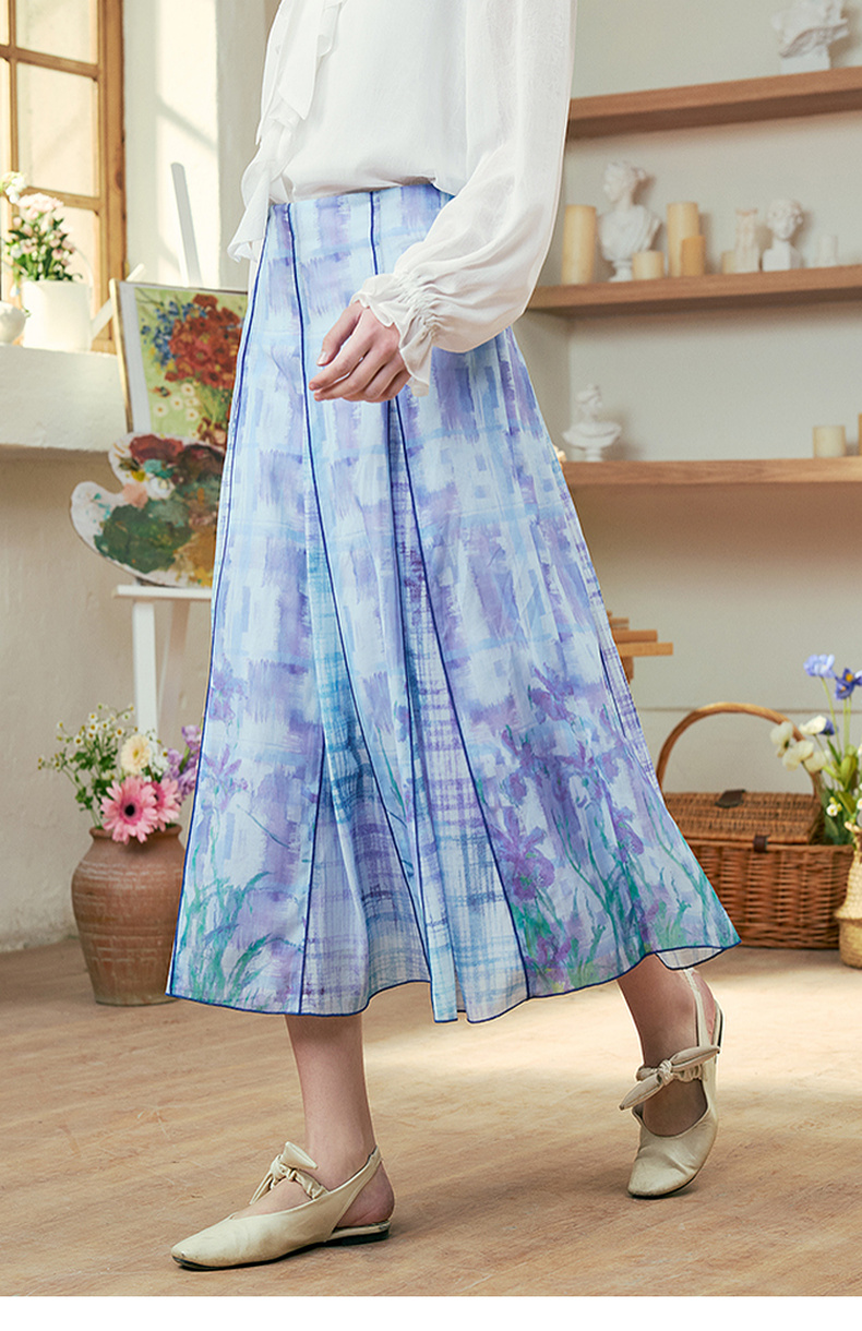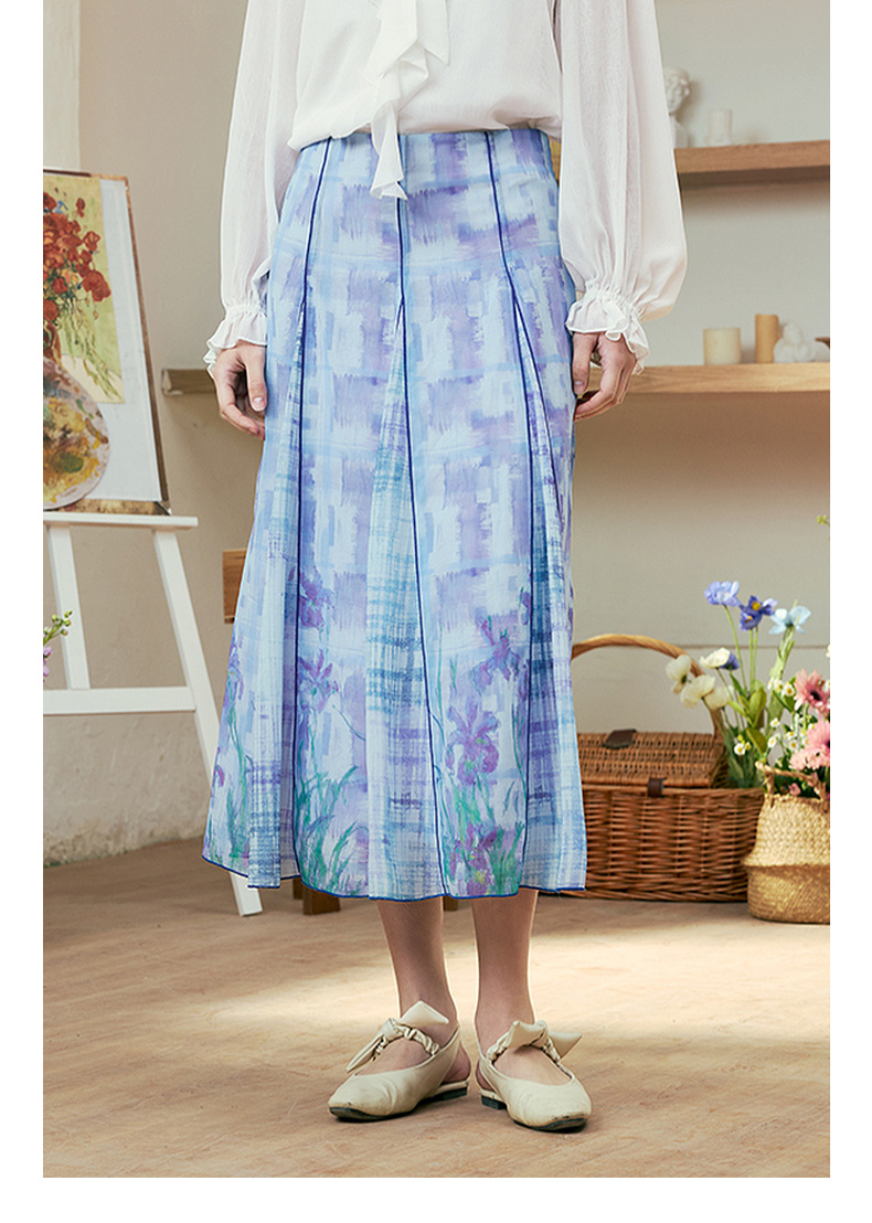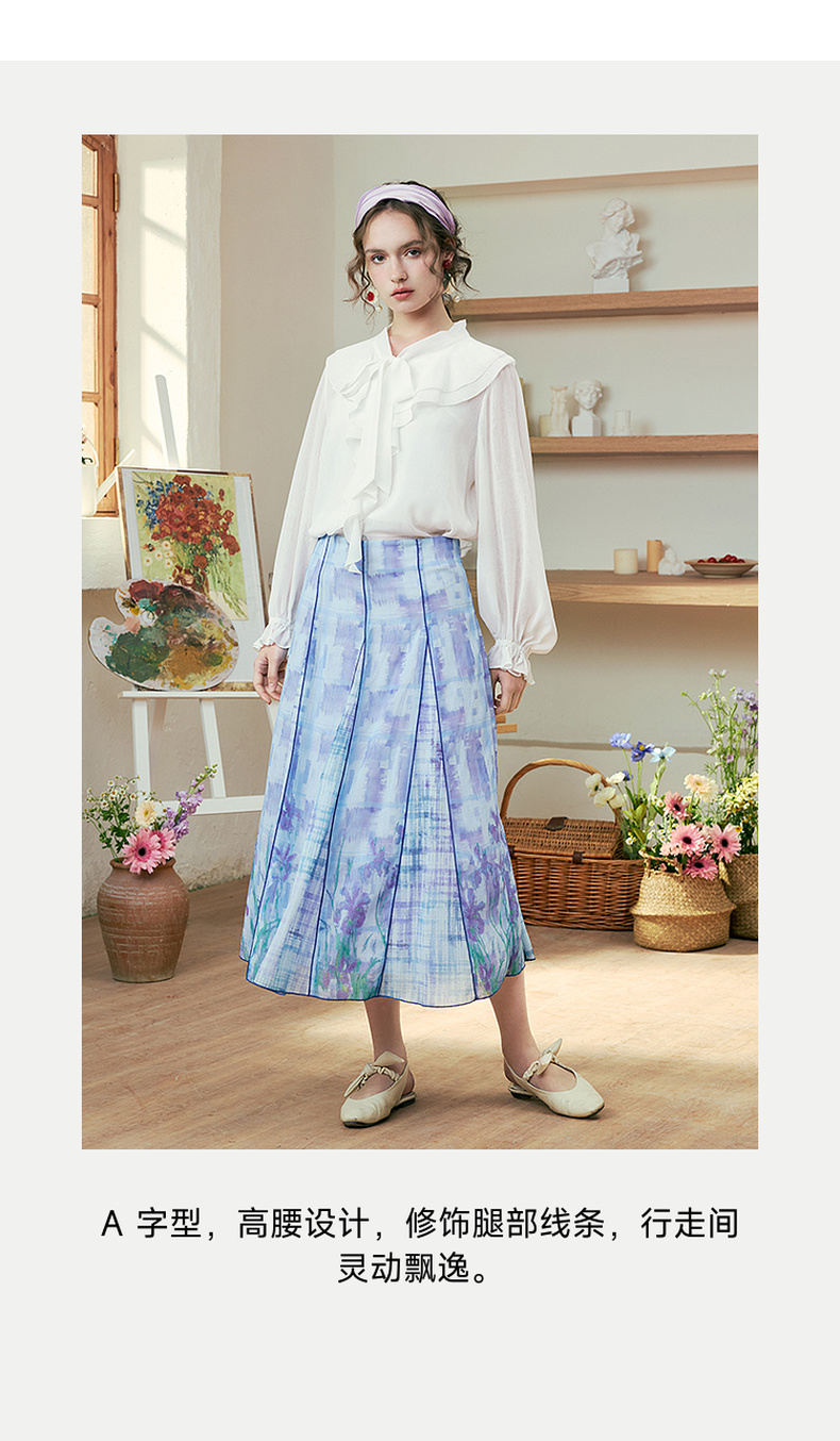 两三事 腾云越海 2025春季新款复古拼布印花压褶高腰半身裙长裙