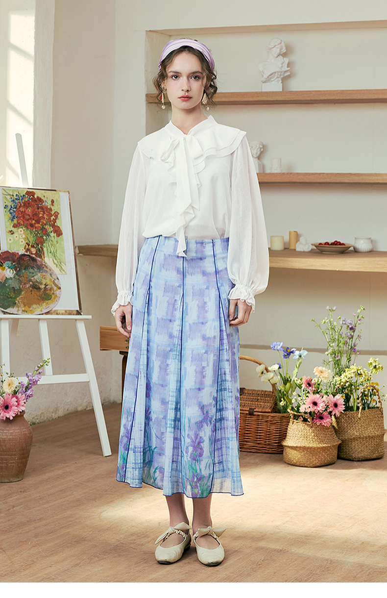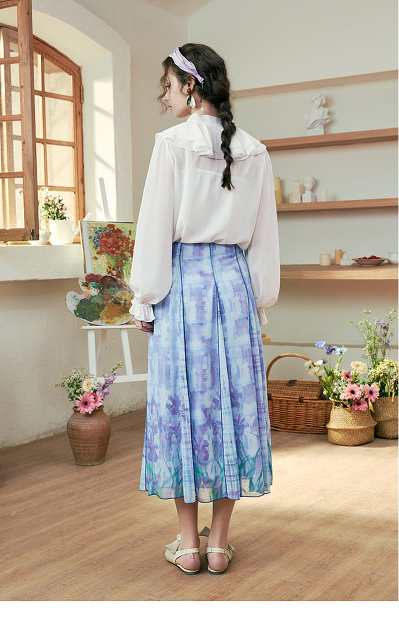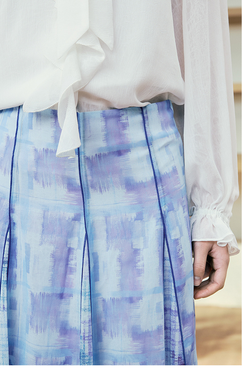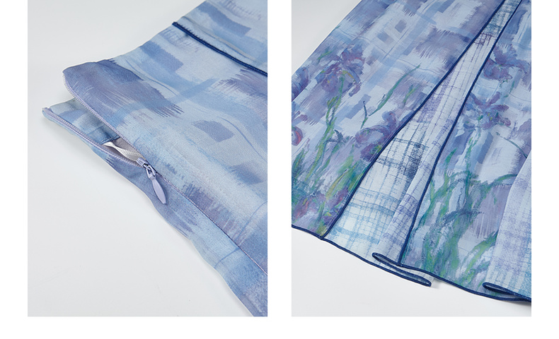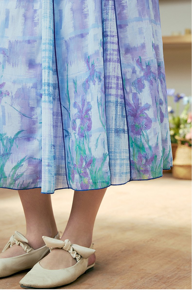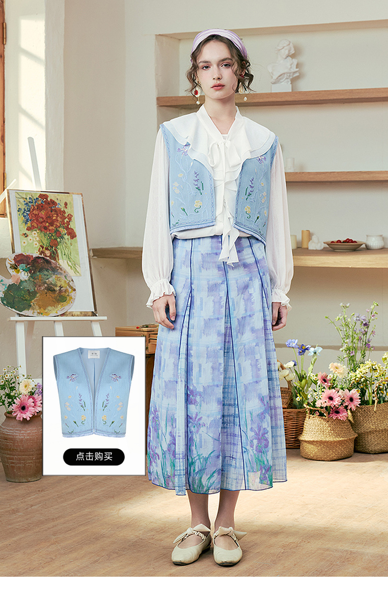 两三事 腾云越海 2025春季新款复古拼布印花压褶高腰半身裙长裙
