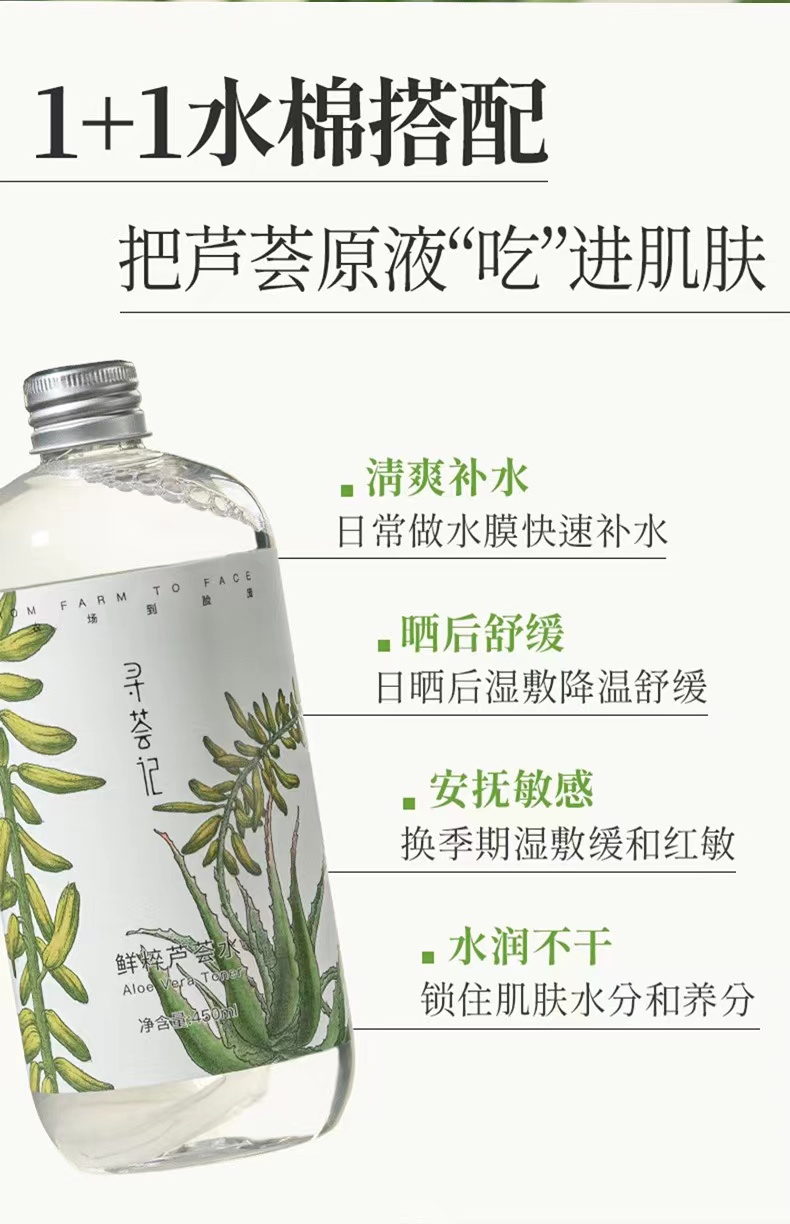 寻荟记芦荟水补水保湿敷油平衡控油化妆卸妆爽肤水450ml