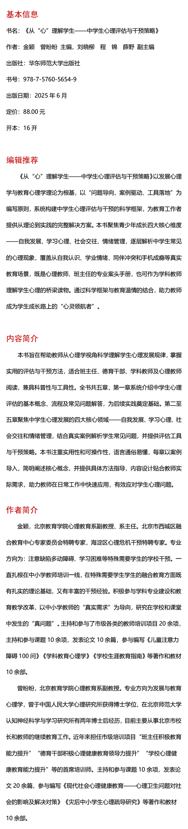 从“心”理解学生 中学生心理评估与干预策略 青少年心理教育