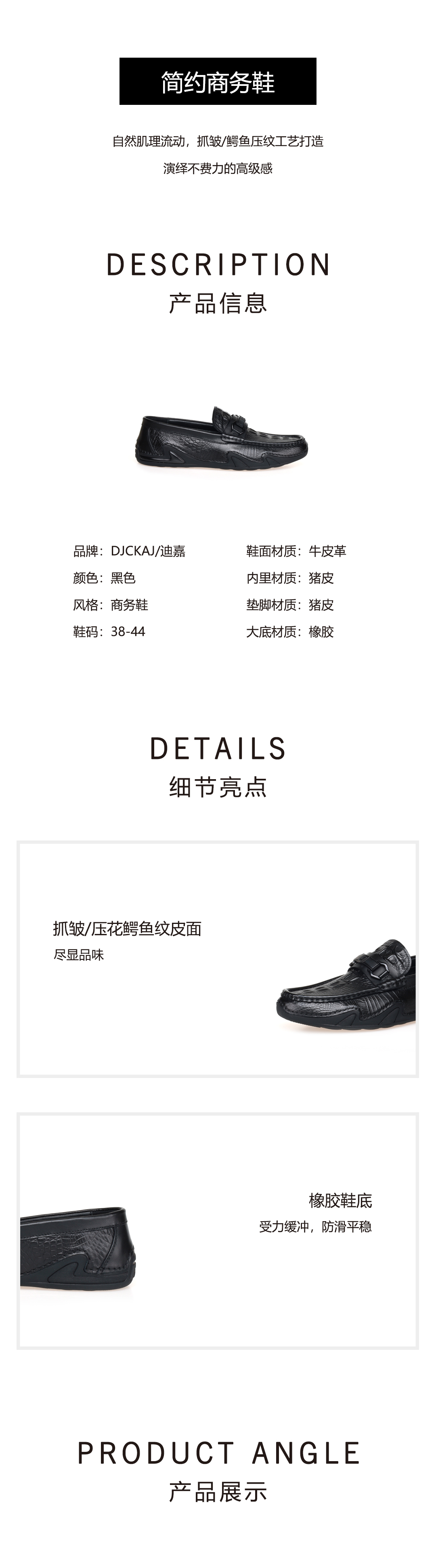 豪麟名鞋奥莱迪嘉男鞋商务鞋牛皮革DJWTO51MS206黑色 原价1960元