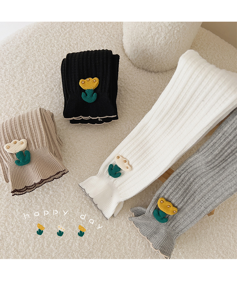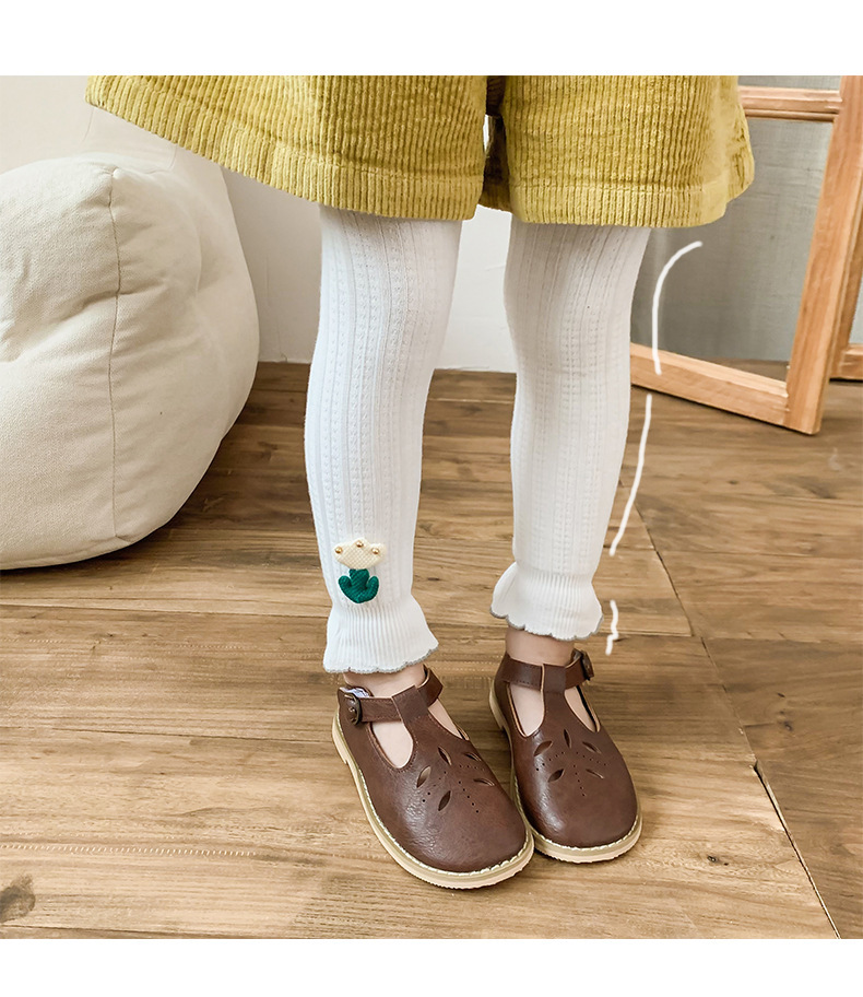 大PP宝宝打底裤春秋棉质外穿郁金香花边女童九分裤儿童连裤袜