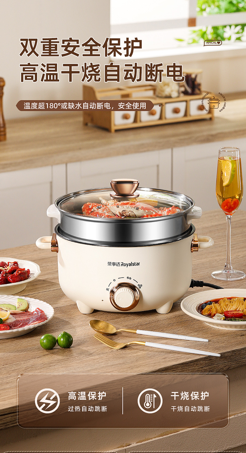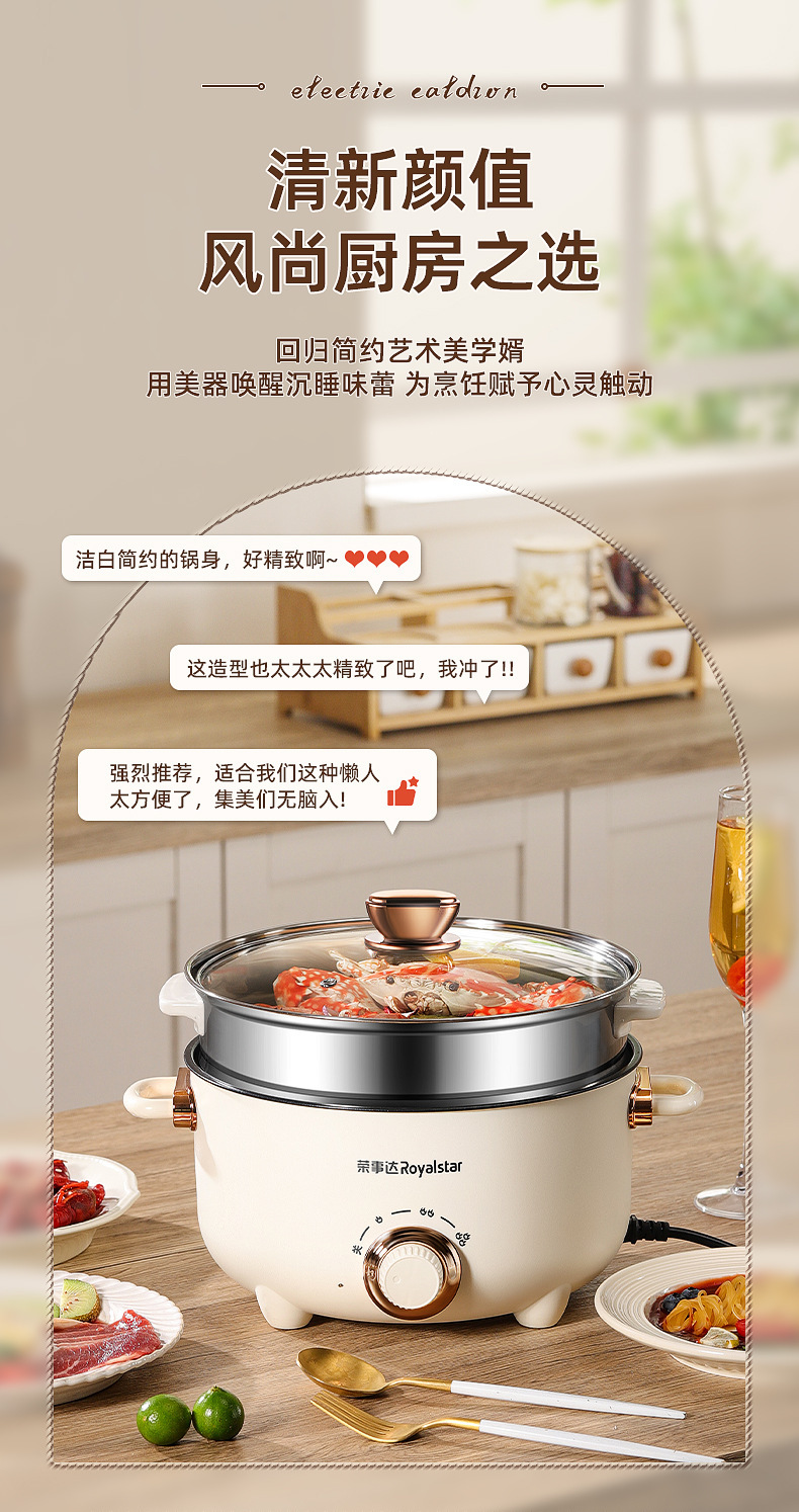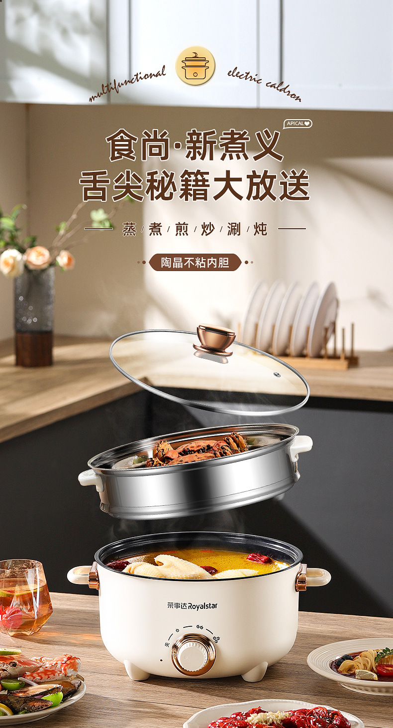 【荣士达电煮锅】电煮锅 多功能家用煎炒蒸煮电炒锅 宿舍学生煮饭泡面电火锅 炒菜锅