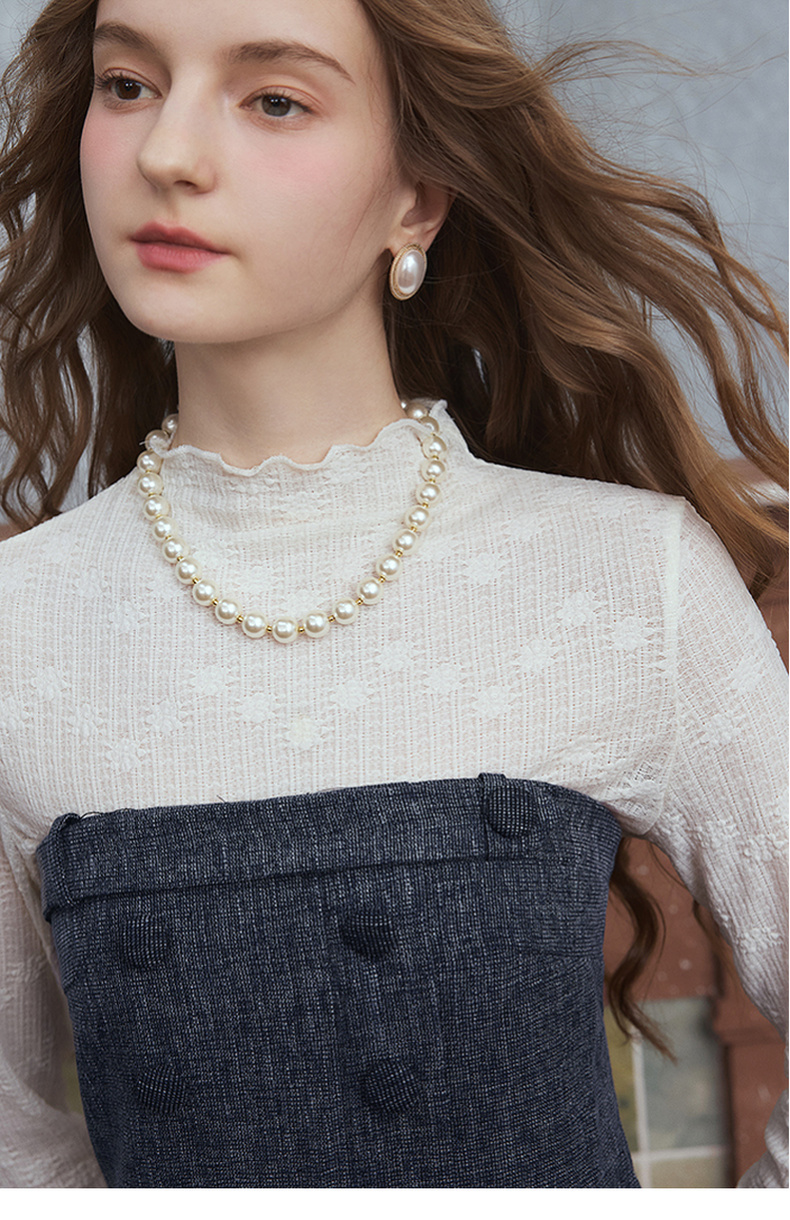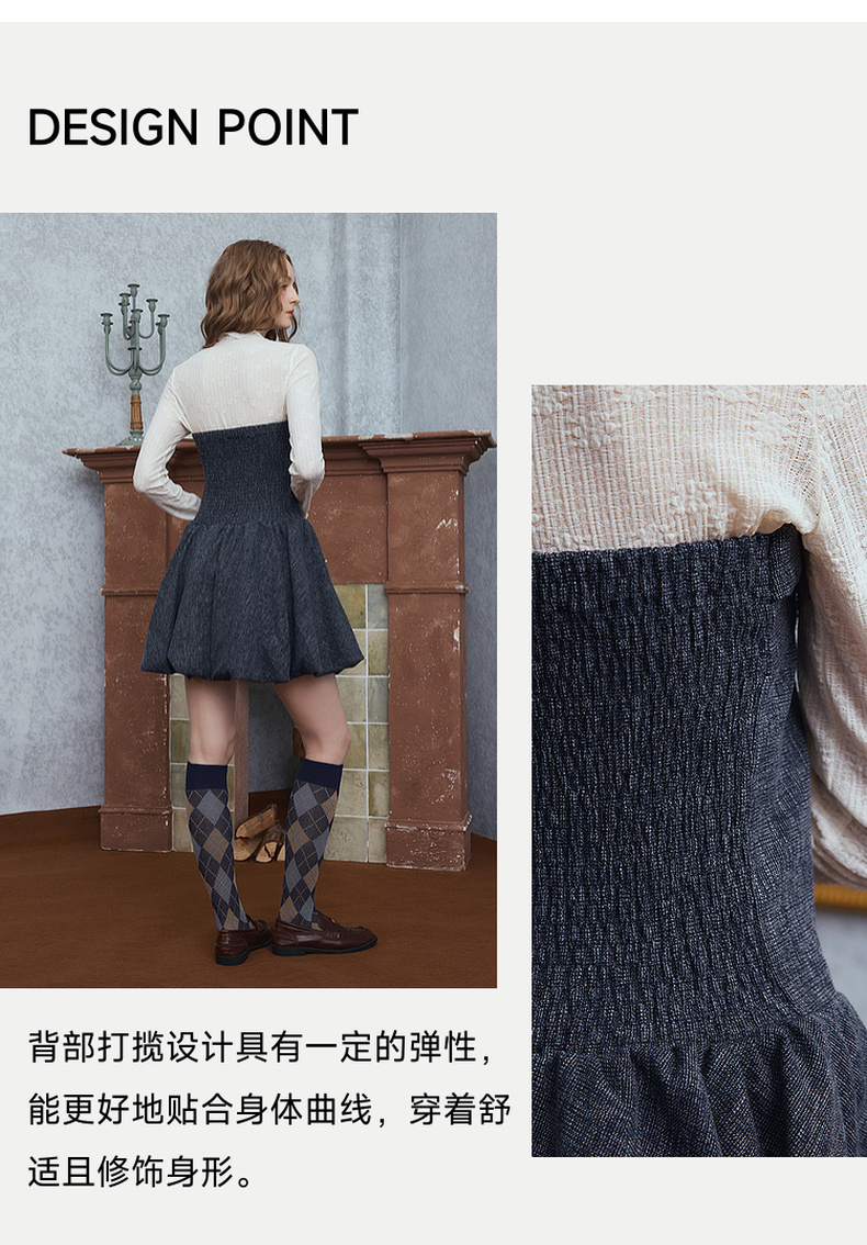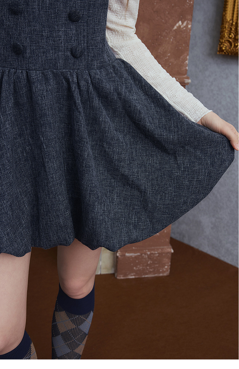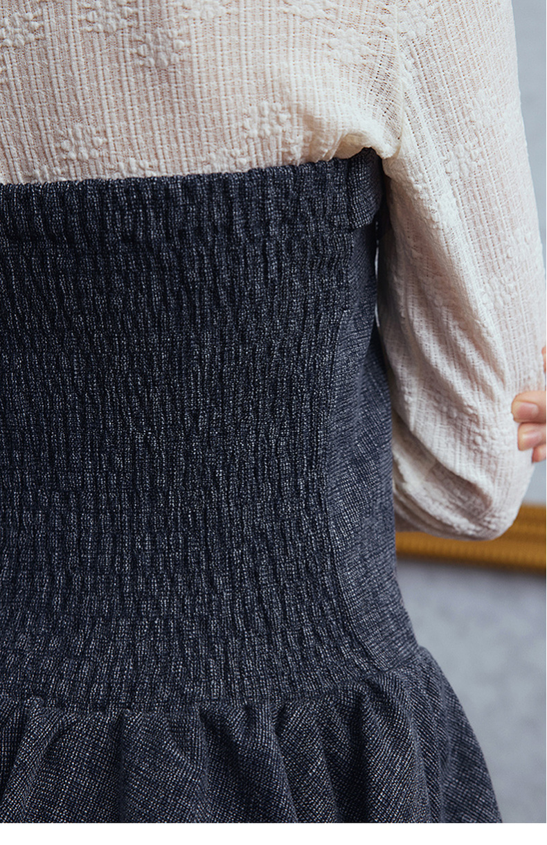 两三事一人相伴 春夏新款时尚单边背带裙系扣高腰牛仔半身裙S23CKB050