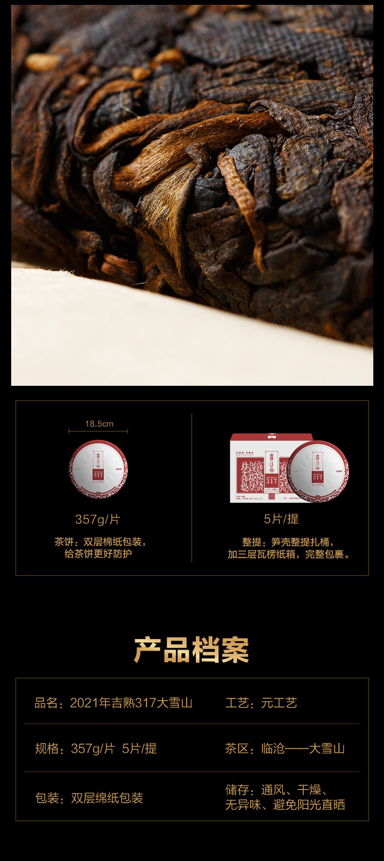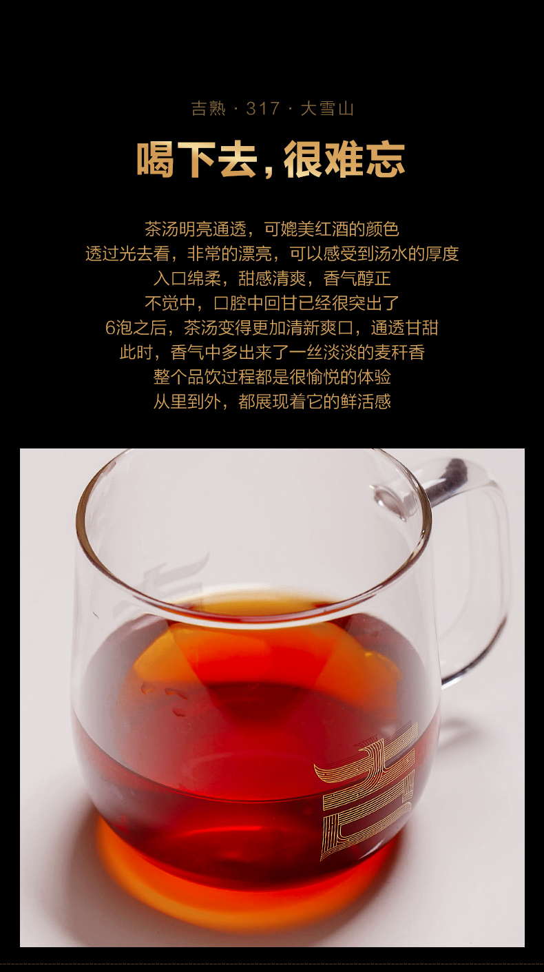 吉普号 元熟317 大雪山普洱熟茶 云南七子饼 古树熟普 357g/饼(天猫京东有售)