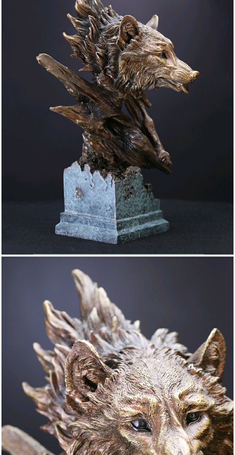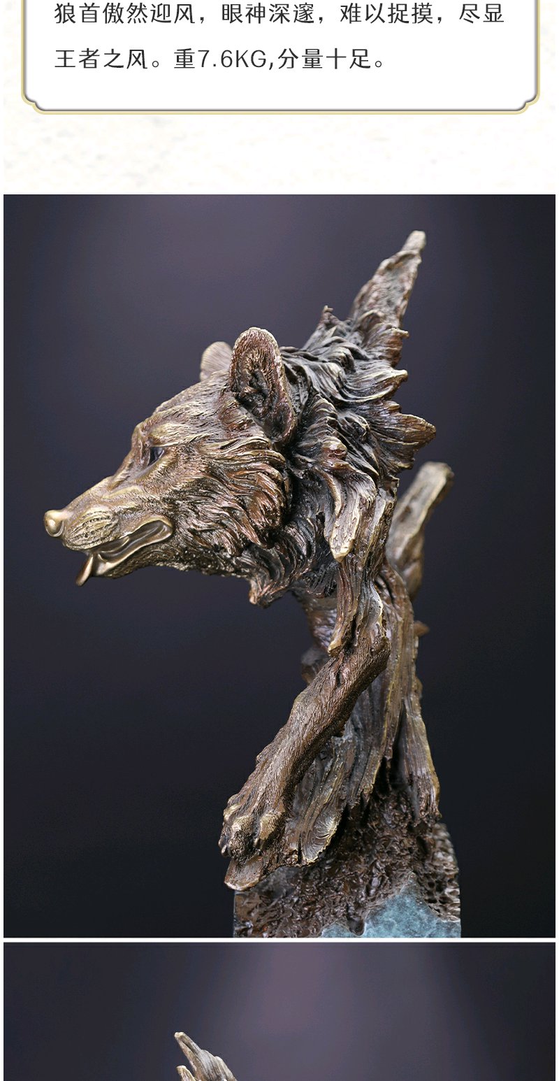 朱府铜艺 万夫不当&全铜狼头摆件铜艺术品客厅玄关高端创意摆件