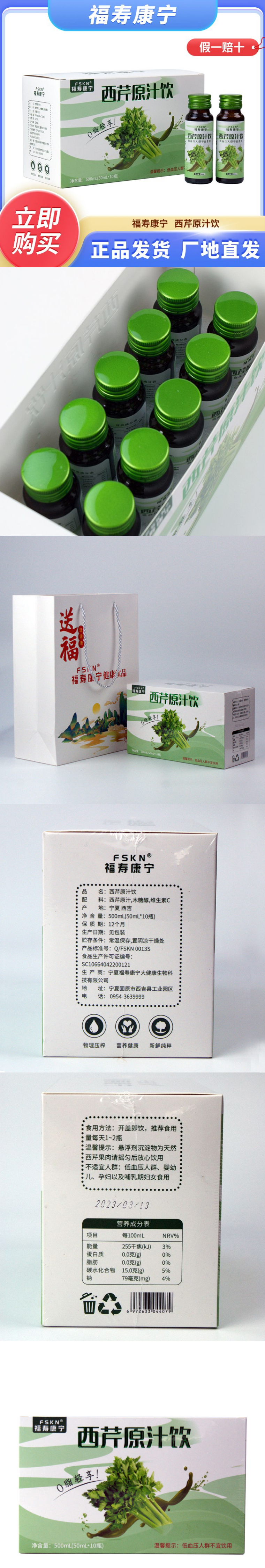 【宁夏海原】西芹原浆500ml/箱(50ml*10瓶)