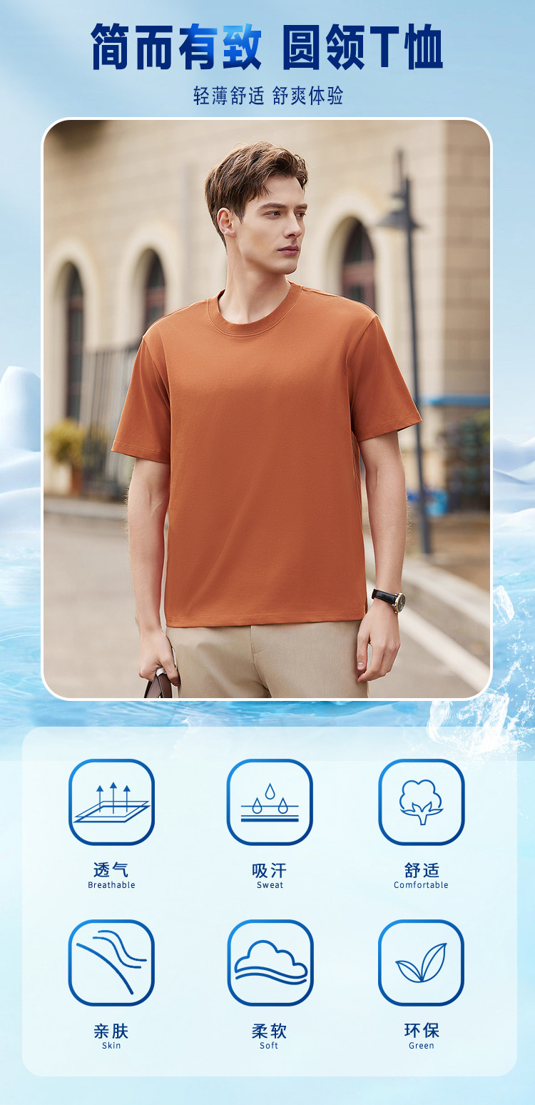 罗蒙男士夏季短袖t恤男大众休闲短袖男舒适圆领时尚男士t恤