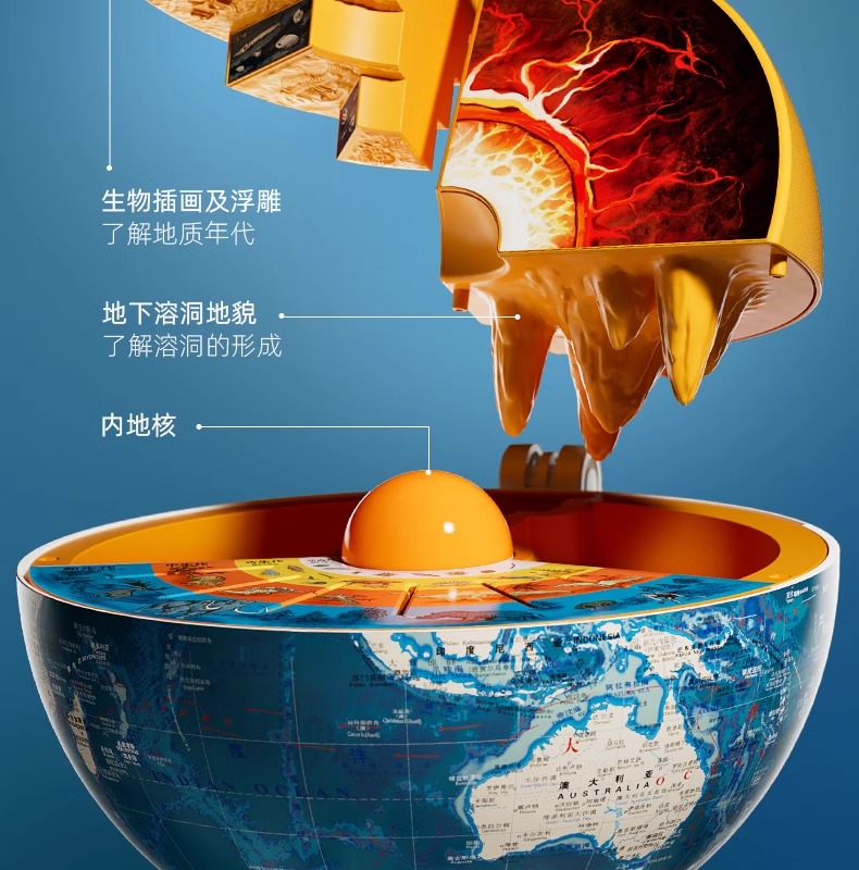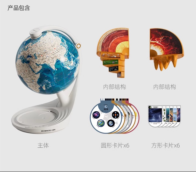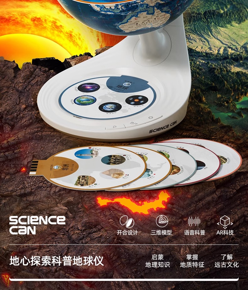 科学罐头地心探索科普地球仪启蒙玩具三维智能益智早教玩具教具