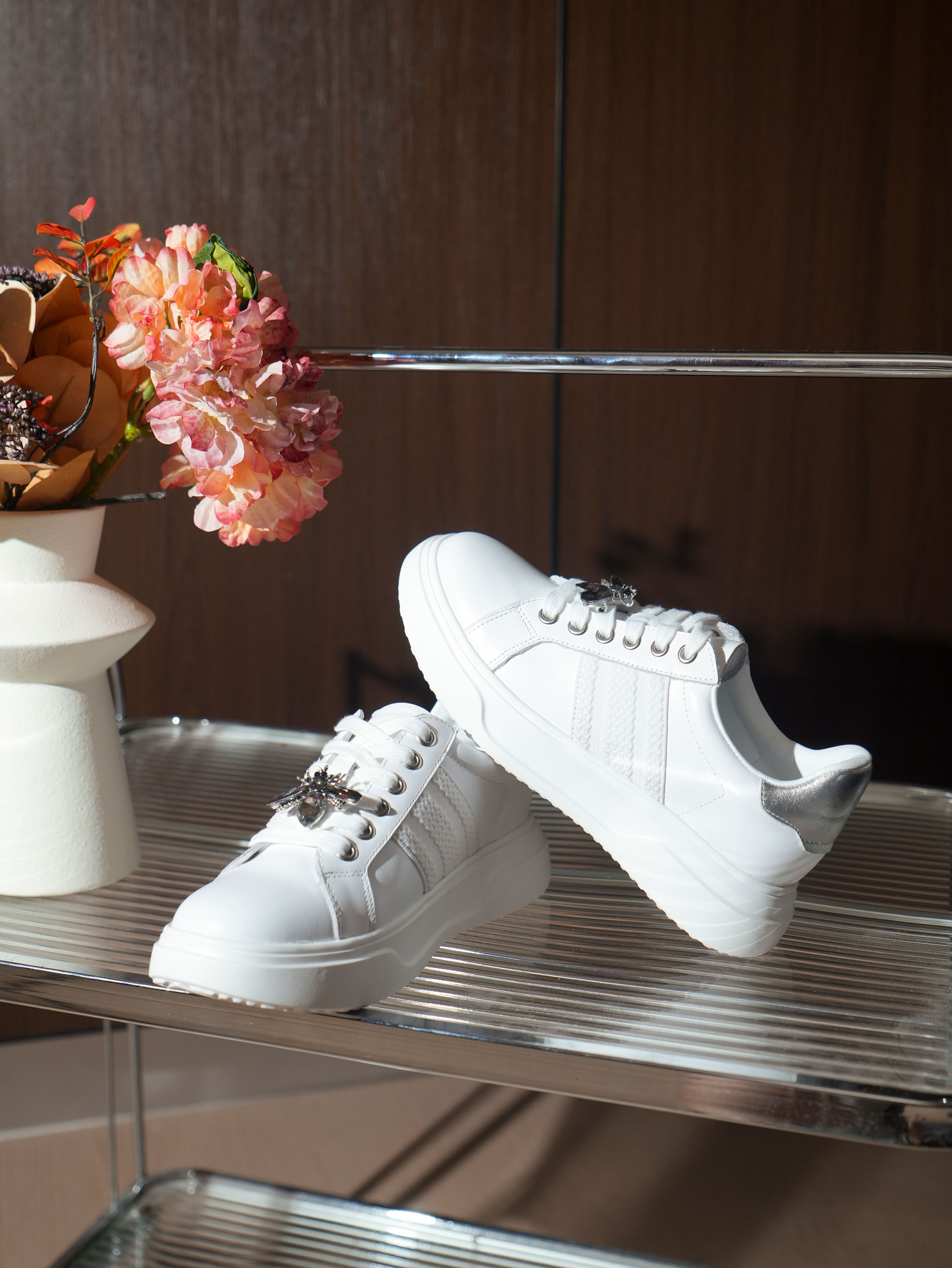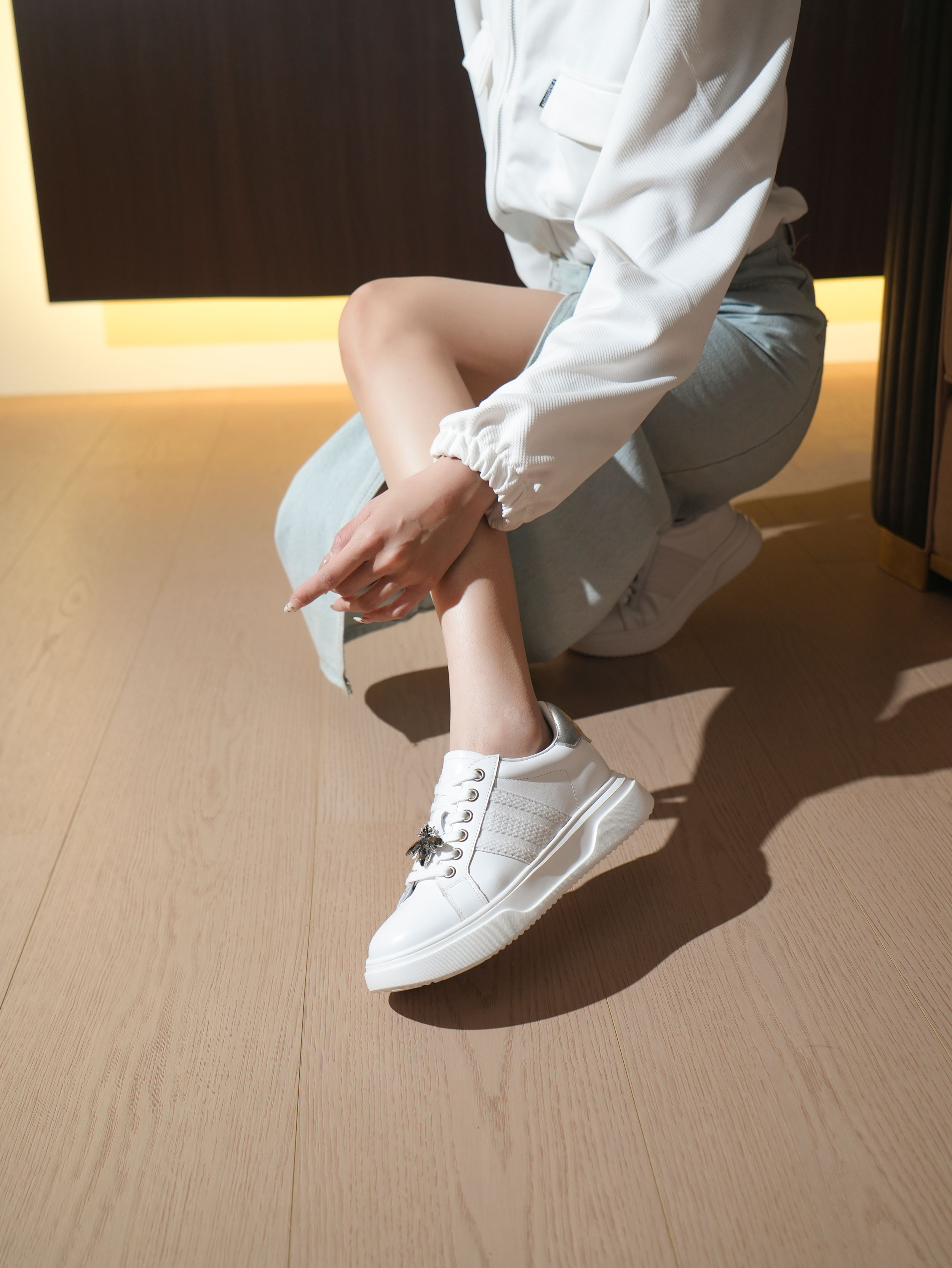 豪麟名鞋迪嘉女鞋时尚休闲鞋牛皮革DJHJA52WX015银色