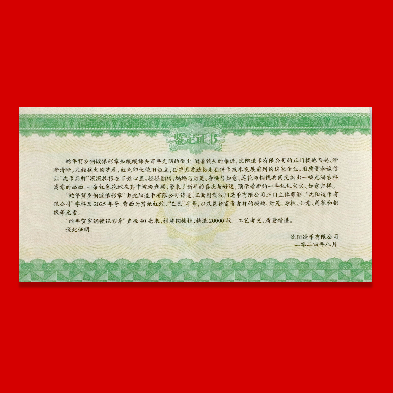 沈阳造币有限公司权威发行了乙巳蛇年系列贺岁纪念章!