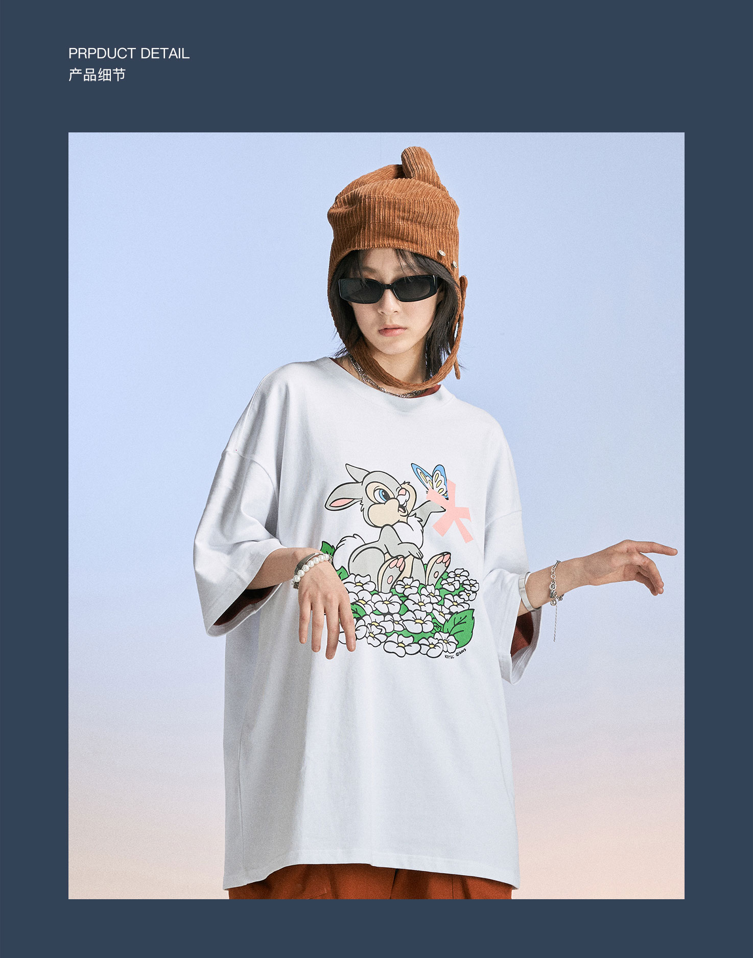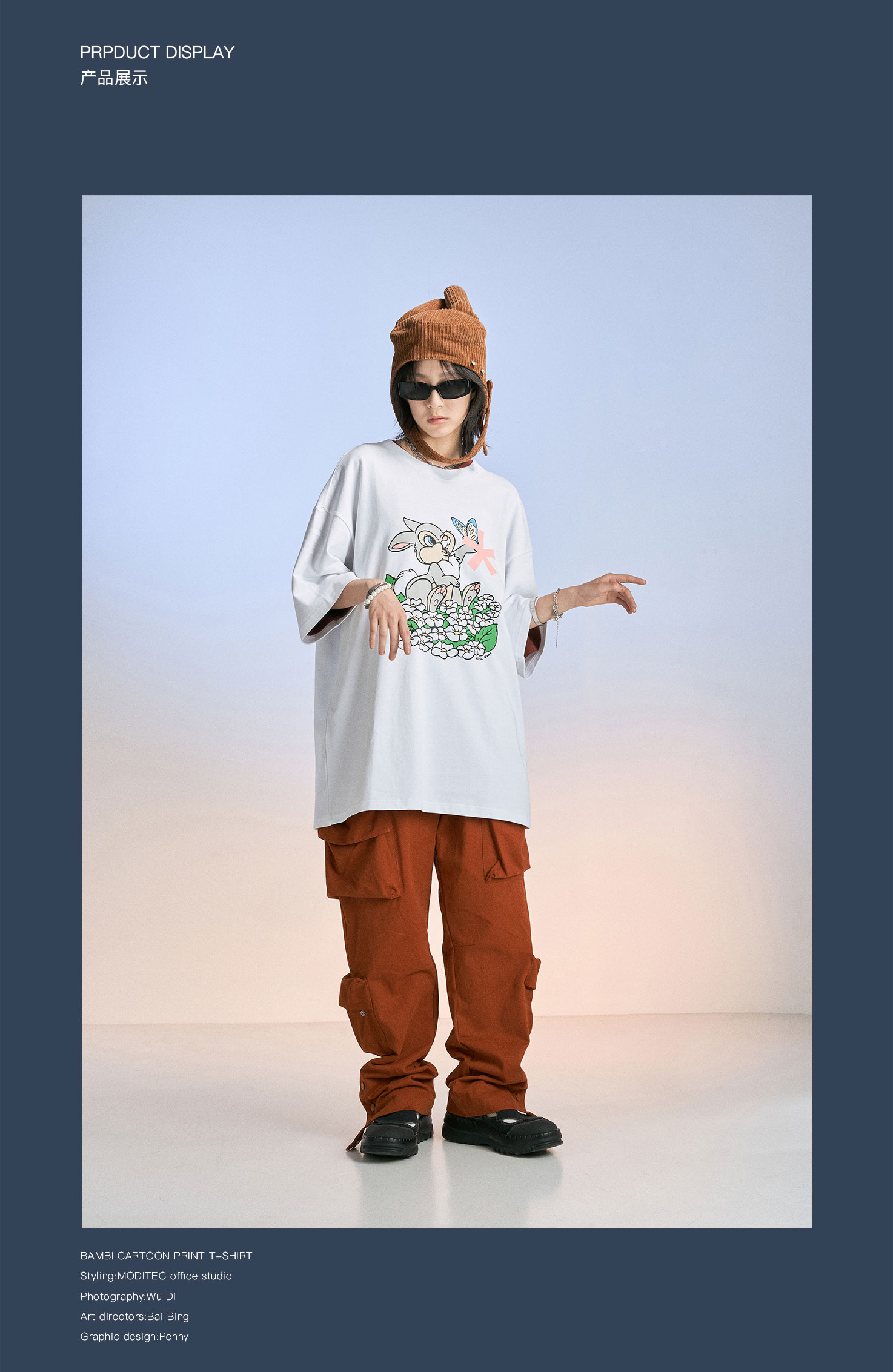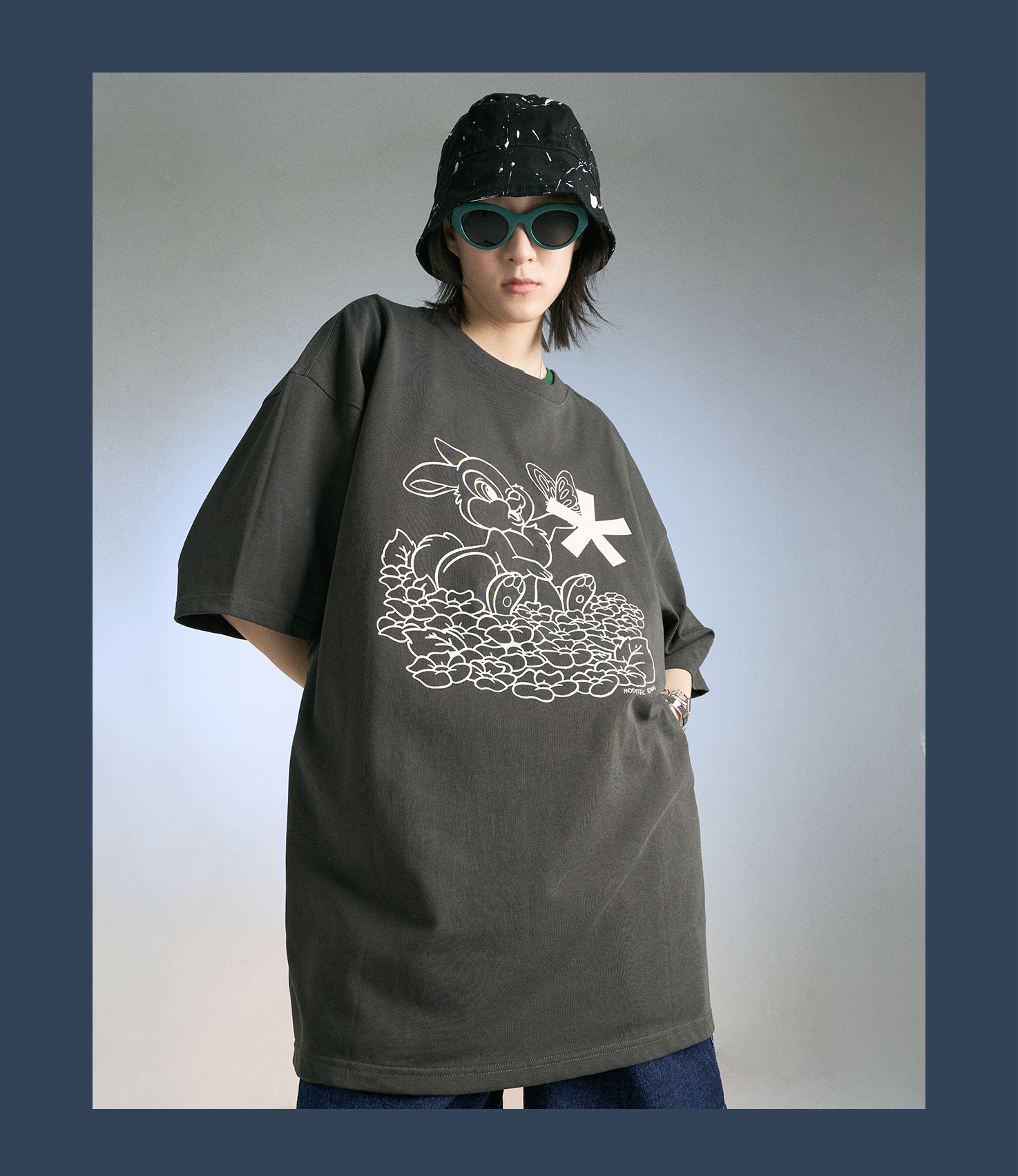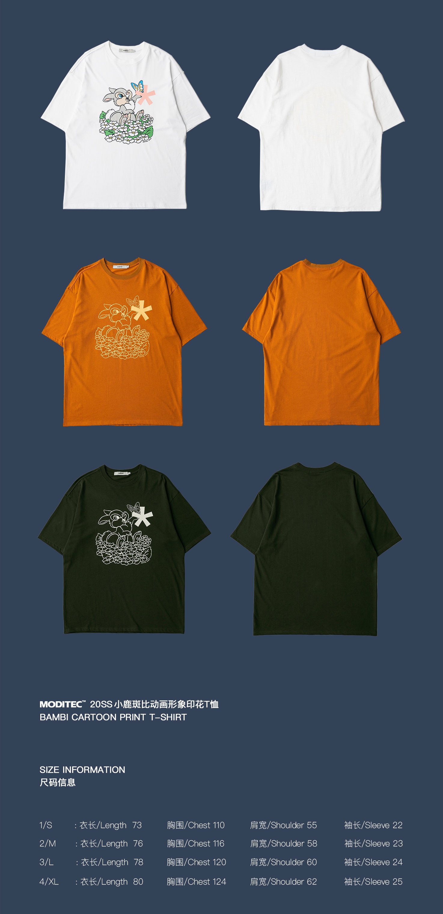 MODITEC 20SS三色卡通兔子形象符号宽松短袖 全棉情侣宽松潮流T恤