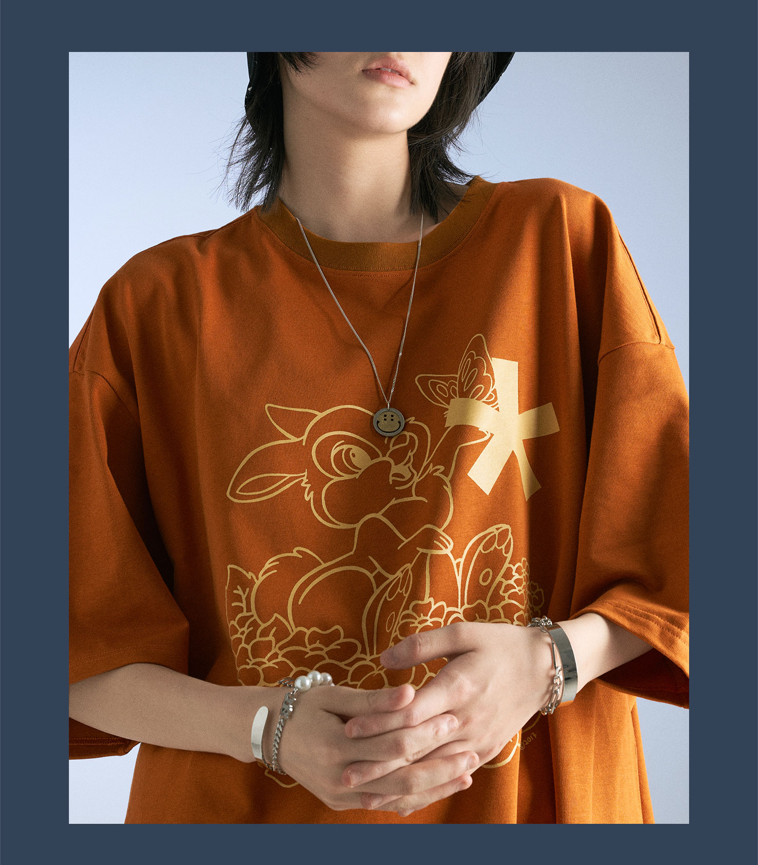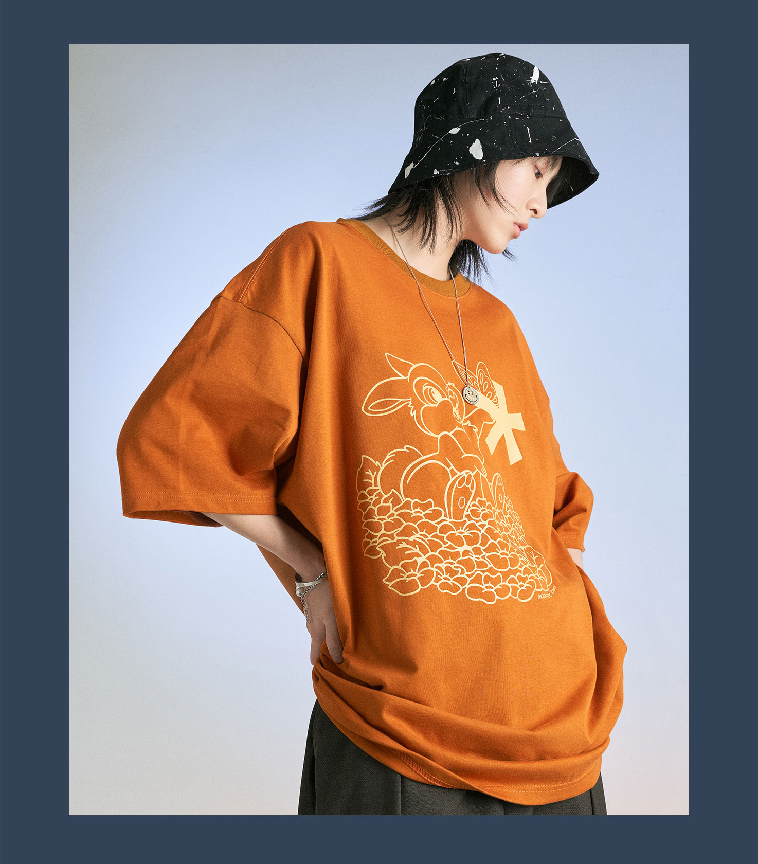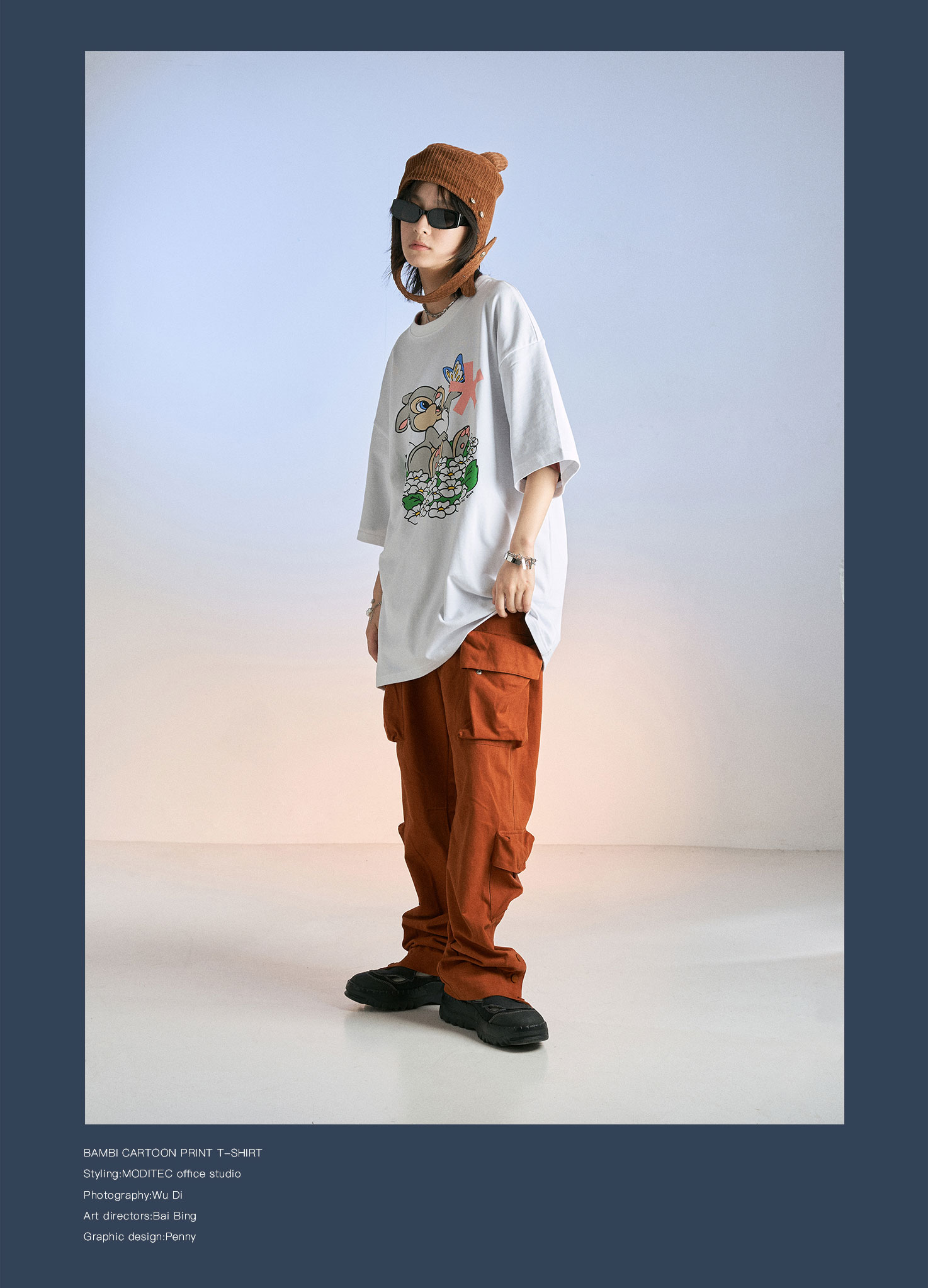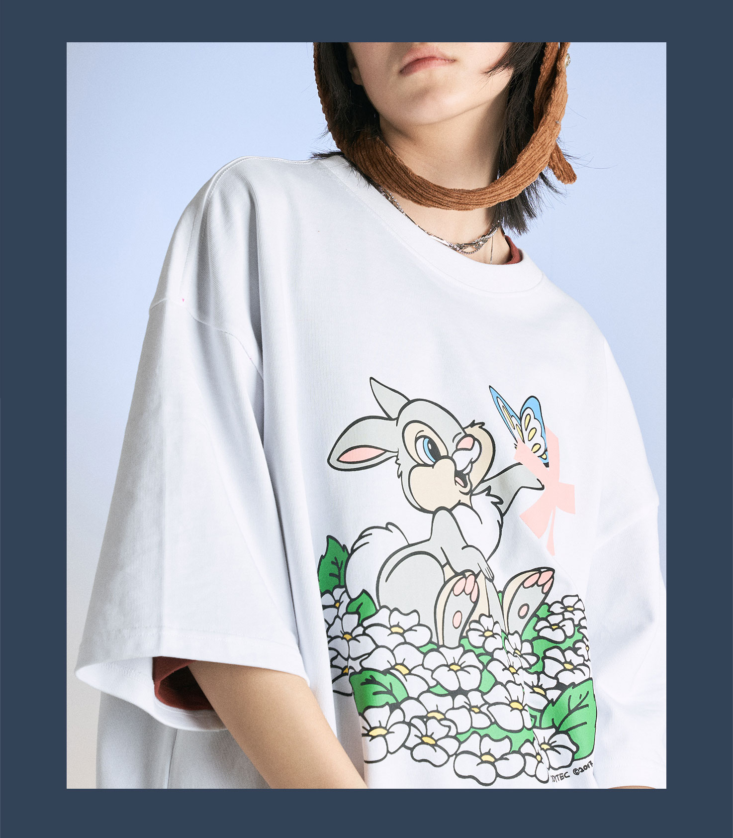MODITEC 20SS三色卡通兔子形象符号宽松短袖 全棉情侣宽松潮流T恤
